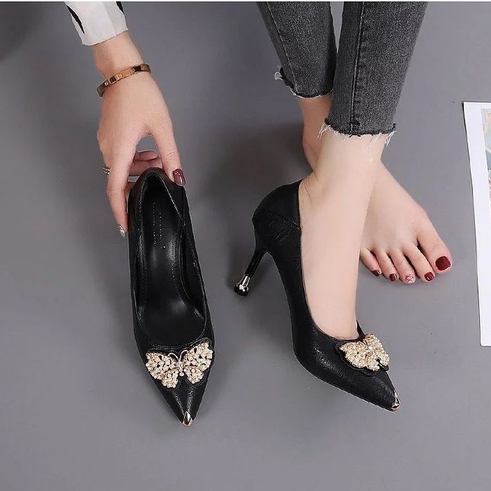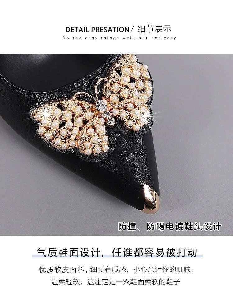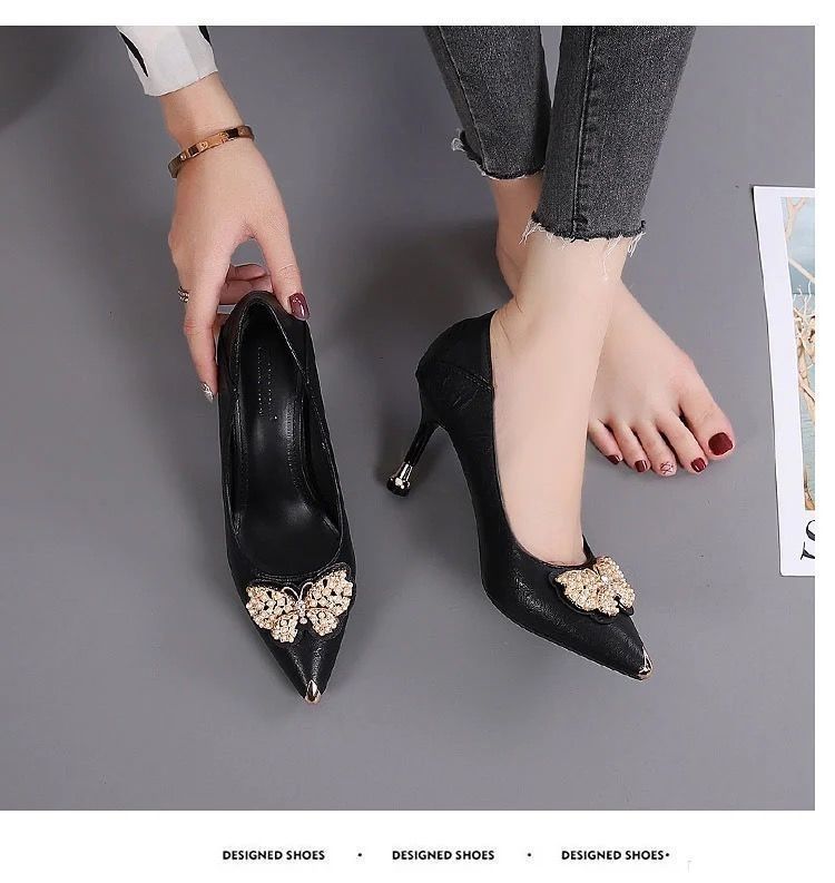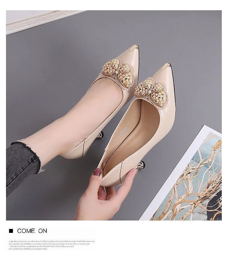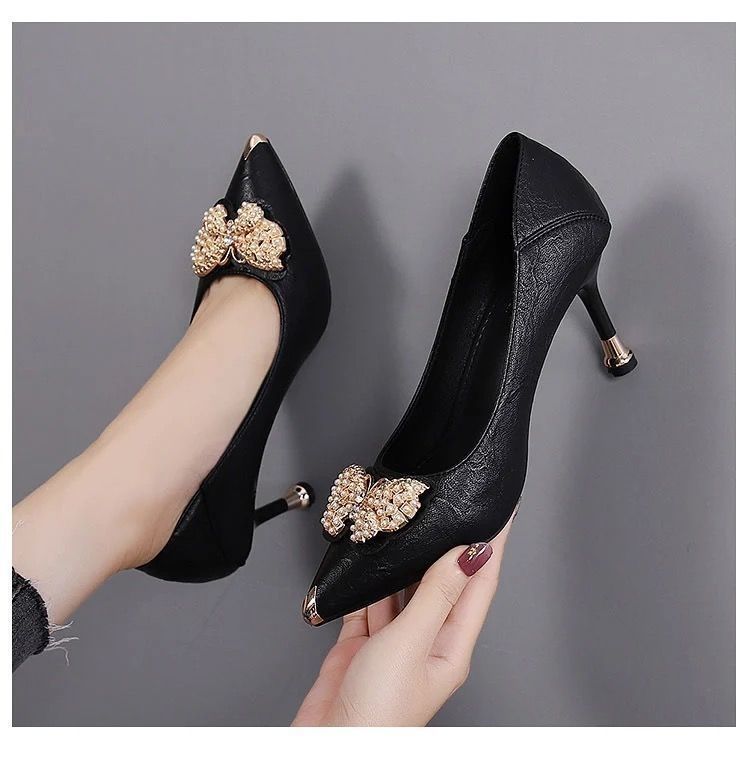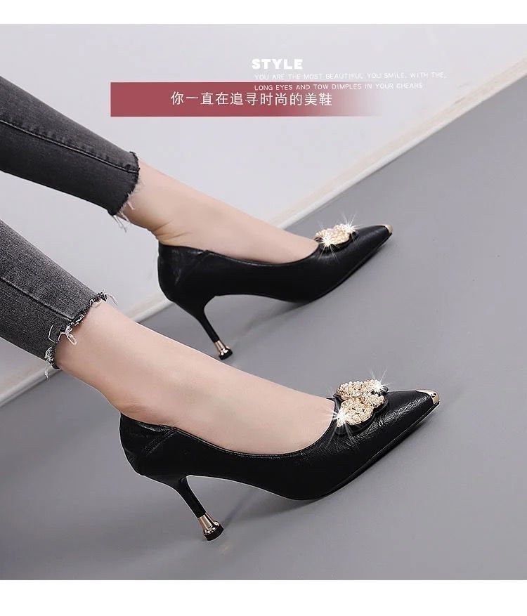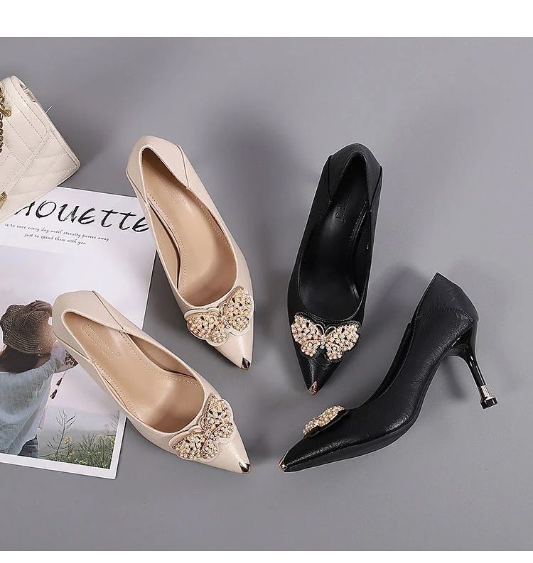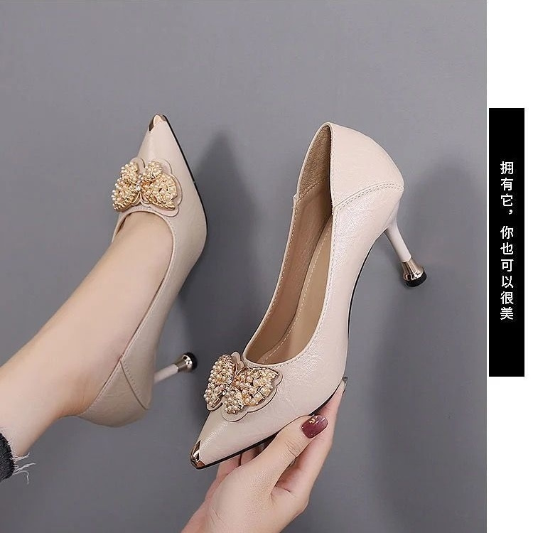 软皮高跟鞋女细跟2022新款中跟单鞋女皮鞋久站不累工作鞋配裙女鞋