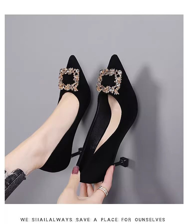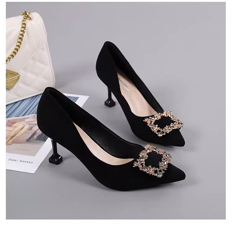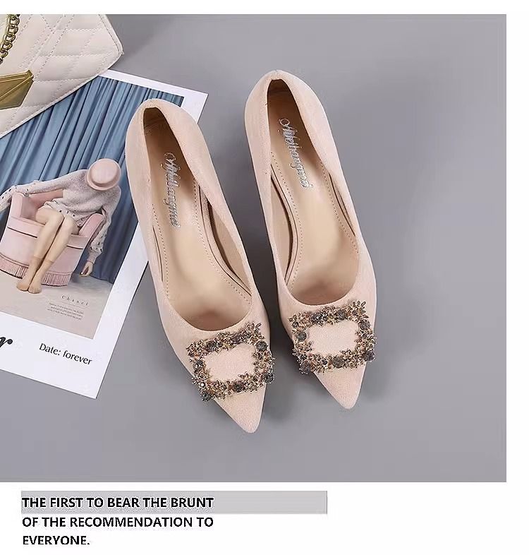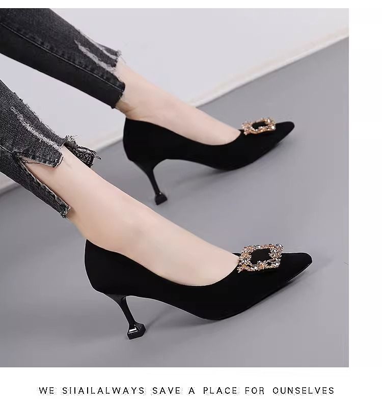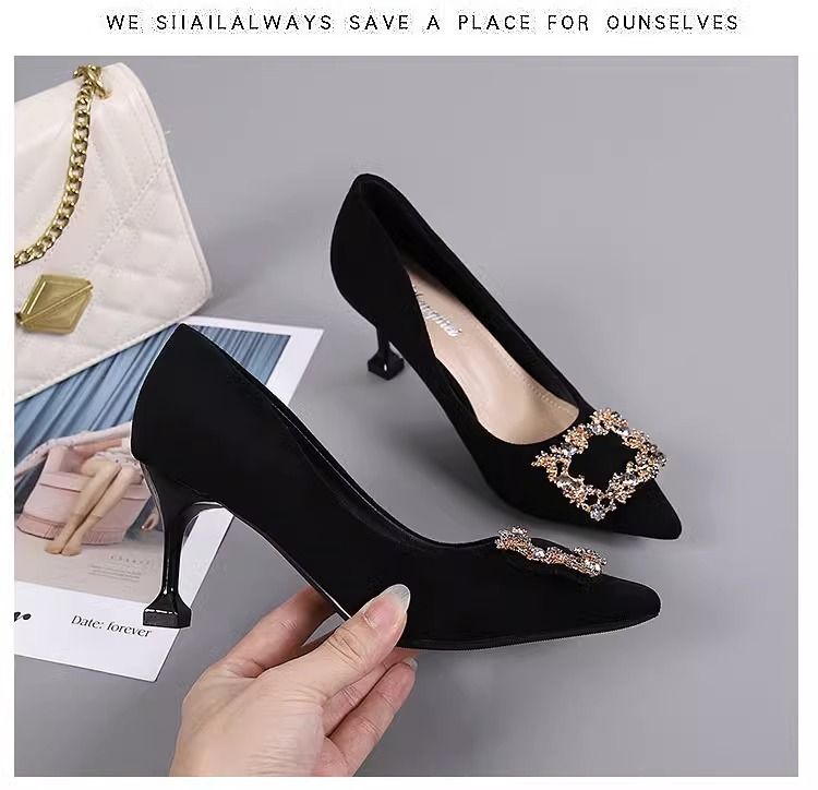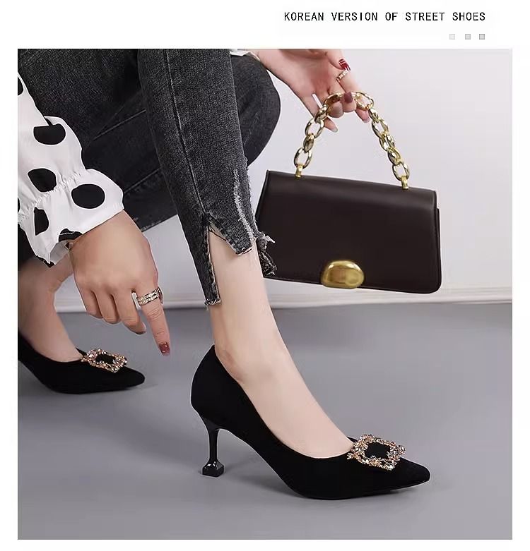 法式高跟鞋女细跟性感尖头2024年春季新款百搭少女高级气质低跟女