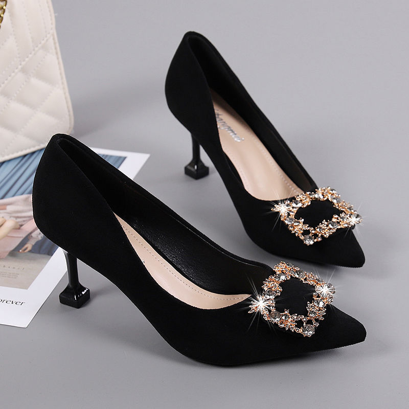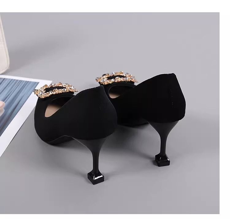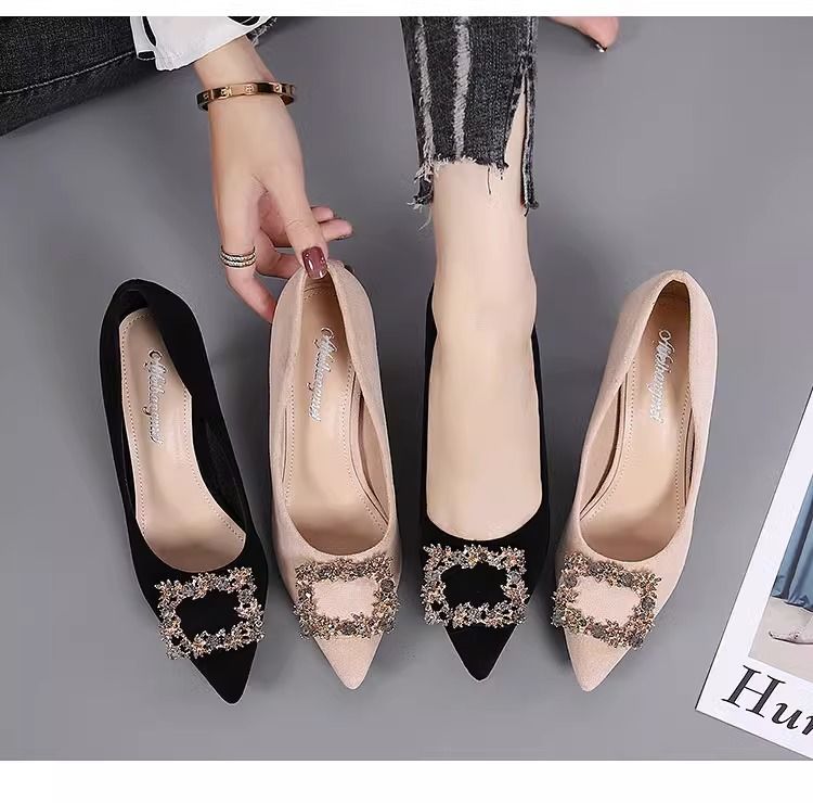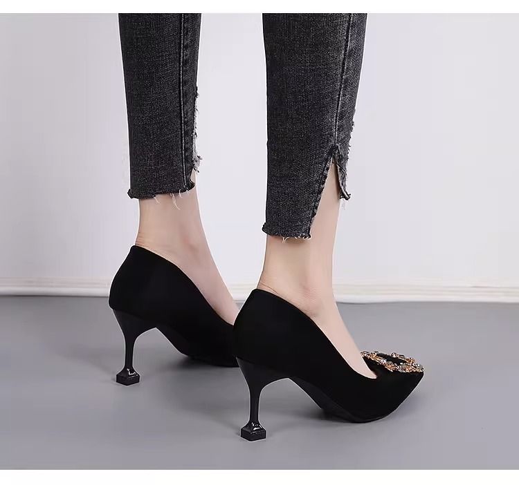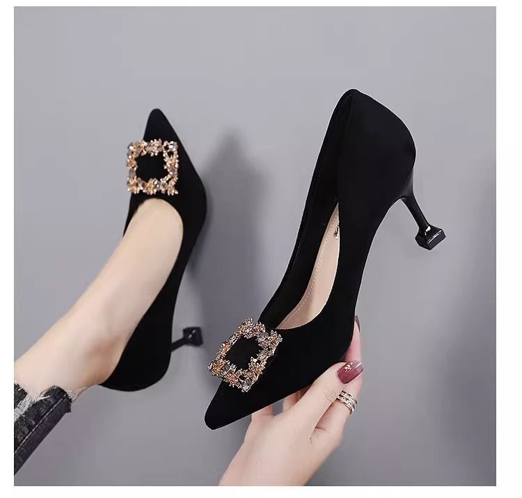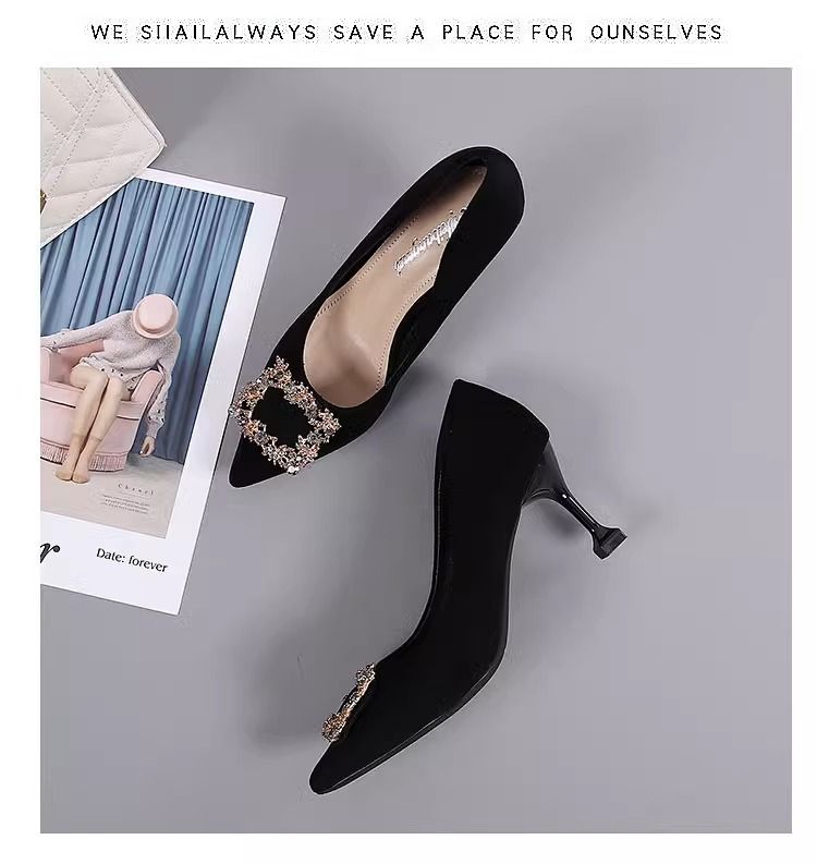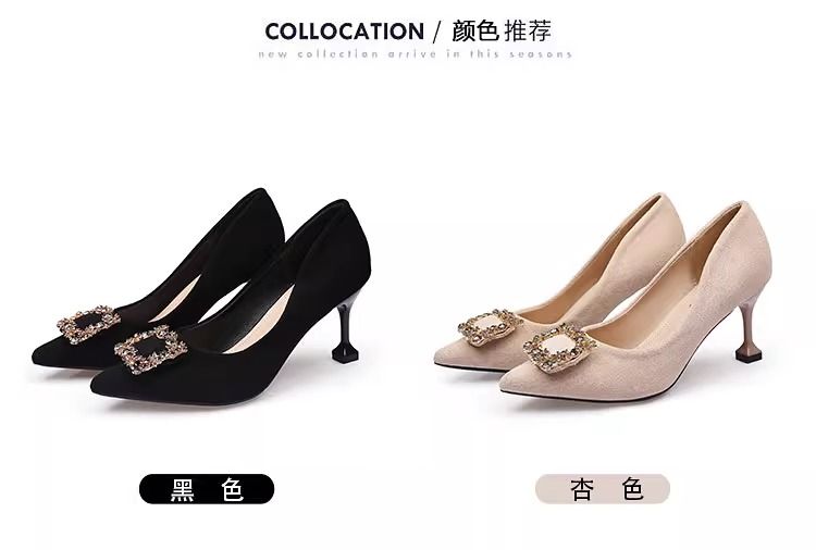 法式高跟鞋女细跟性感尖头2024年春季新款百搭少女高级气质低跟女