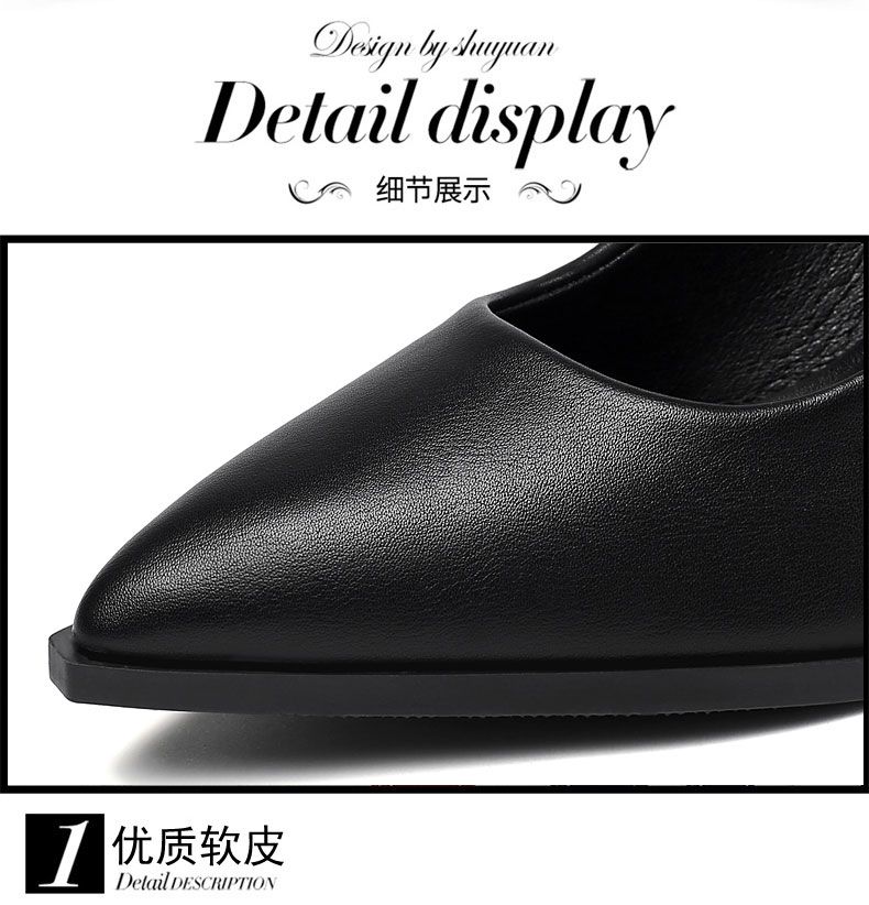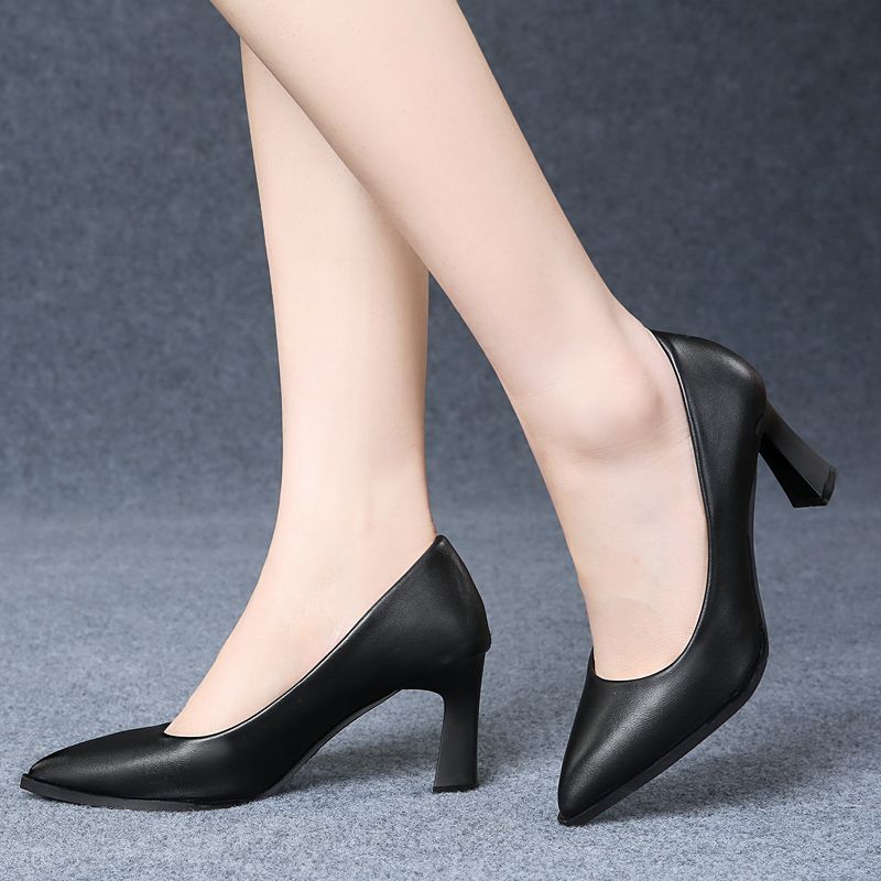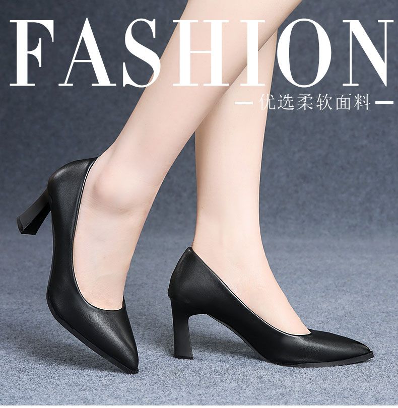 新款软皮防滑单鞋工作鞋女鞋黑色礼仪职业面试高跟鞋中跟上班皮鞋