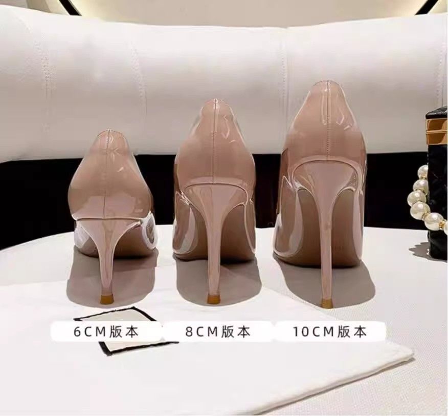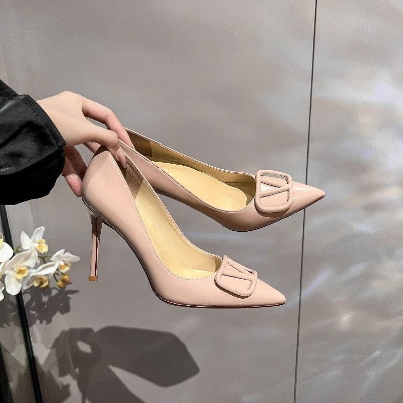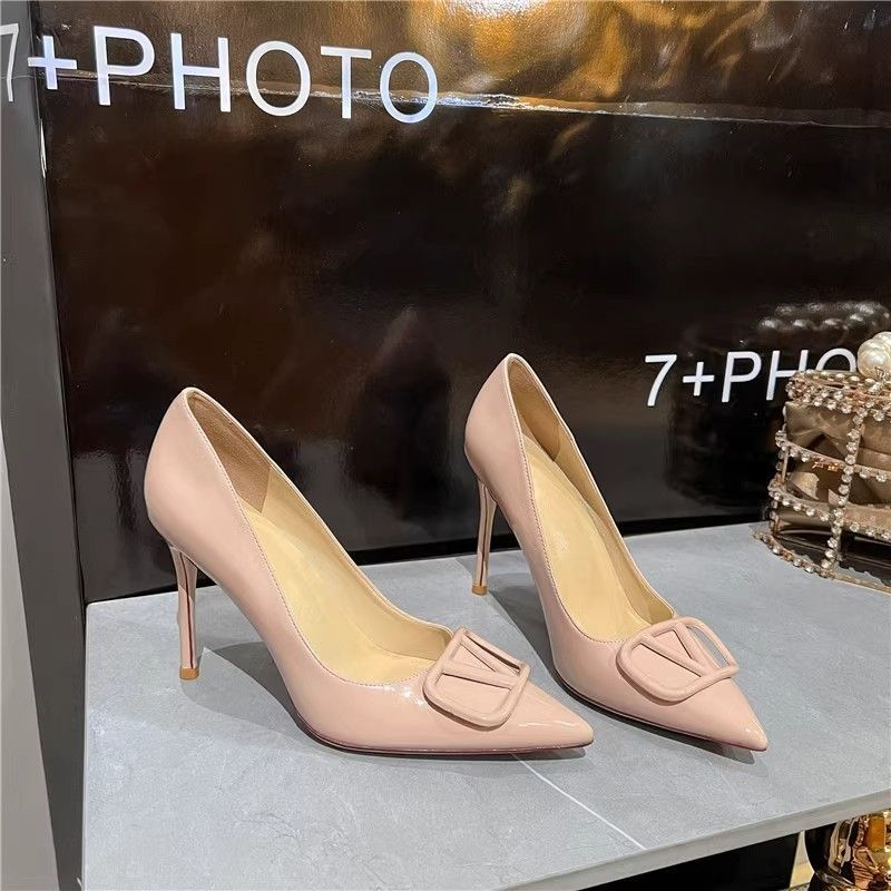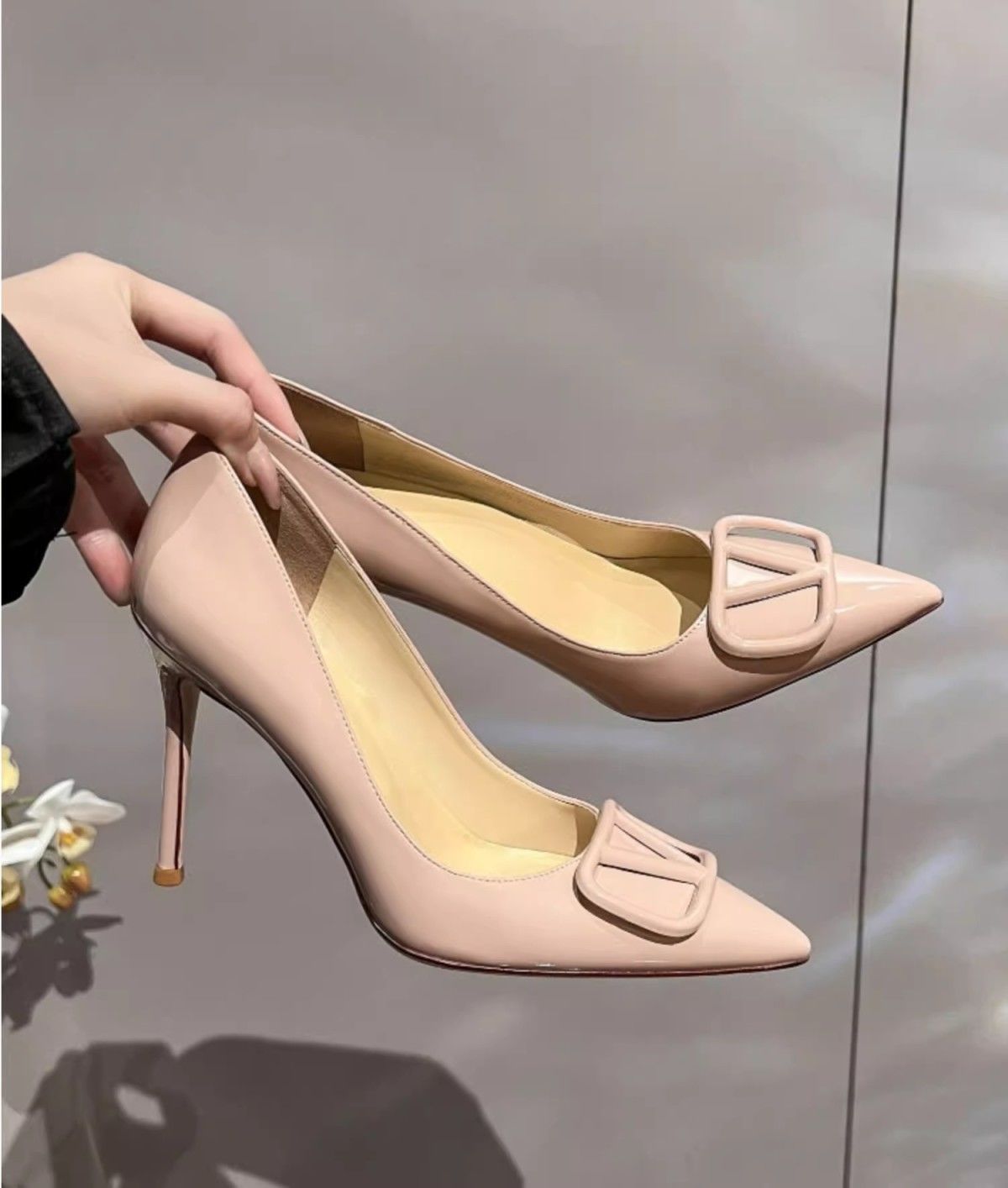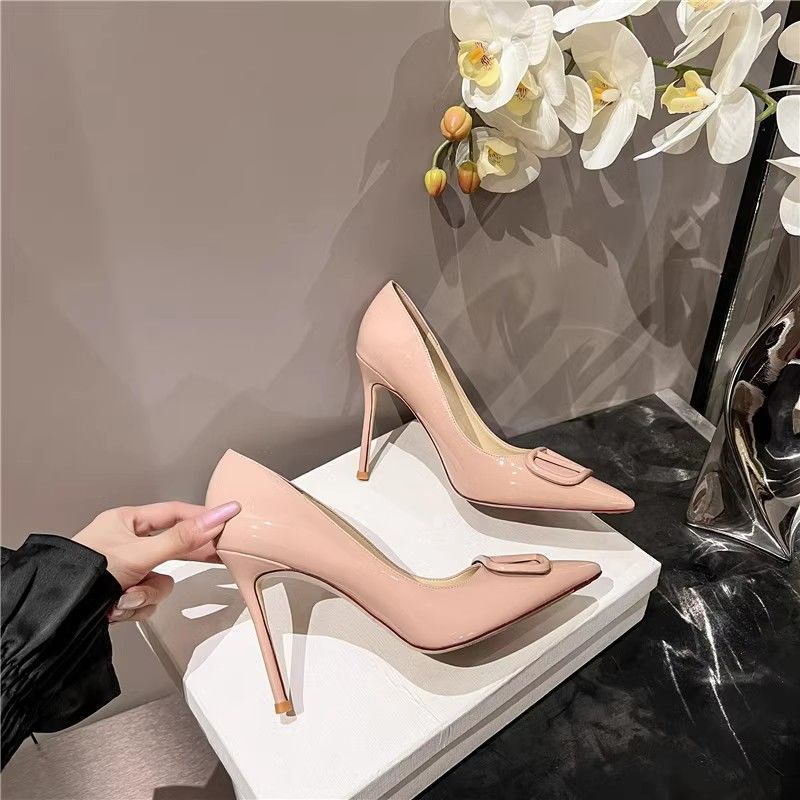 裸色高跟鞋女2024新款秋季V家扣尖头细跟绝美法式漆皮气质单鞋春