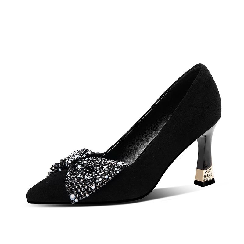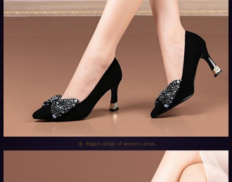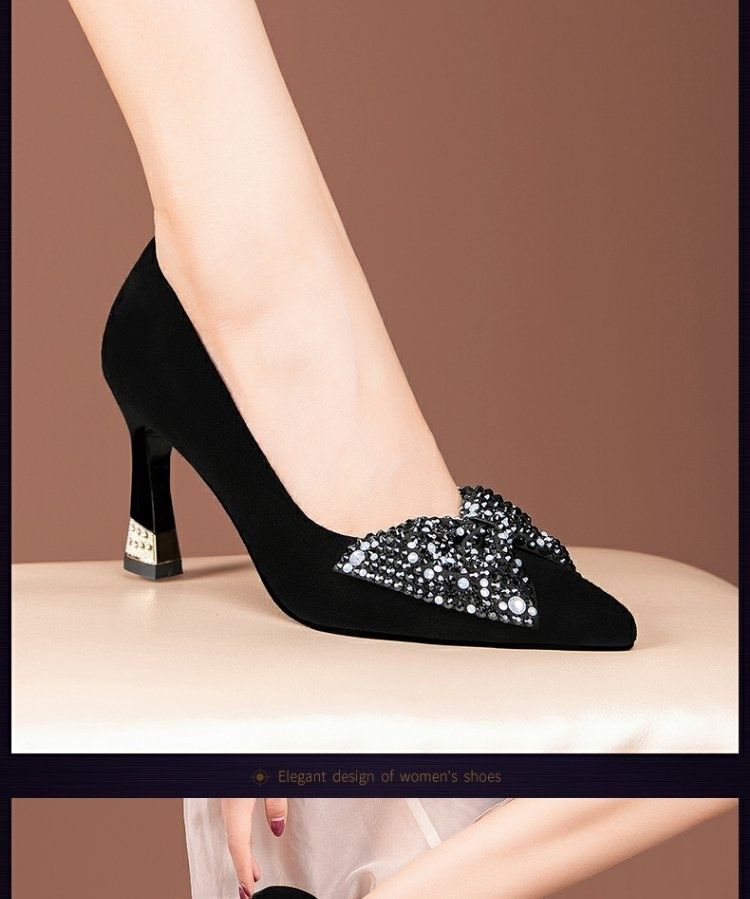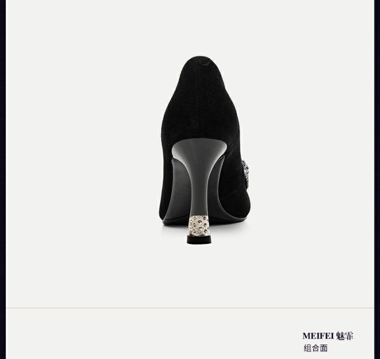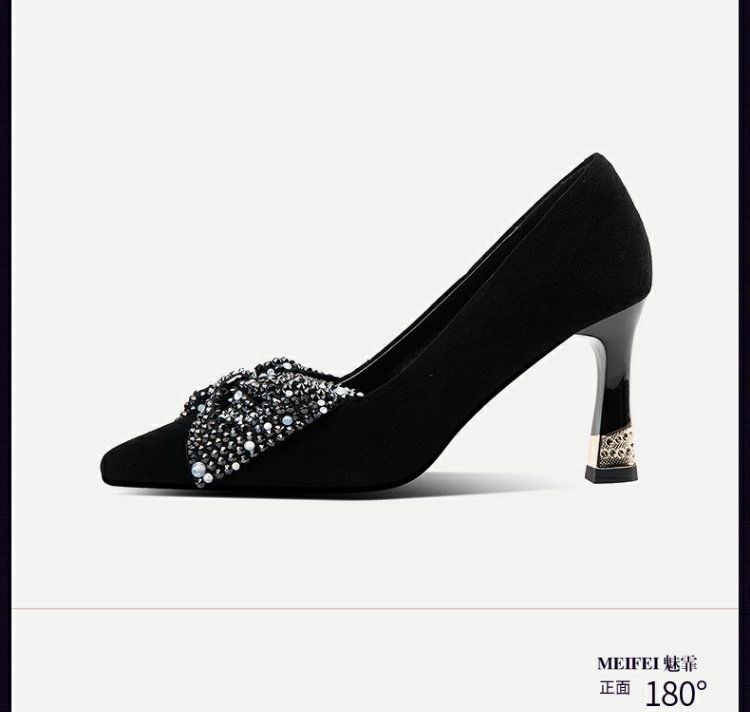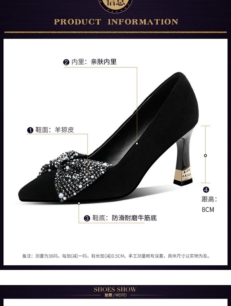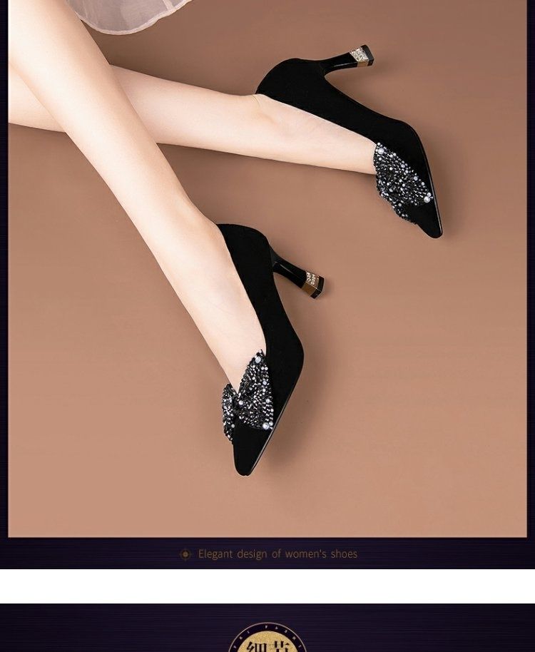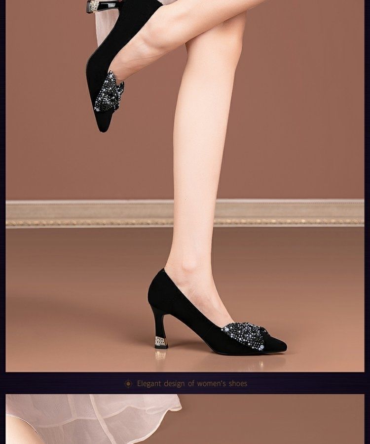 时尚高跟鞋绒面2023新款尖头百搭工作单细跟中跟透气软皮职业女鞋