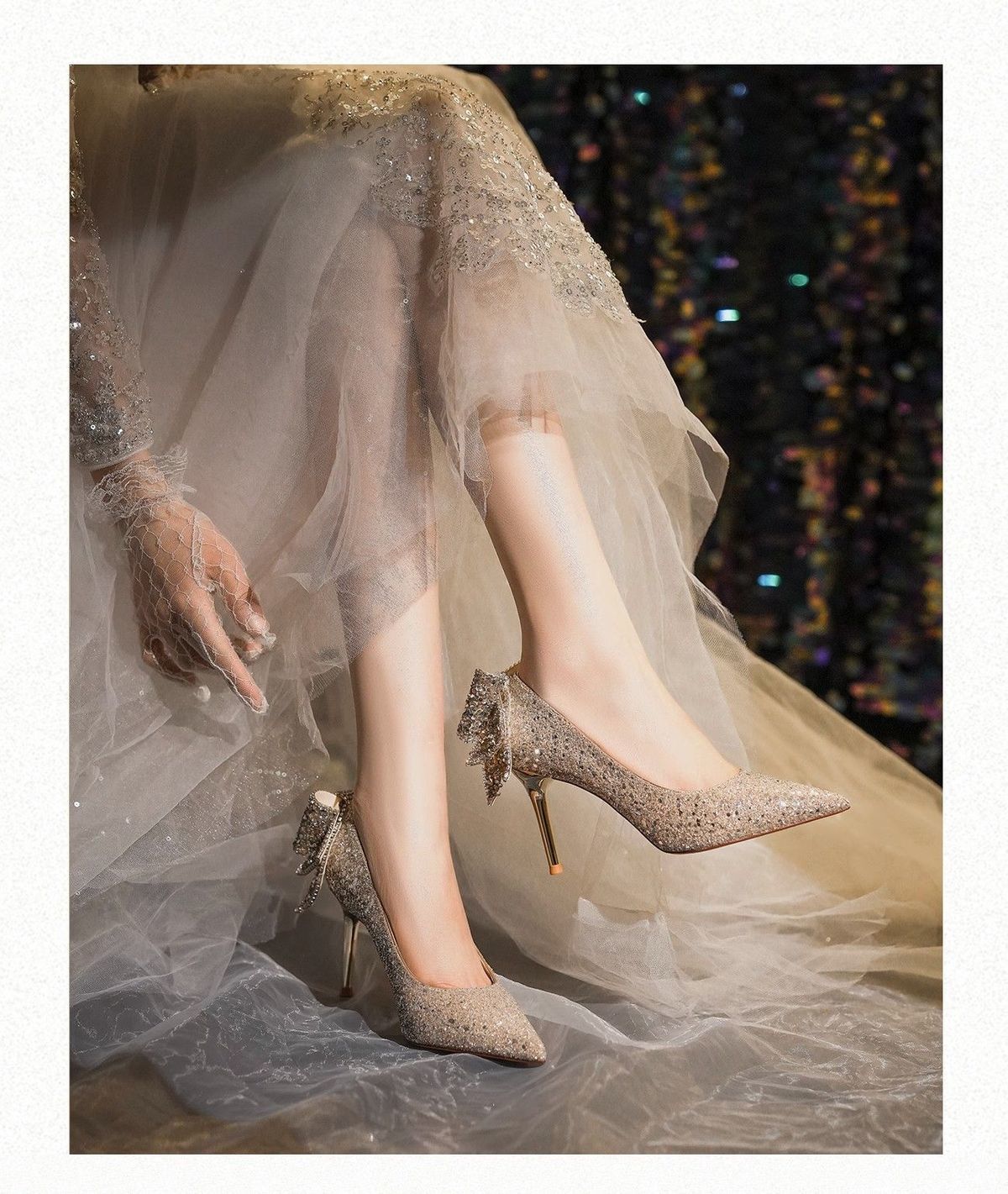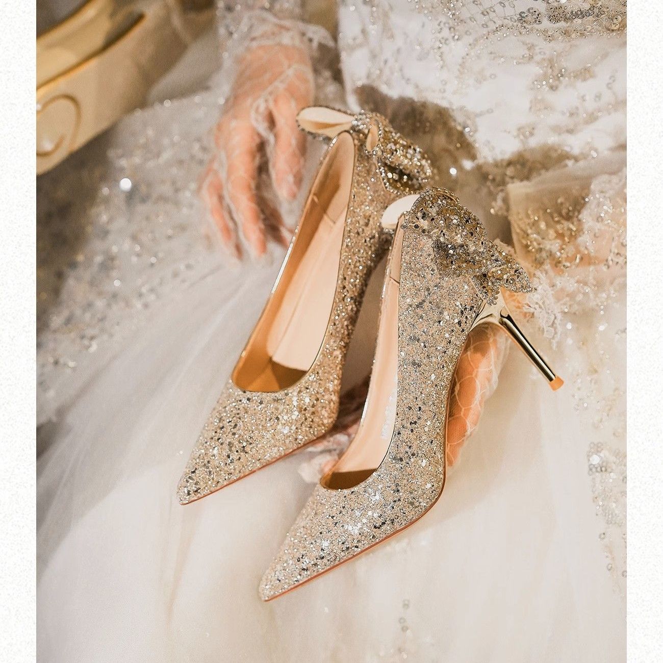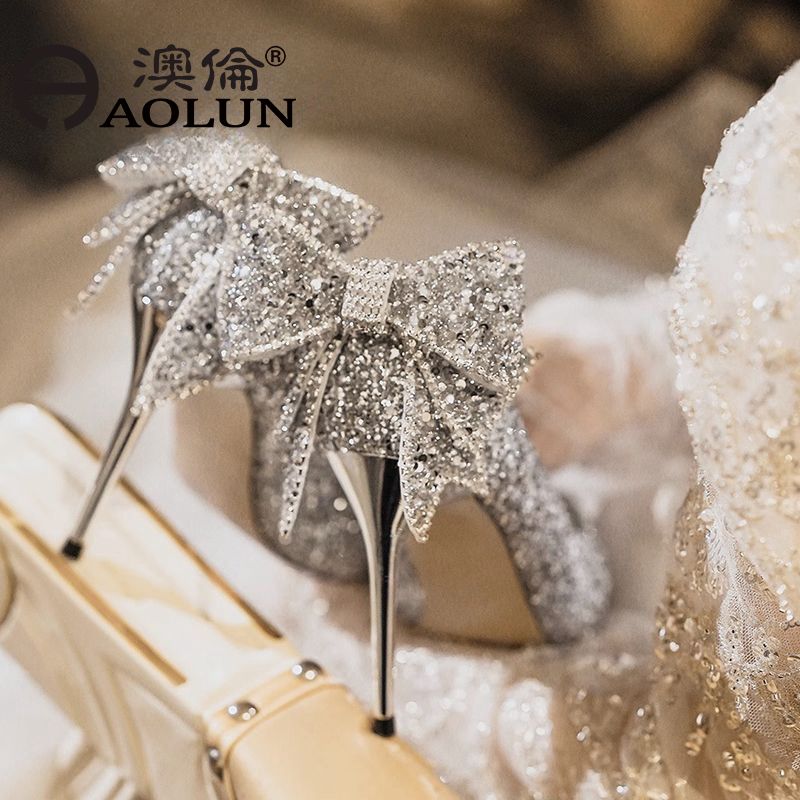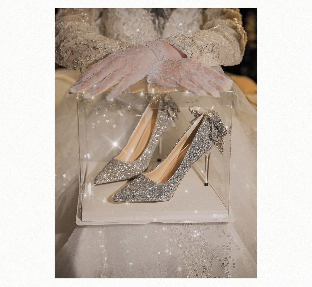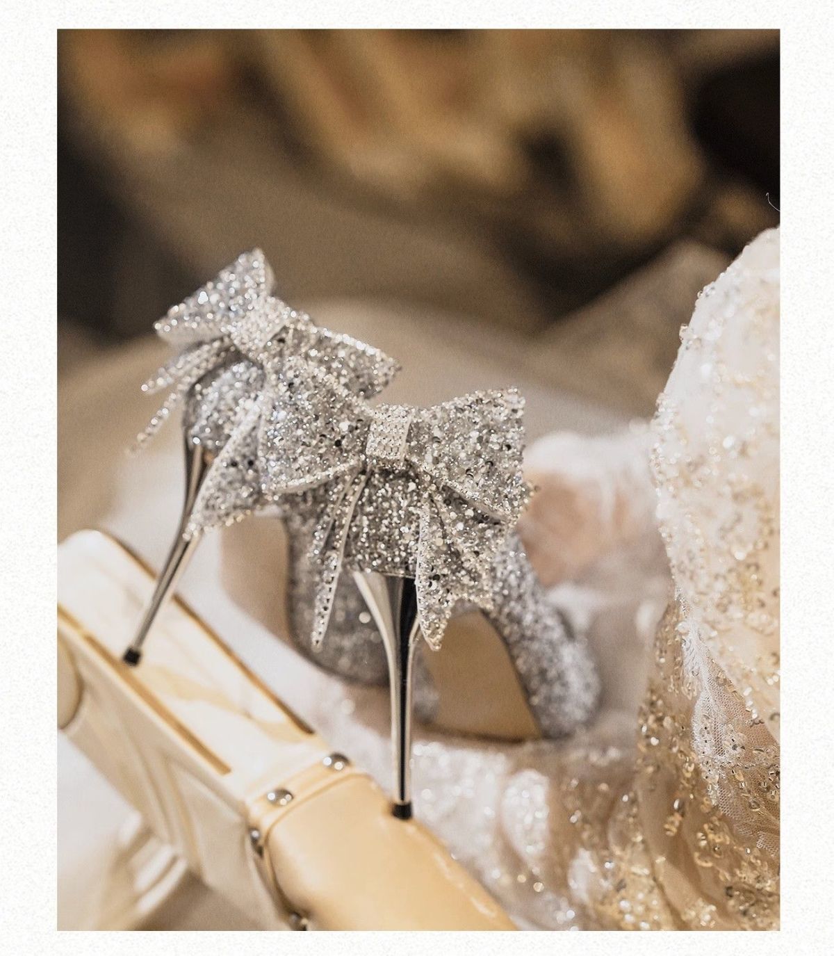 澳沦高跟鞋女爆闪新娘婚鞋两穿婚纱超仙百搭18岁礼物蝴蝶结