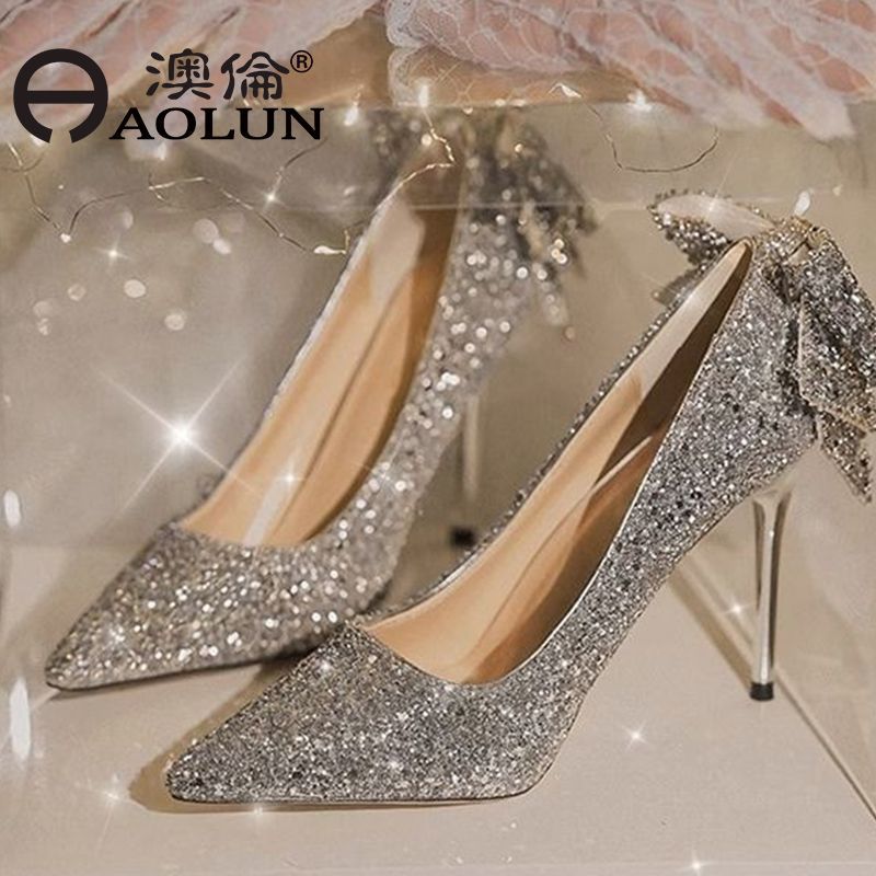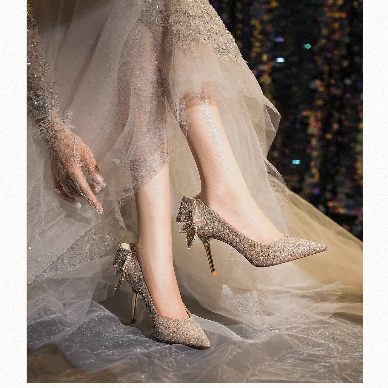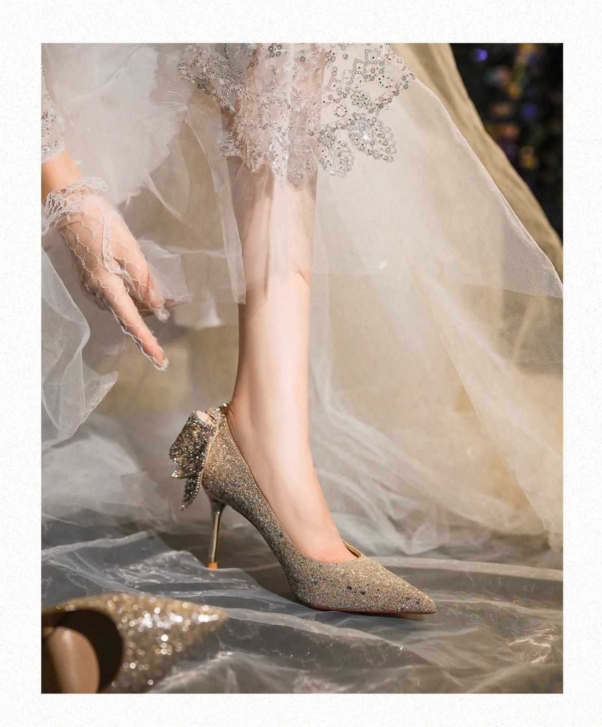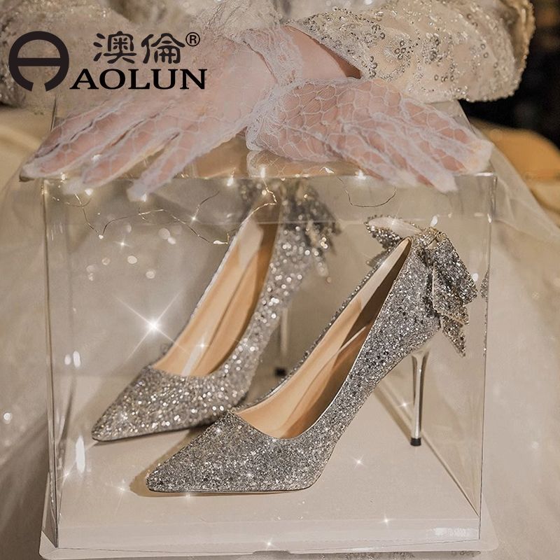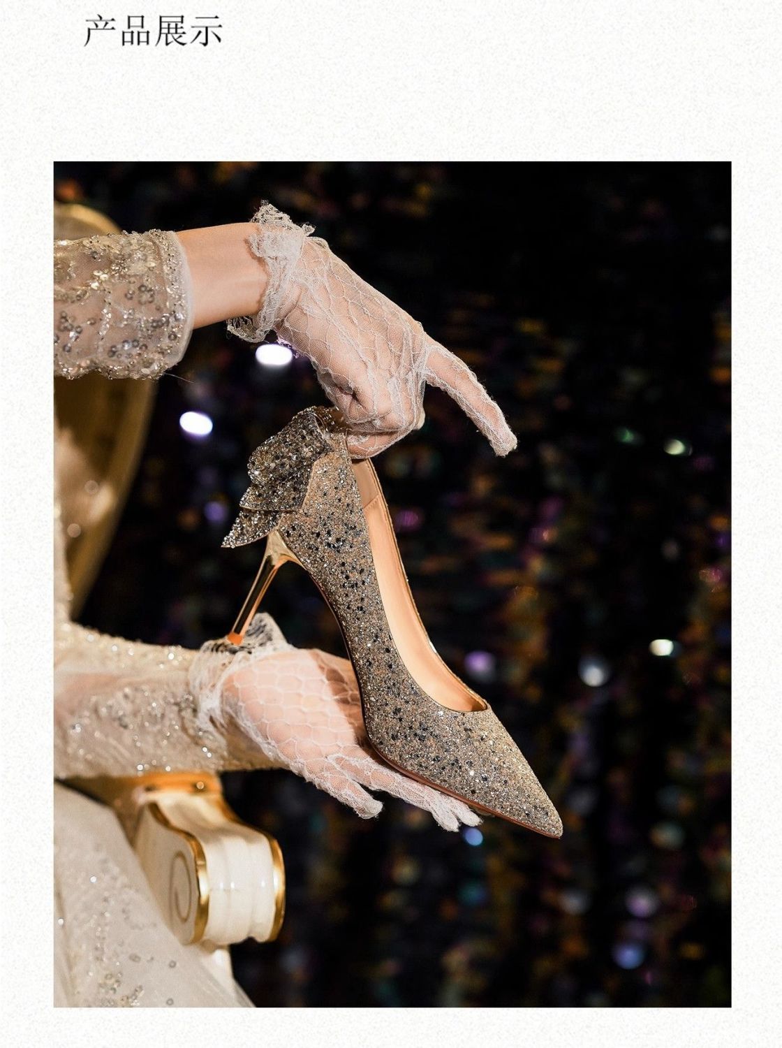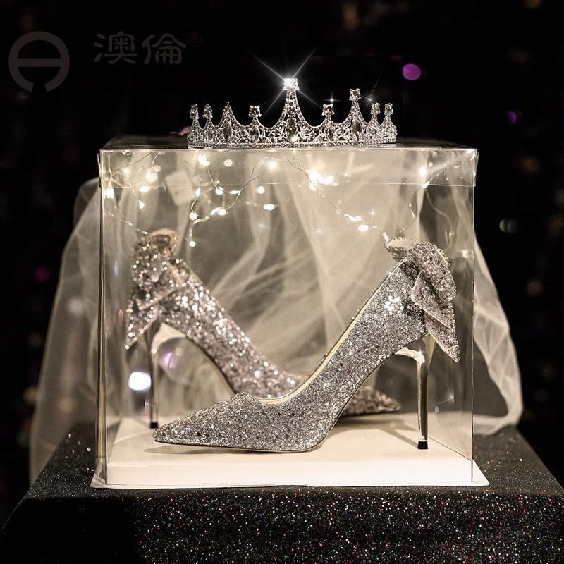澳沦高跟鞋女爆闪新娘婚鞋两穿婚纱超仙百搭18岁礼物蝴蝶结