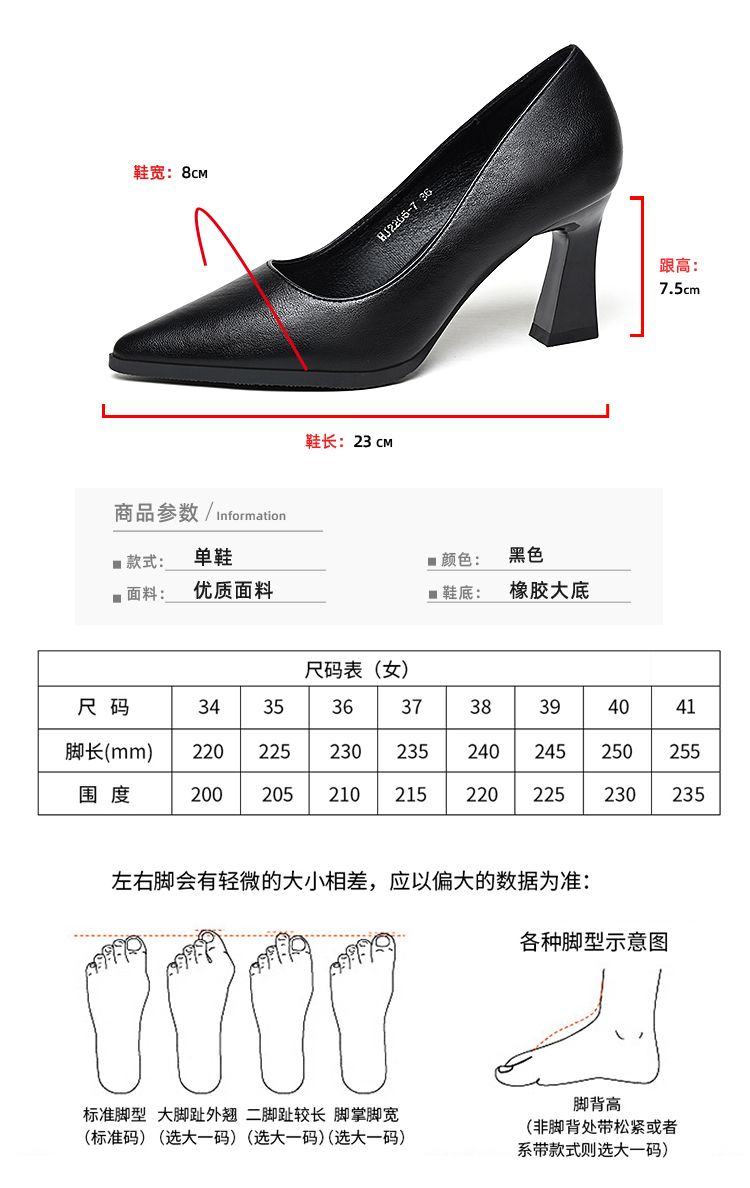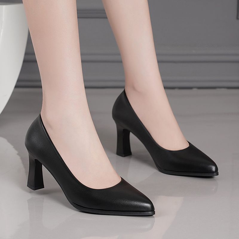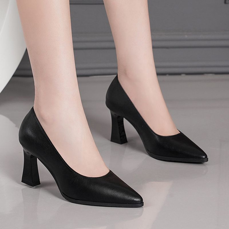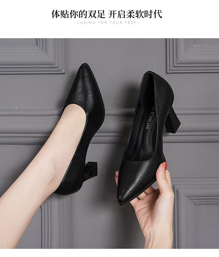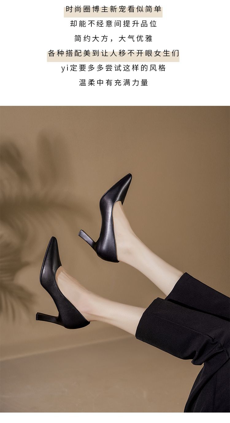 黑色高跟鞋女尖头软底面试空乘学生礼仪单鞋职业工作鞋久站不累