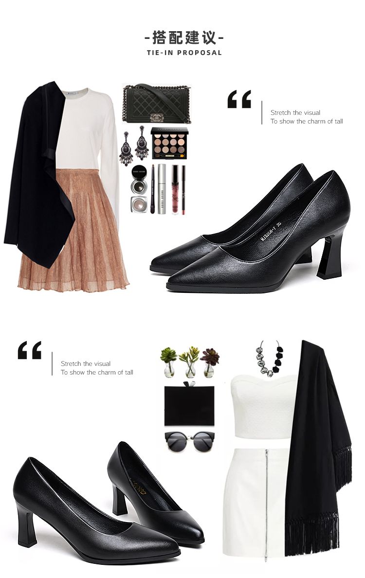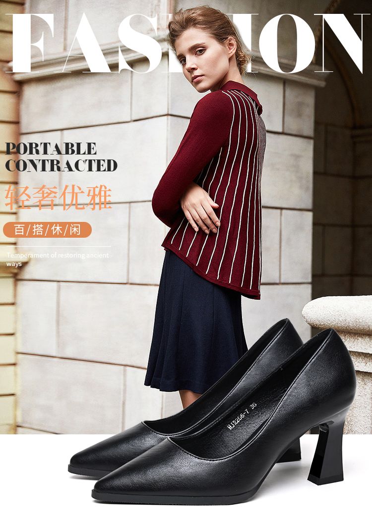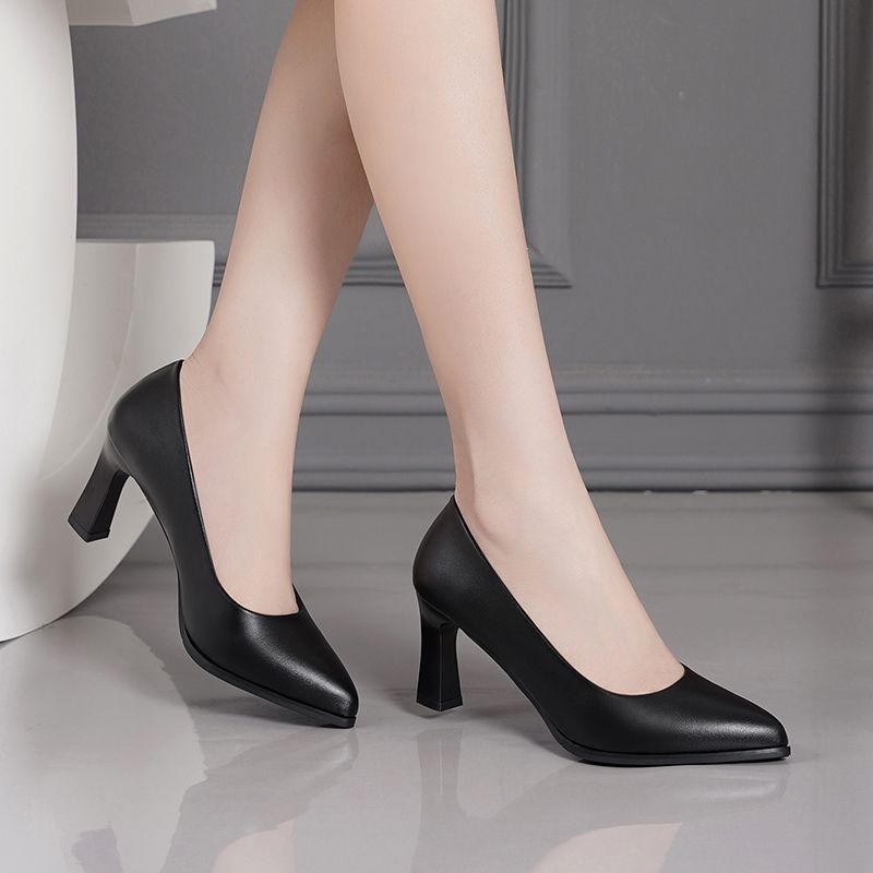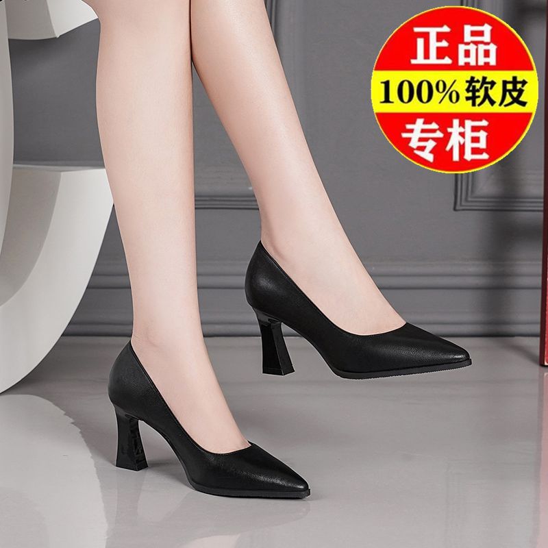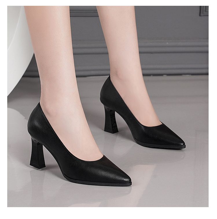 黑色高跟鞋女尖头软底面试空乘学生礼仪单鞋职业工作鞋久站不累