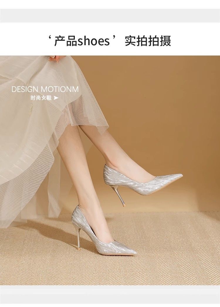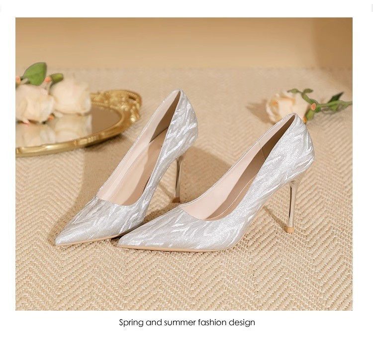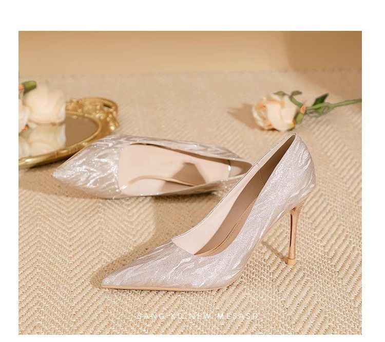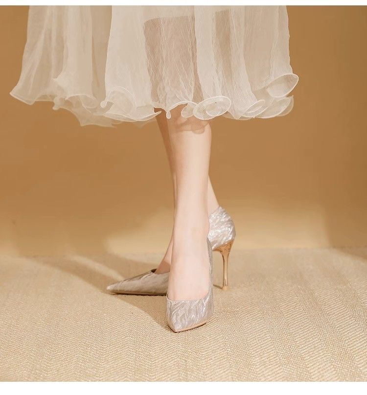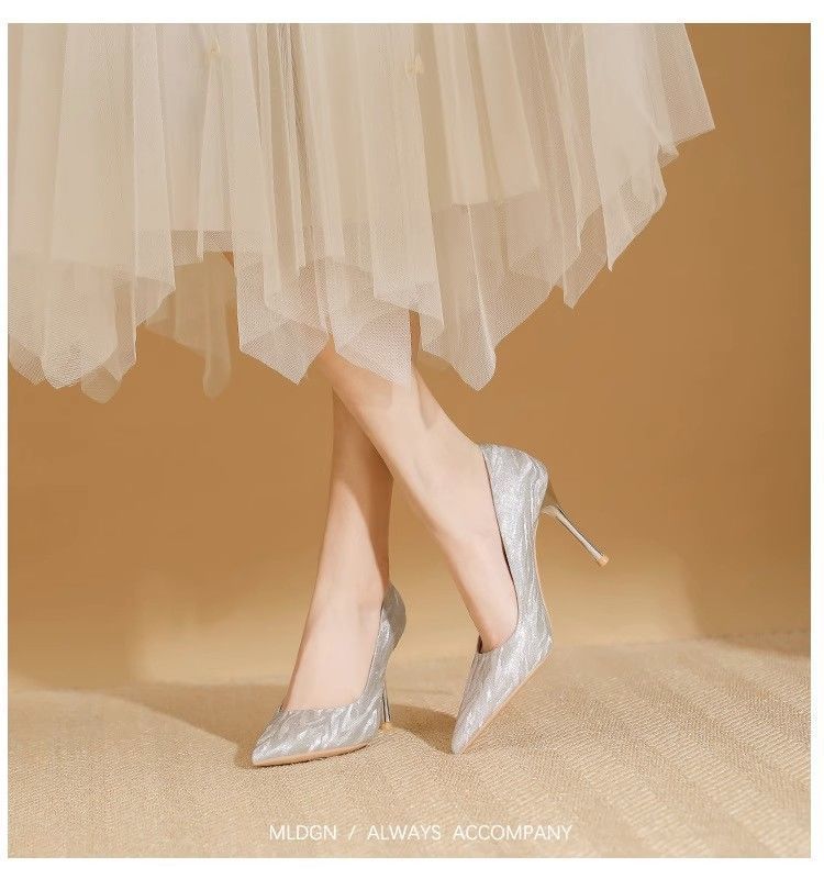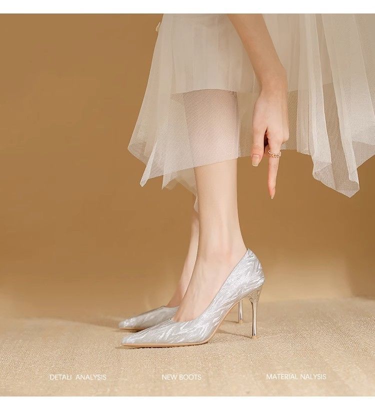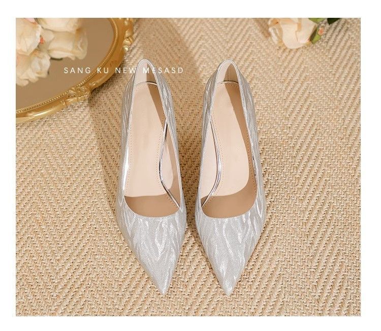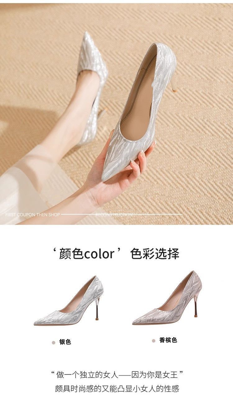 【首单直降】银色高跟鞋细跟新款气质浅色百搭仙女风新娘婚鞋伴娘