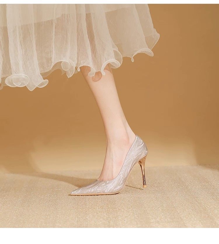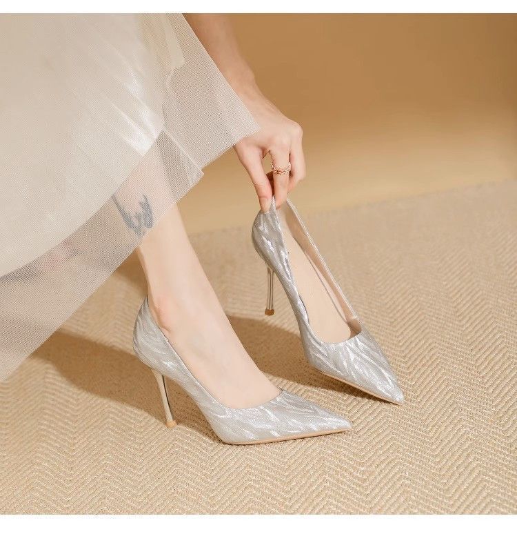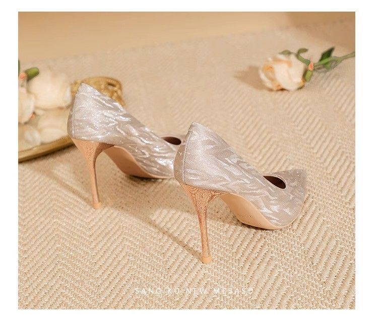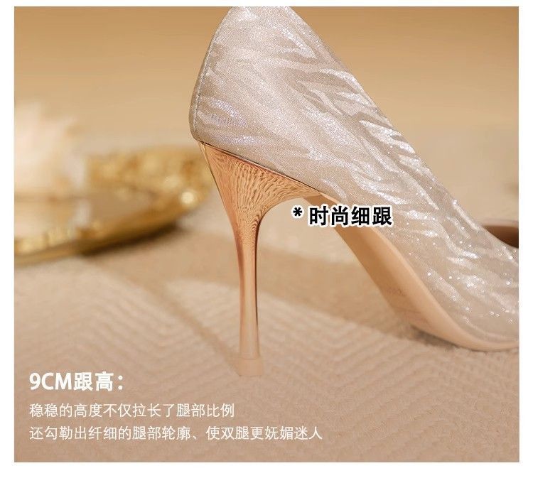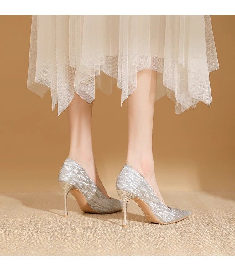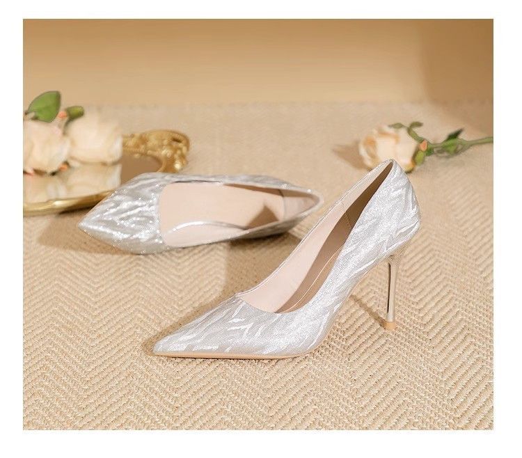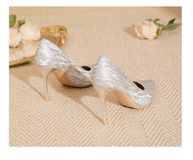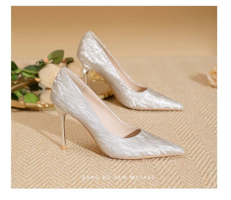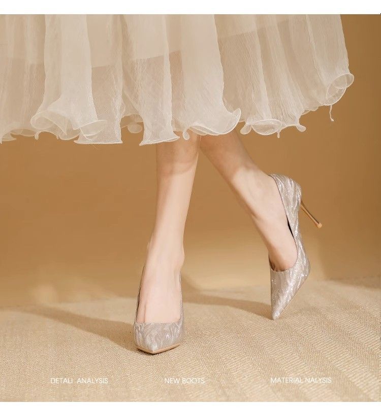 【首单直降】银色高跟鞋细跟新款气质浅色百搭仙女风新娘婚鞋伴娘