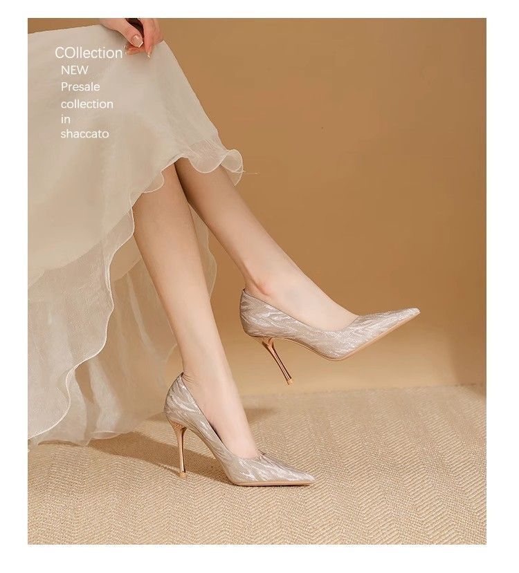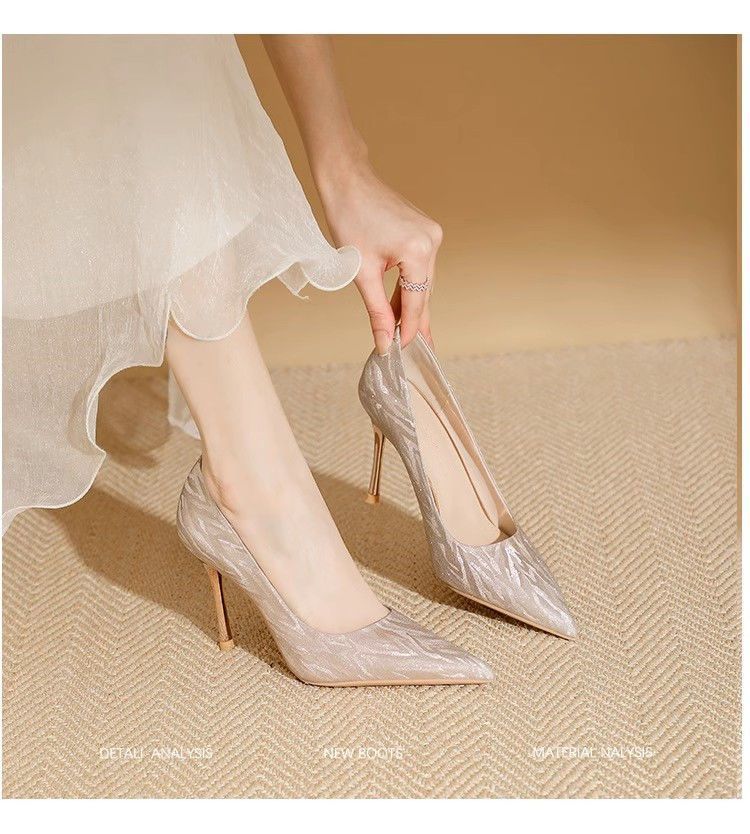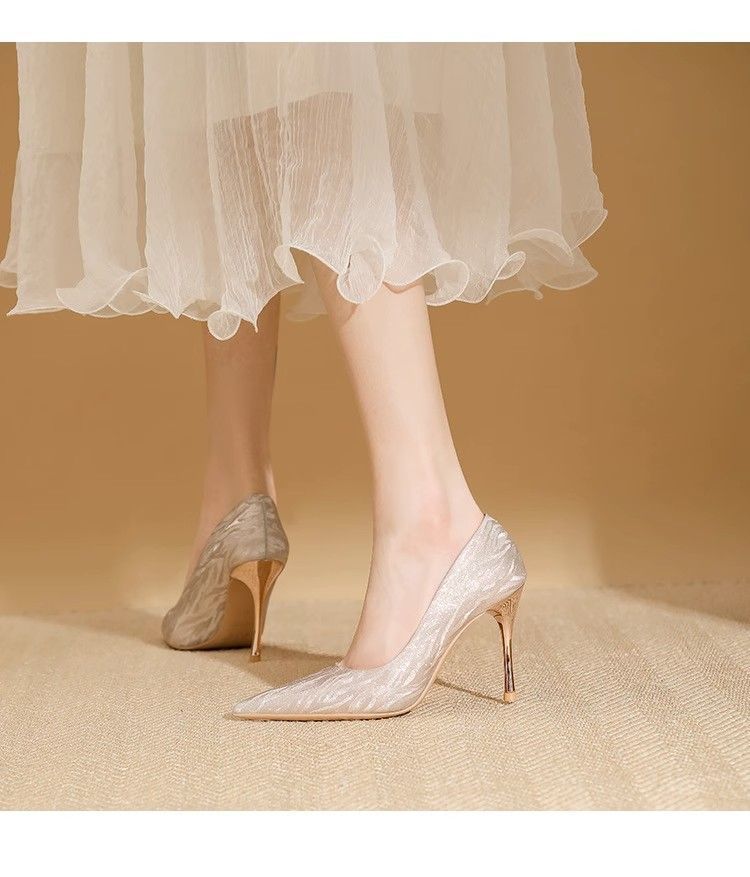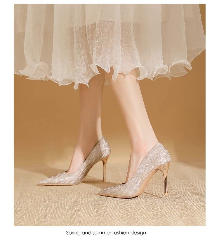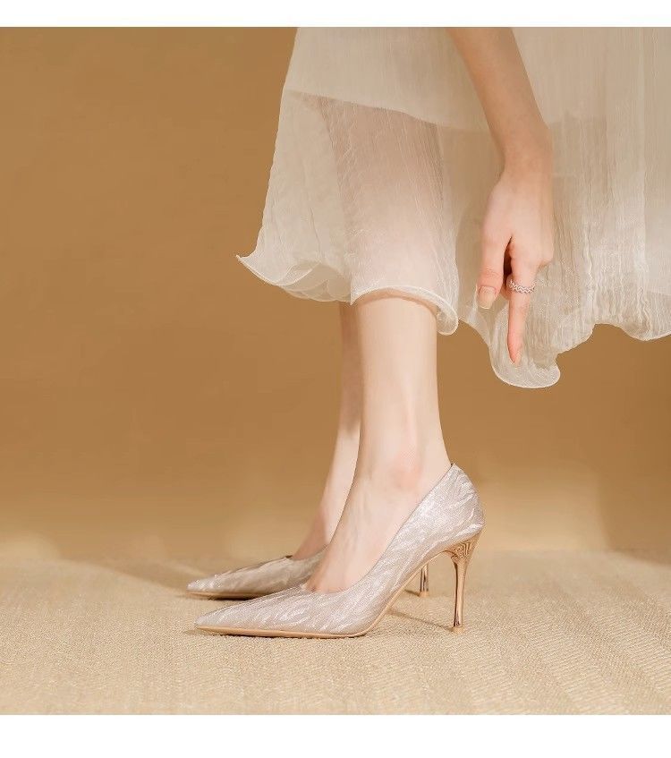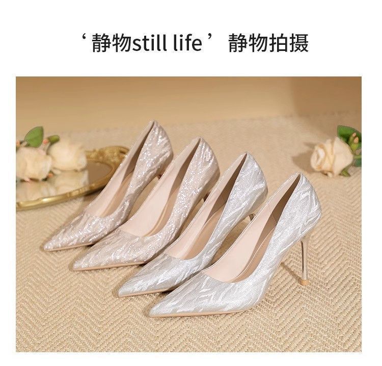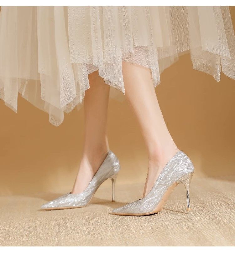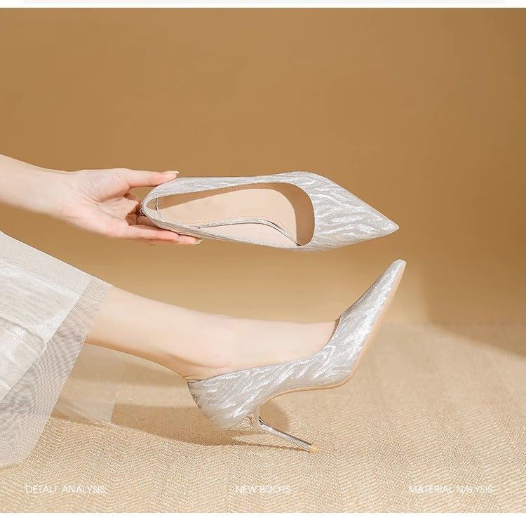 【首单直降】银色高跟鞋细跟新款气质浅色百搭仙女风新娘婚鞋伴娘