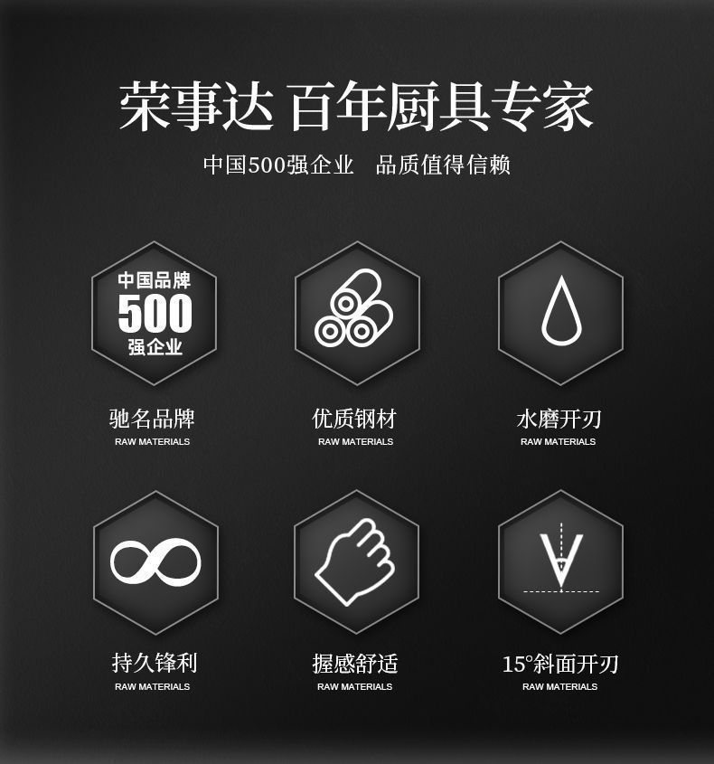 荣事达家用厨房刀具套装切菜刀不锈钢斩砍骨刀厨师切肉专用切片刀