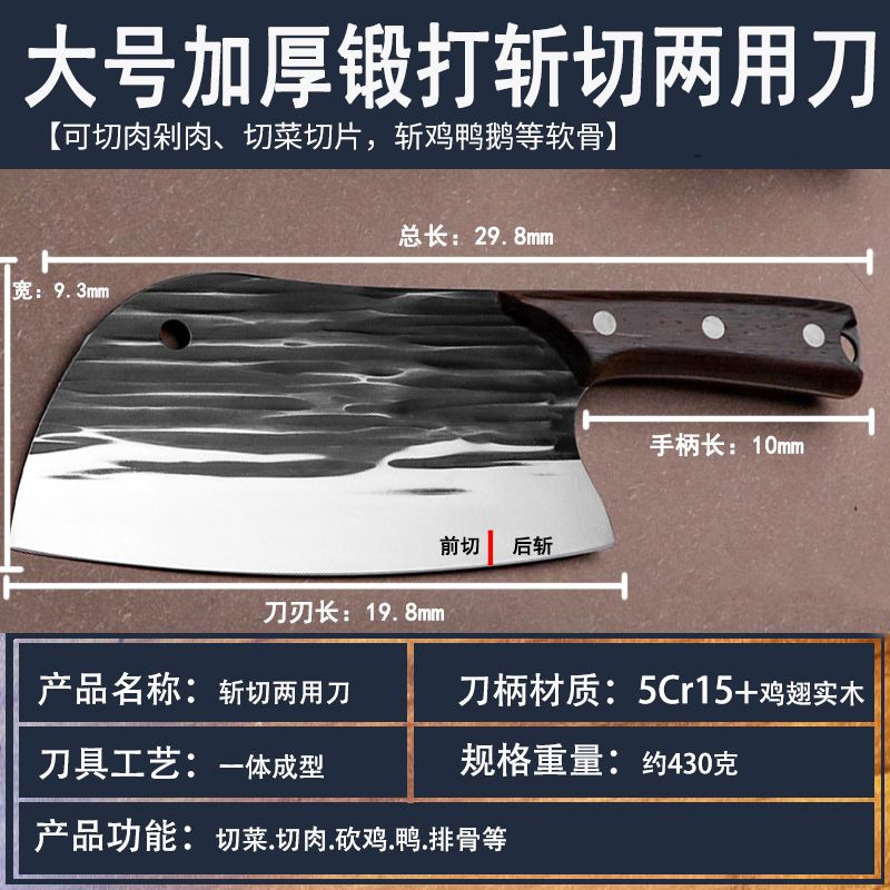 【官方】锻打菜刀家用鱼头斩切两用刀加大加长厨师女士刀专用厨房