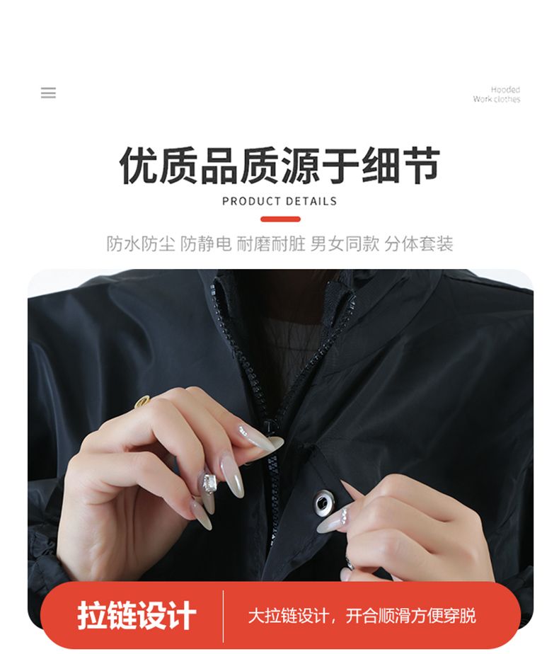 防静电全套分体防溅水防尘工作服喷漆工作服连帽男女不粘毛耐磨