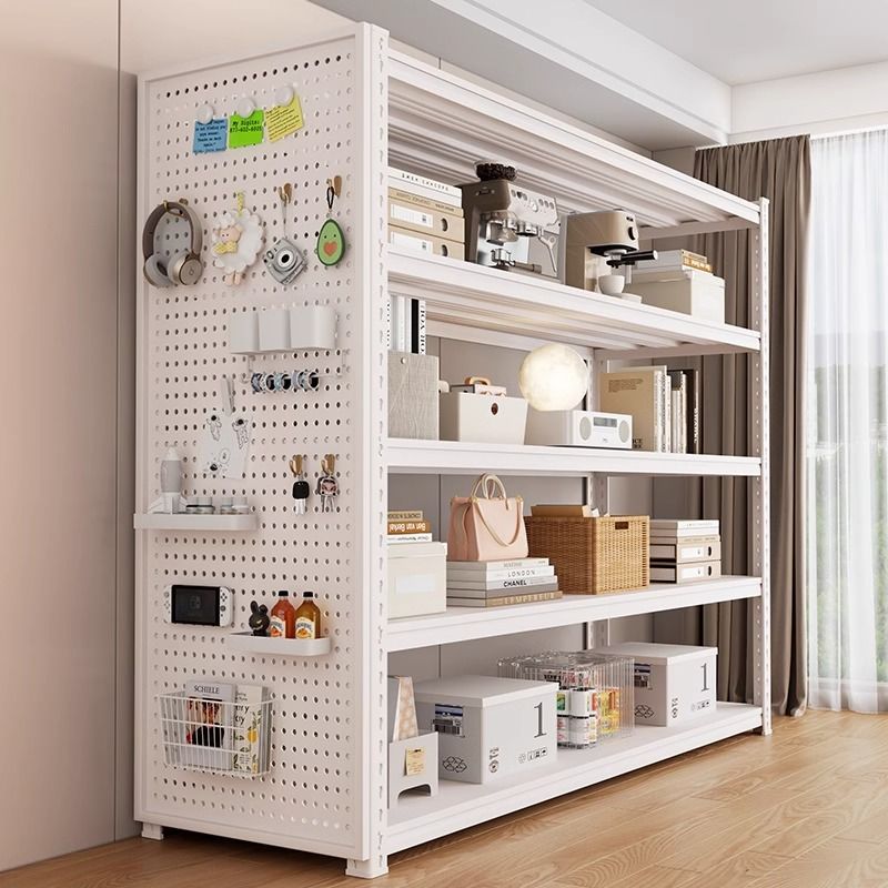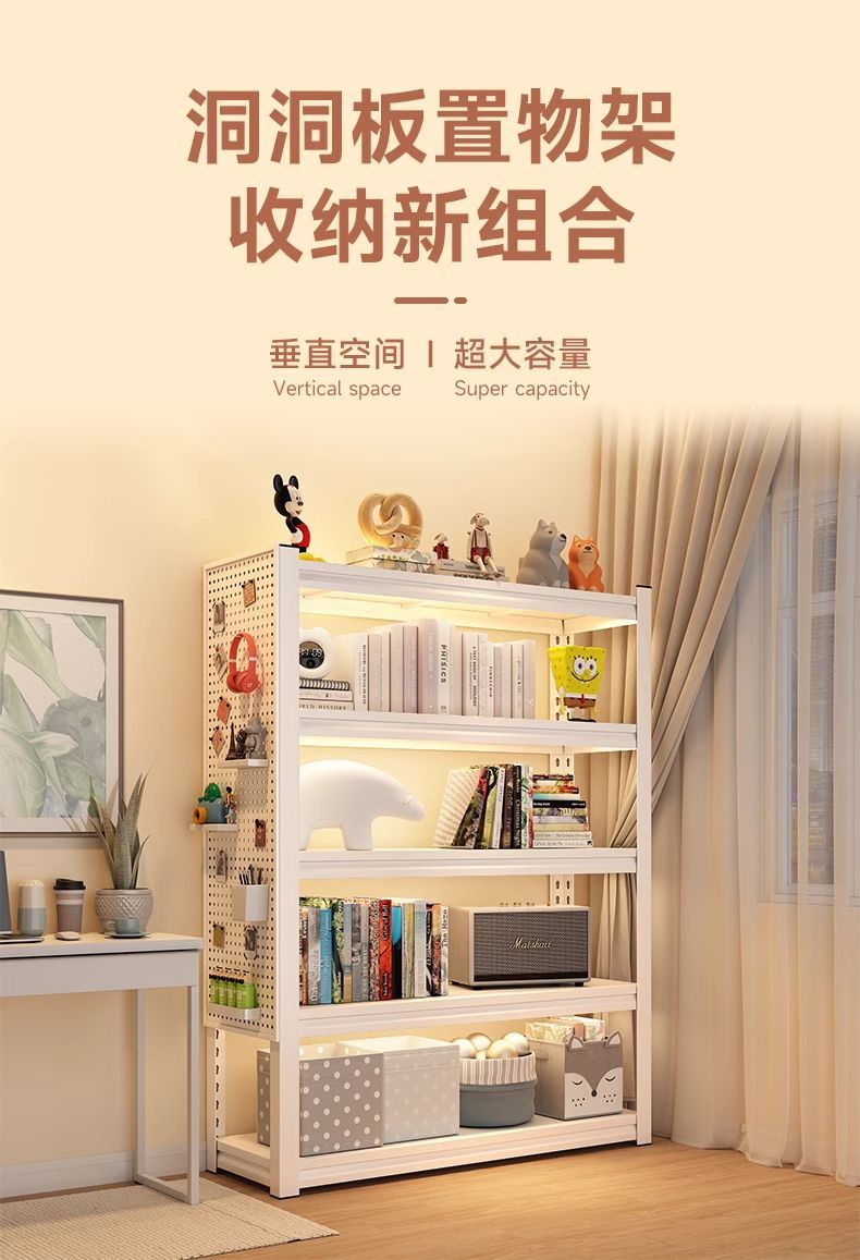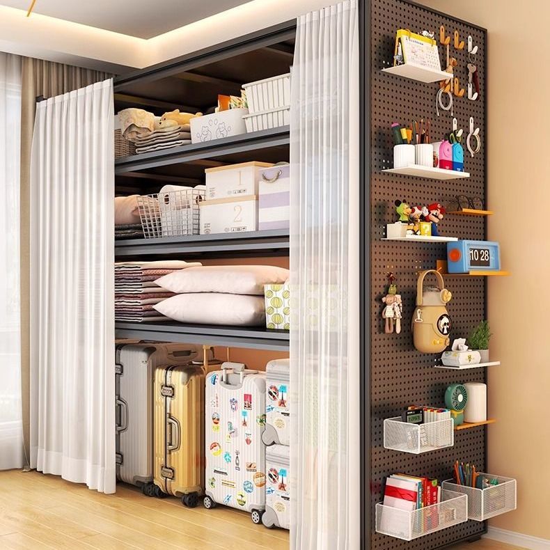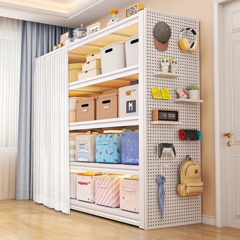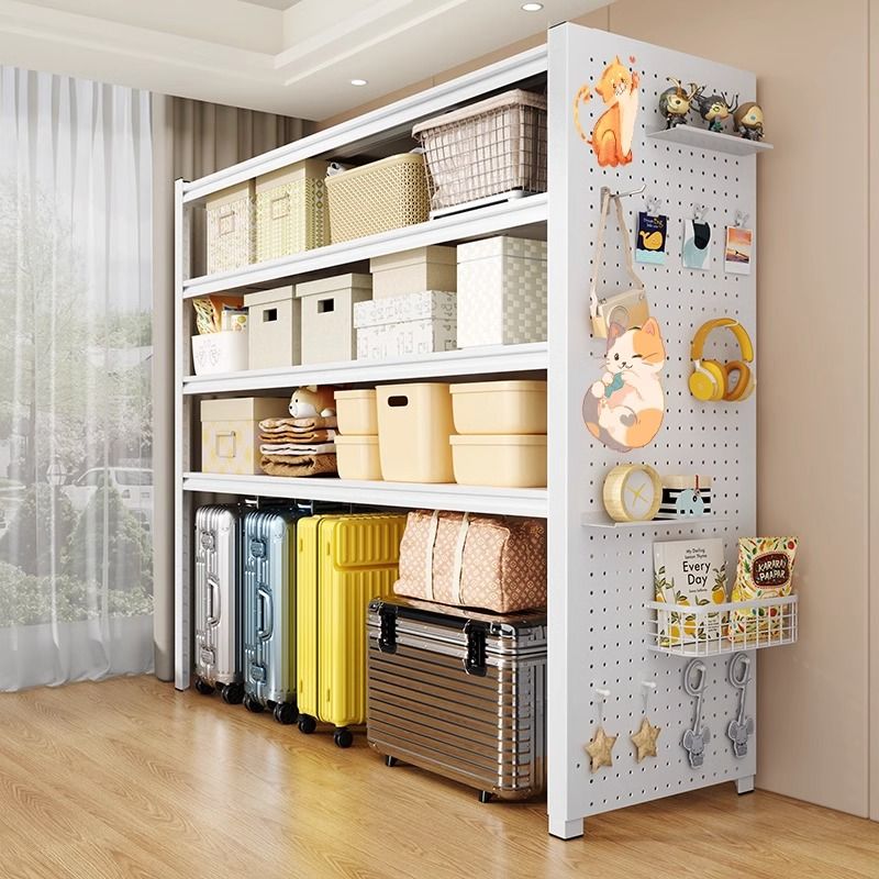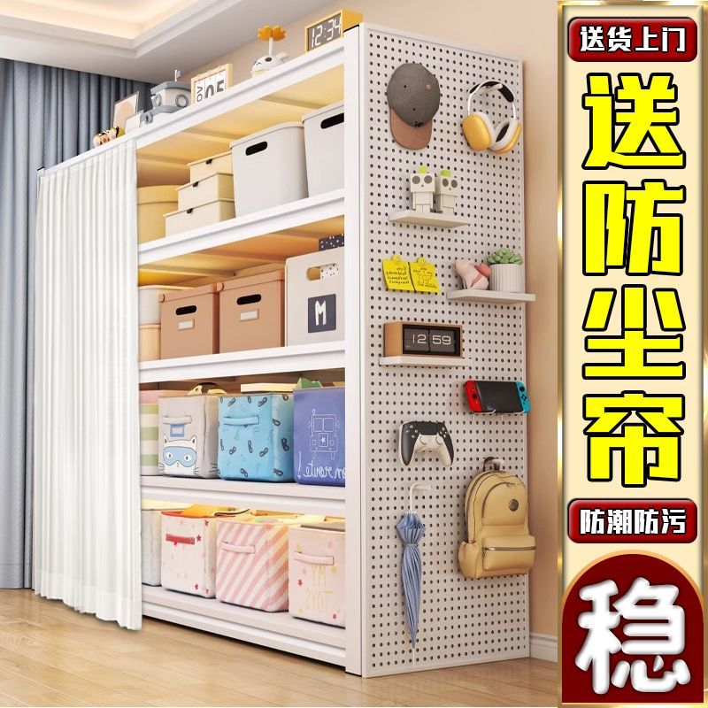 洞洞板置物架带防尘遮挡帘家用落地多层货架仓库阳台储物架杂物间