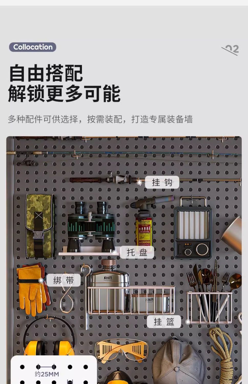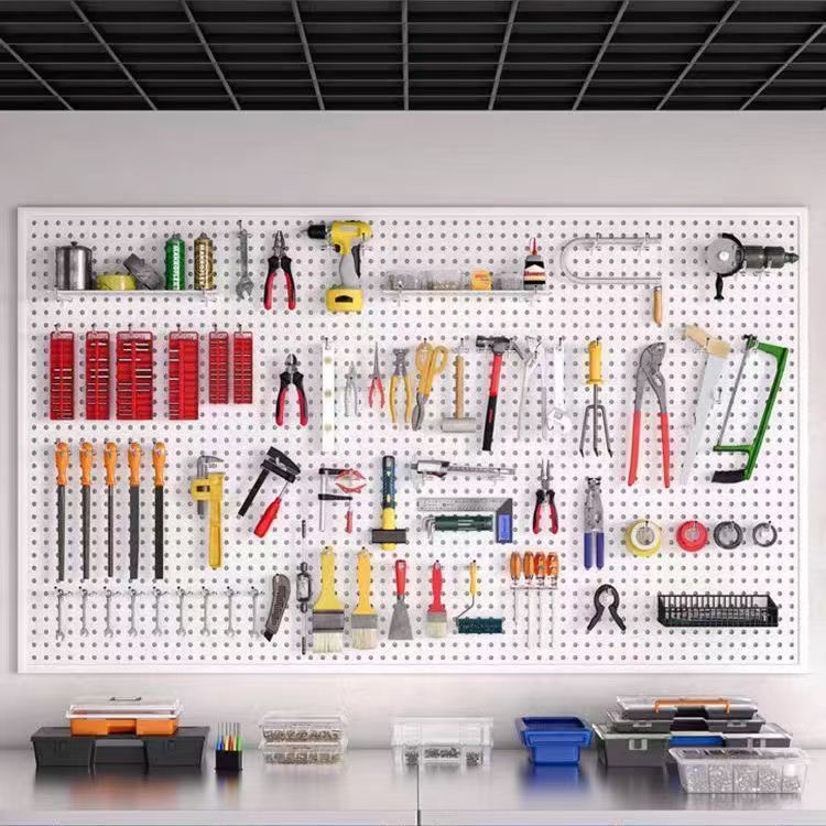 洞洞板圆孔挂墙五金工具置物架展示收纳货架厨房家用多功能工具墙