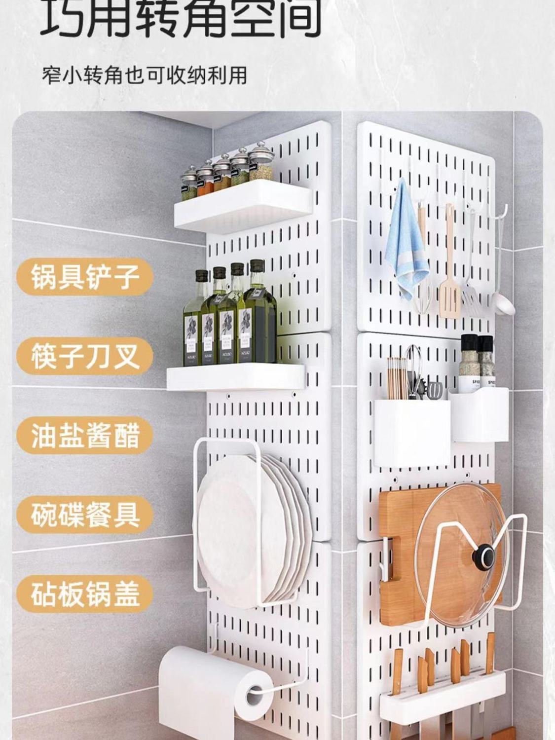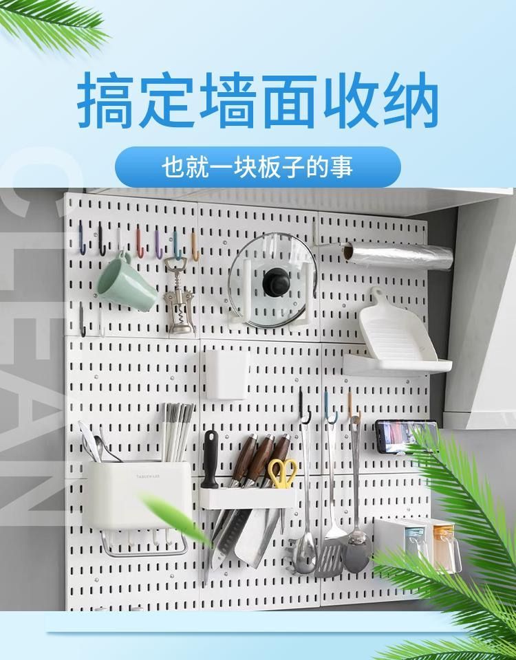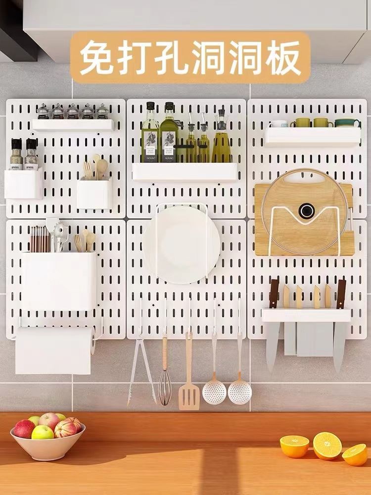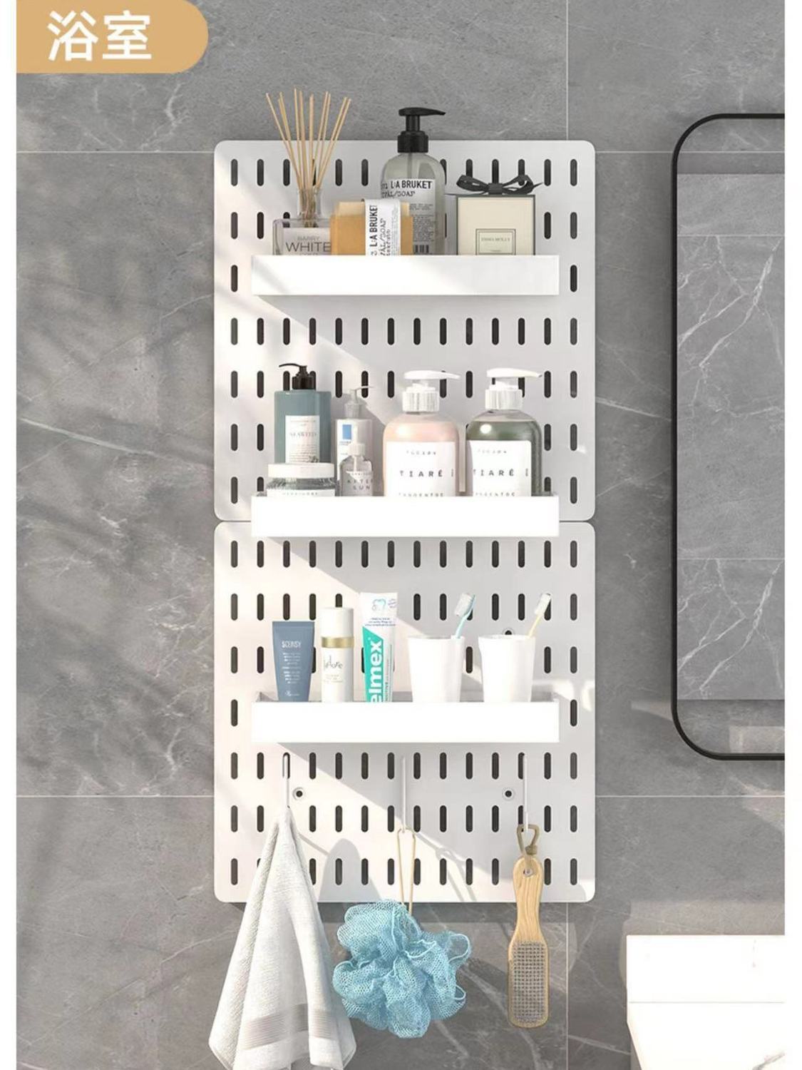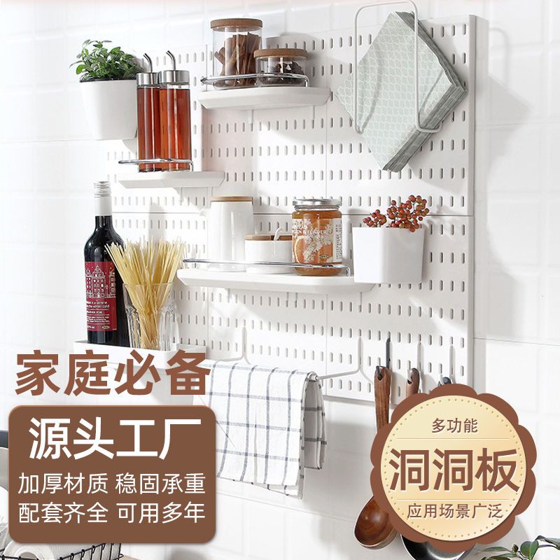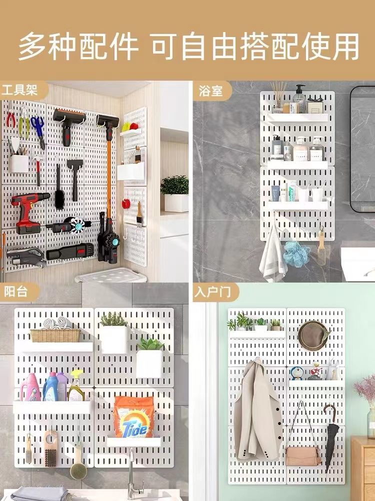 升级加厚家用免打孔洞洞板墙壁宿舍厨房浴室墙上置物架隔板收纳板