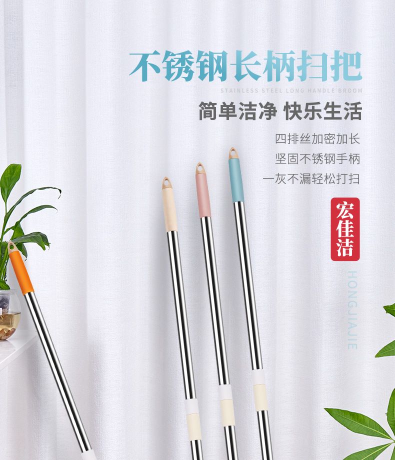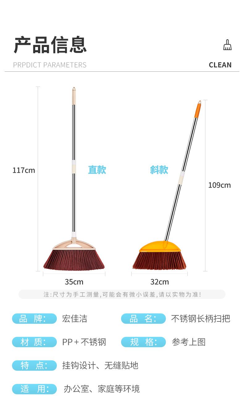 加厚不锈钢长杆扫把家用塑料扫地扫帚单个清洁软毛笤帚耐用不弯腰