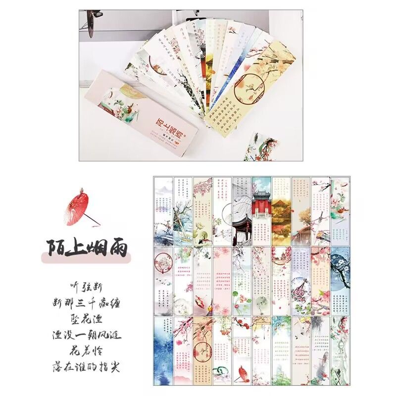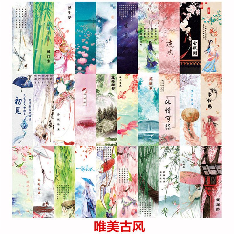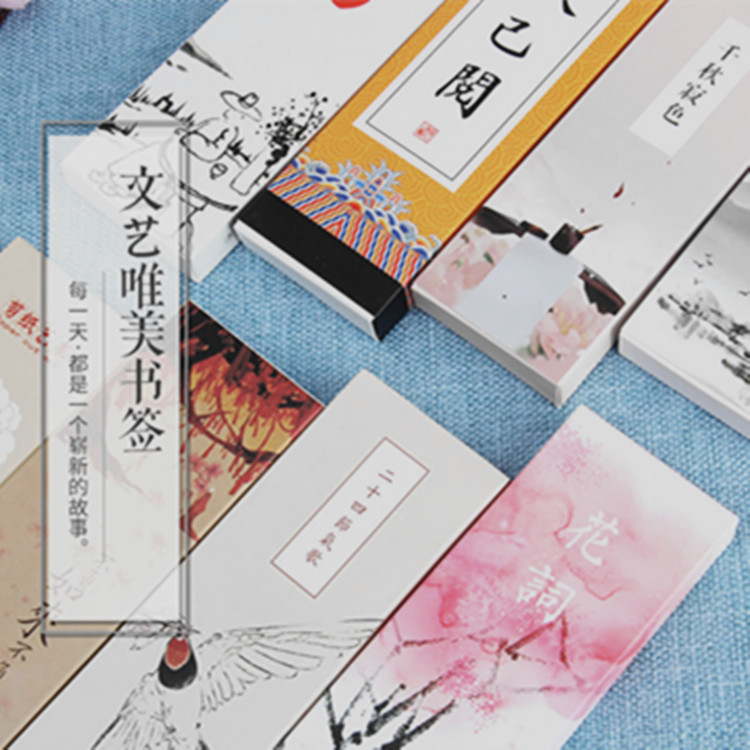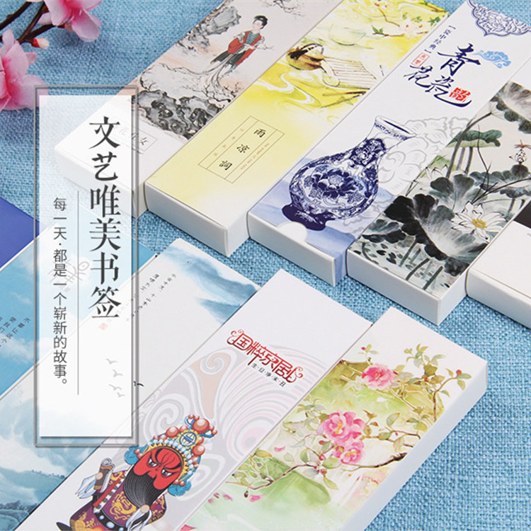 买2盒送1盒 中国古典复古风唯美书签空白手绘精美礼品纸质书签