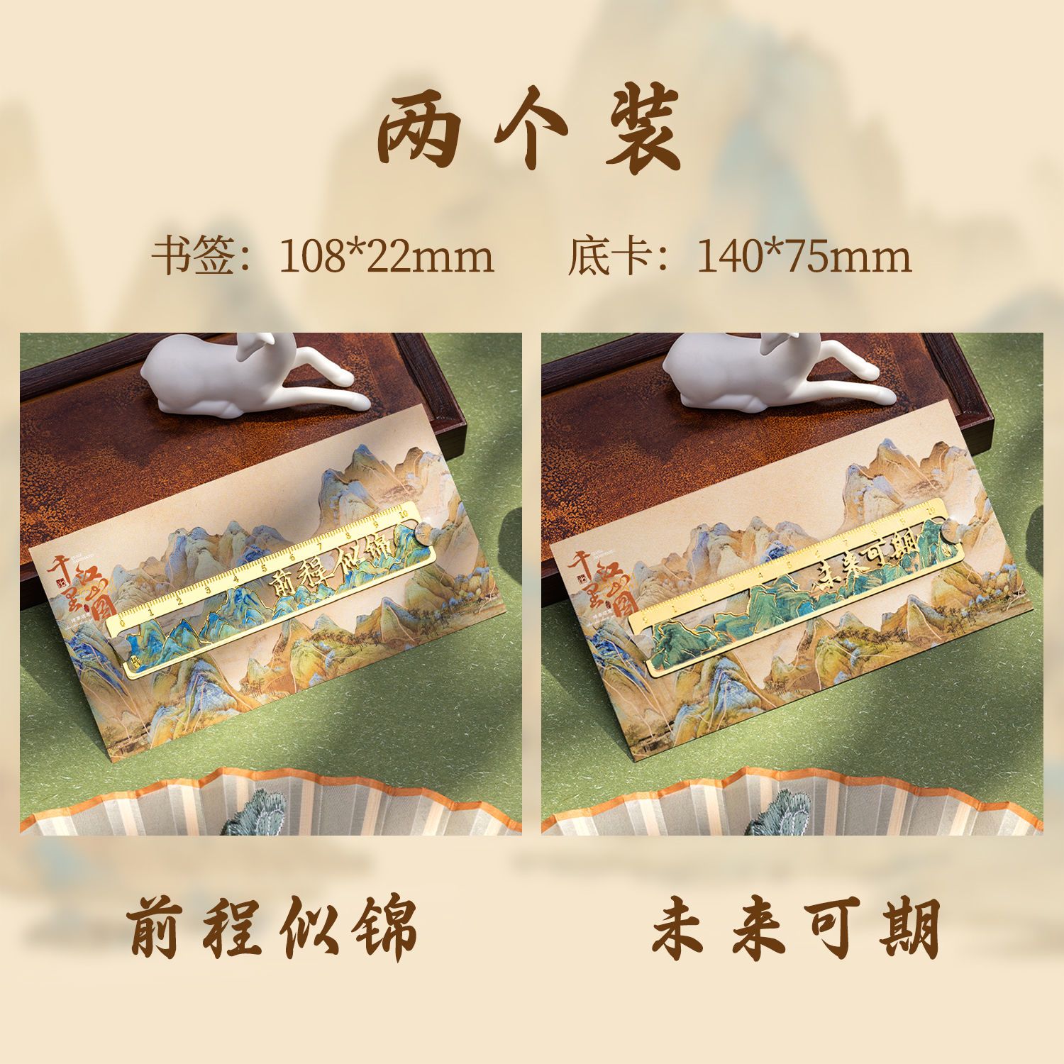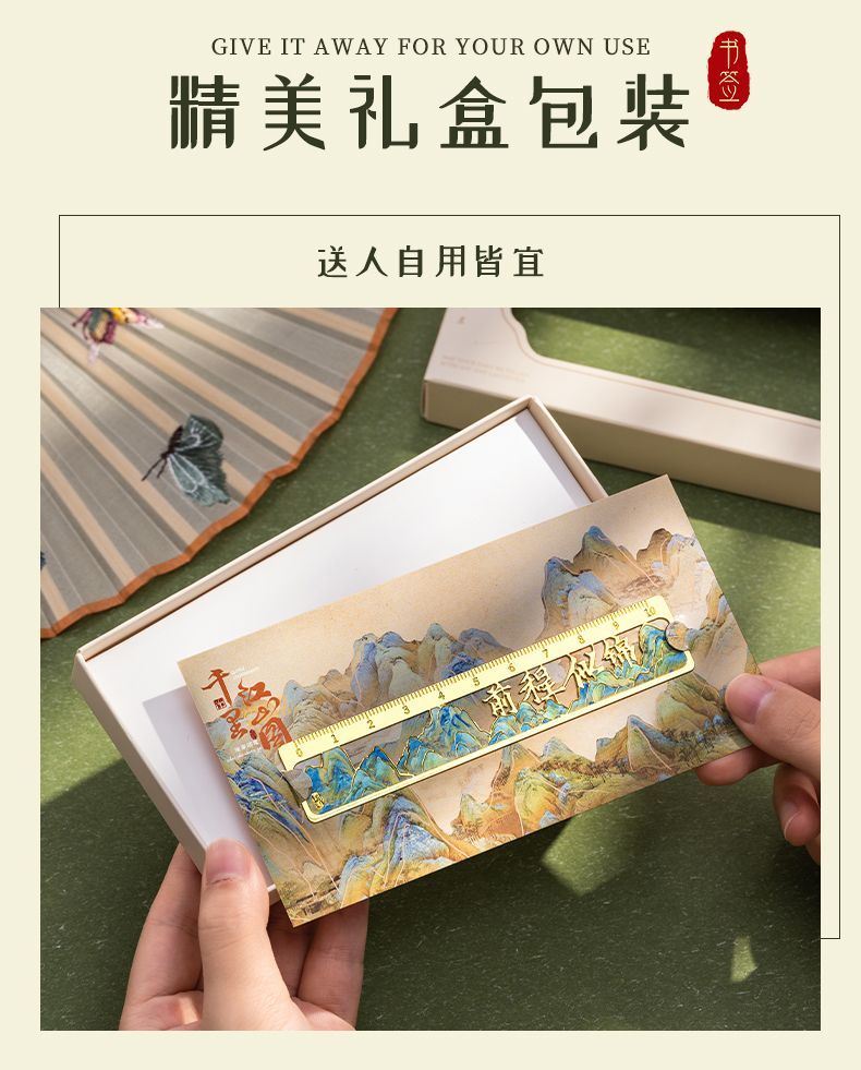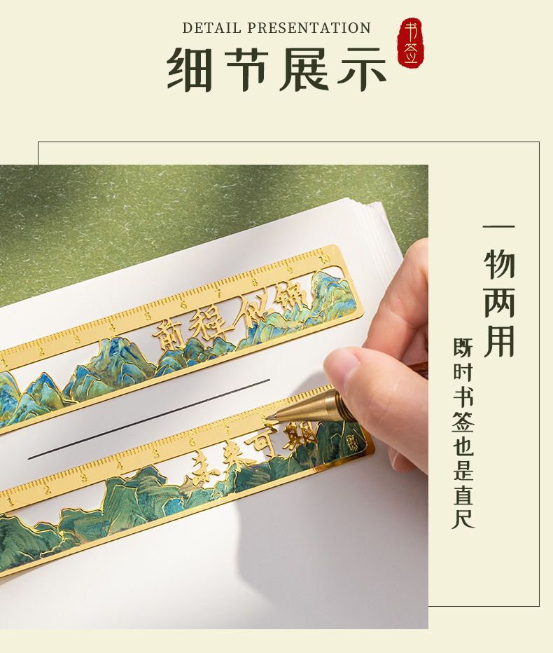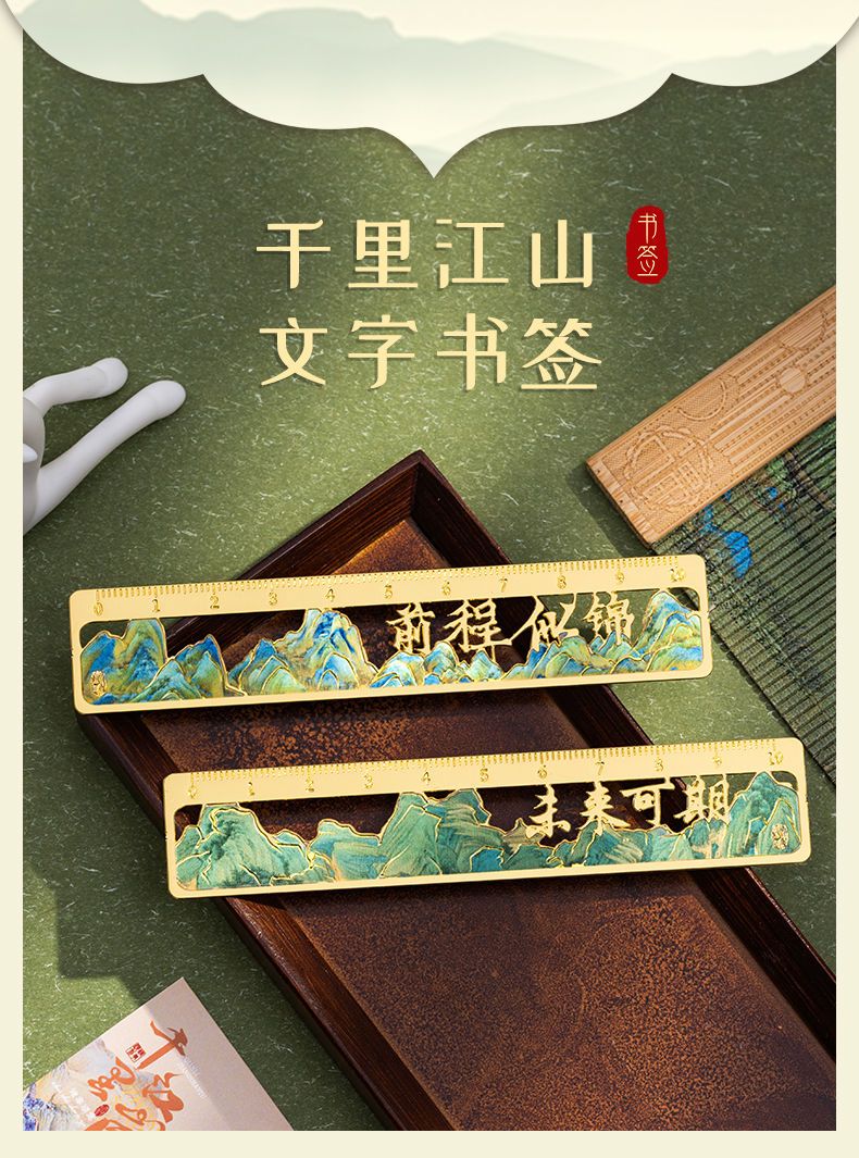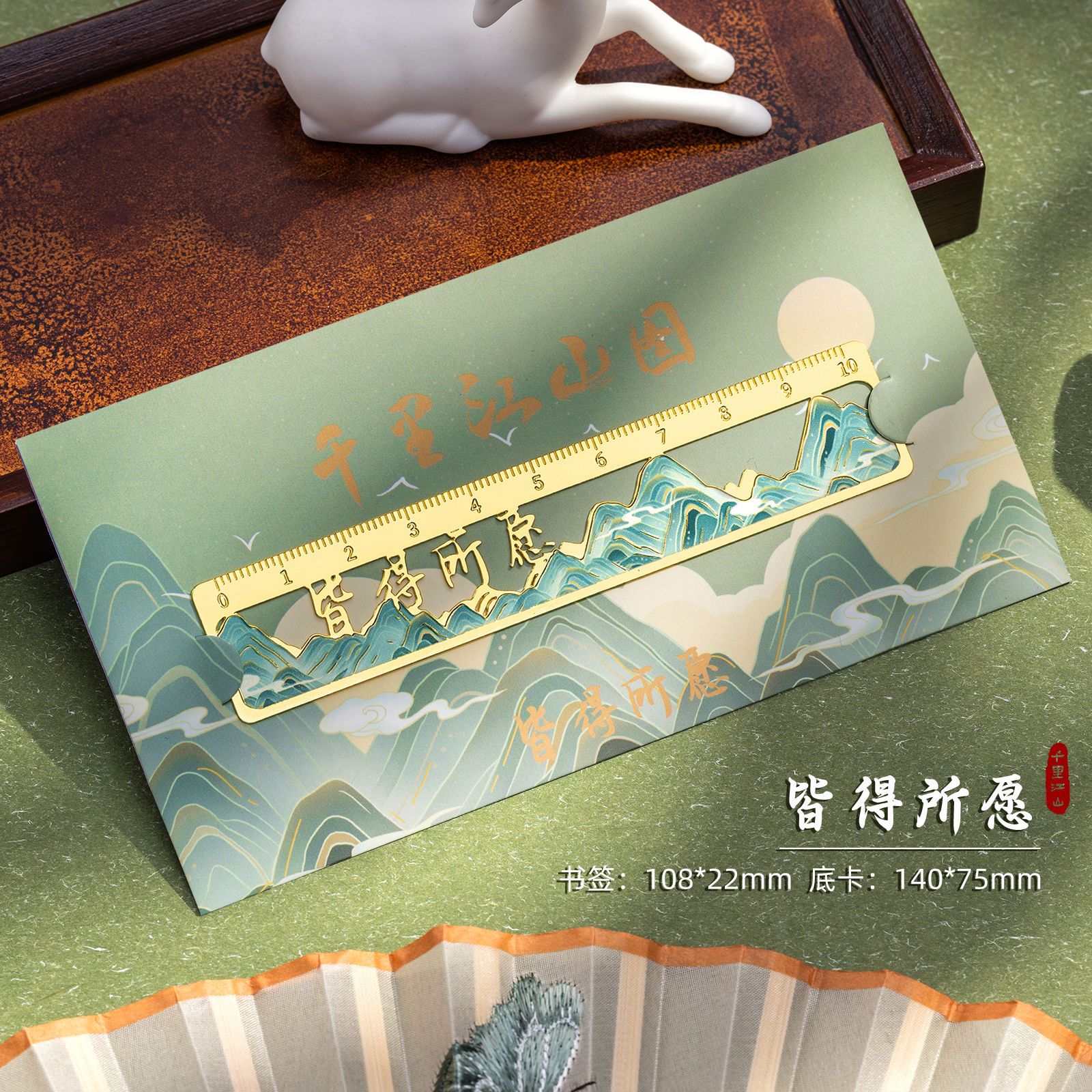 毕业季礼物金属书签高颜值中国风古典千里江山定制精致尺子书签