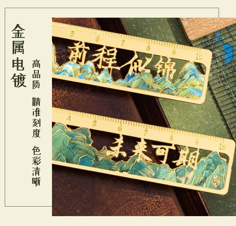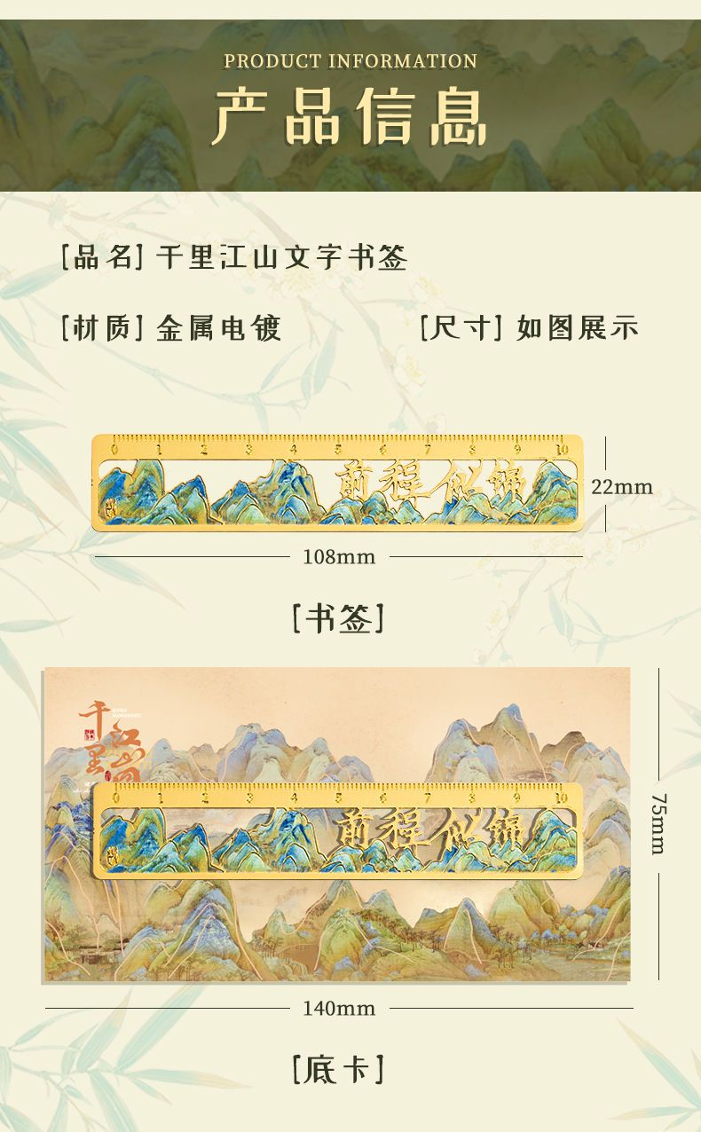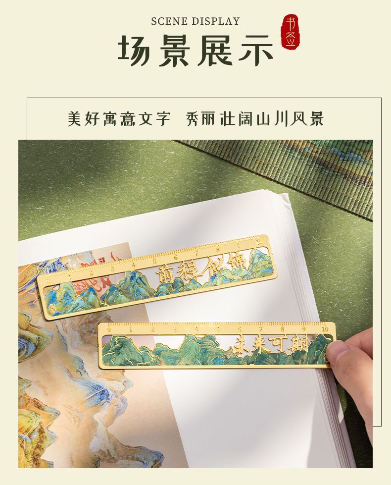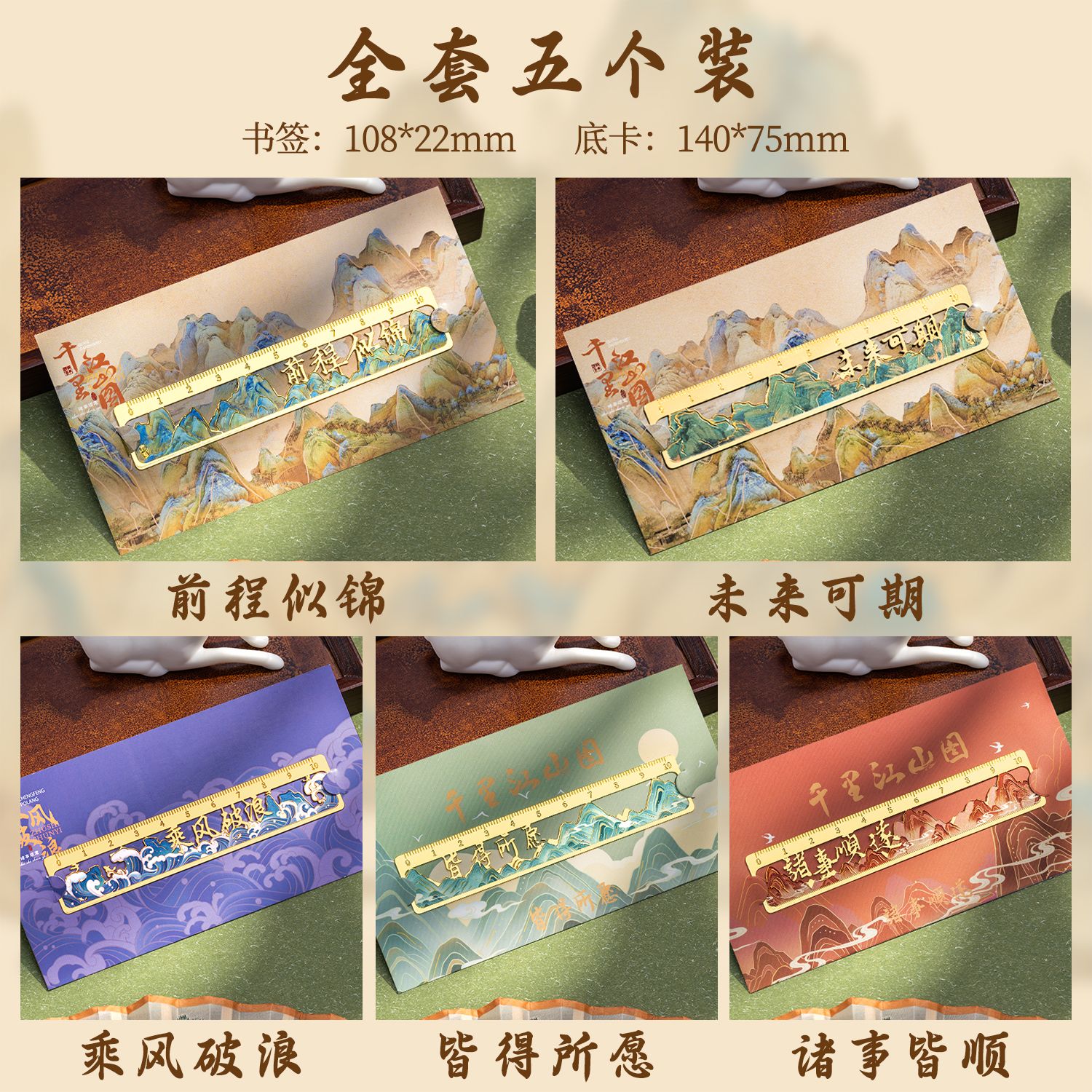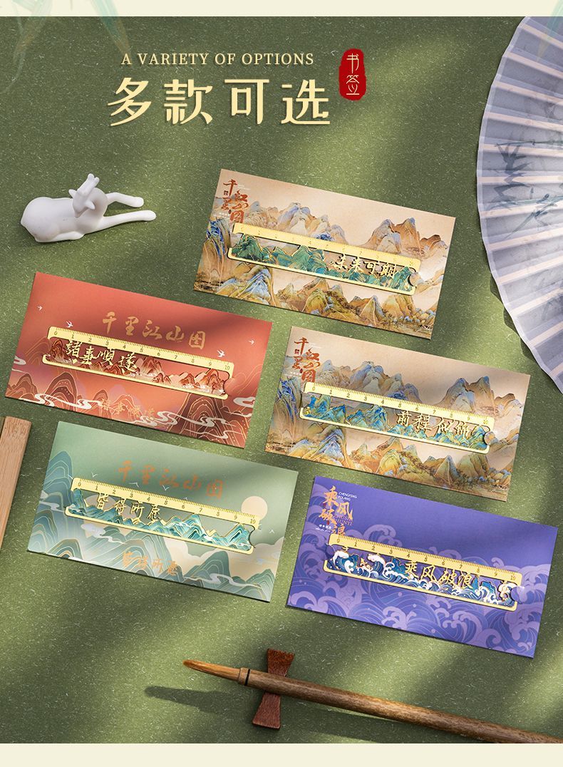 毕业季礼物金属书签高颜值中国风古典千里江山定制精致尺子书签