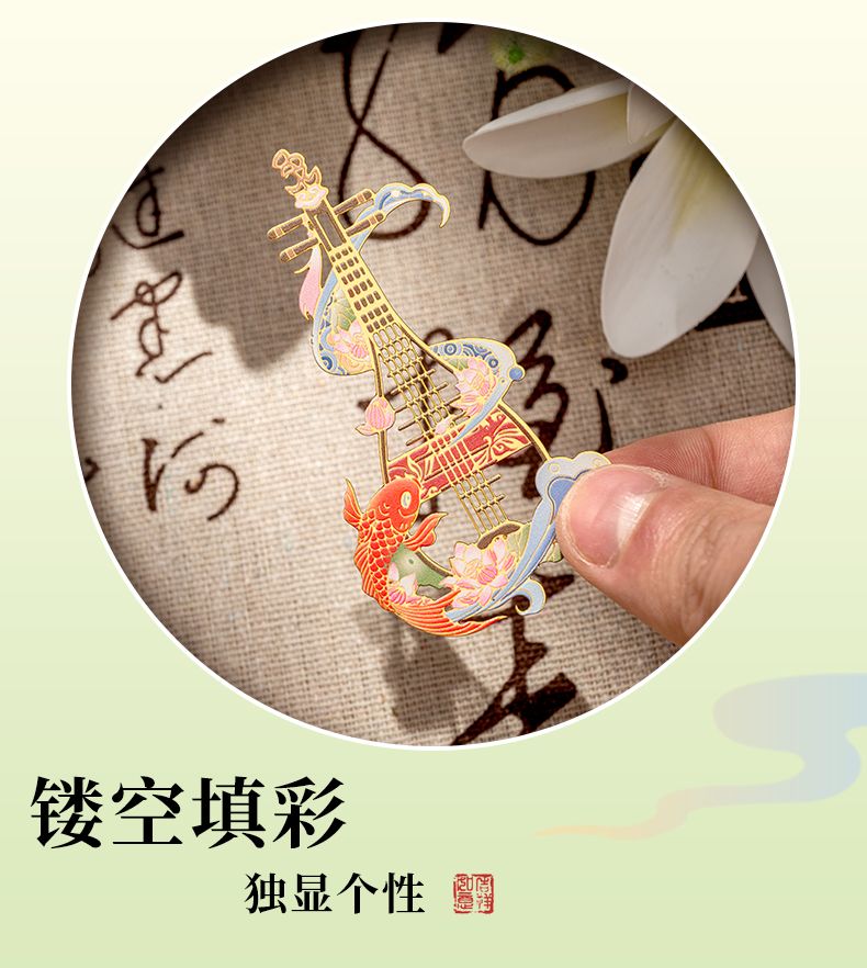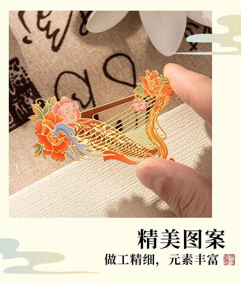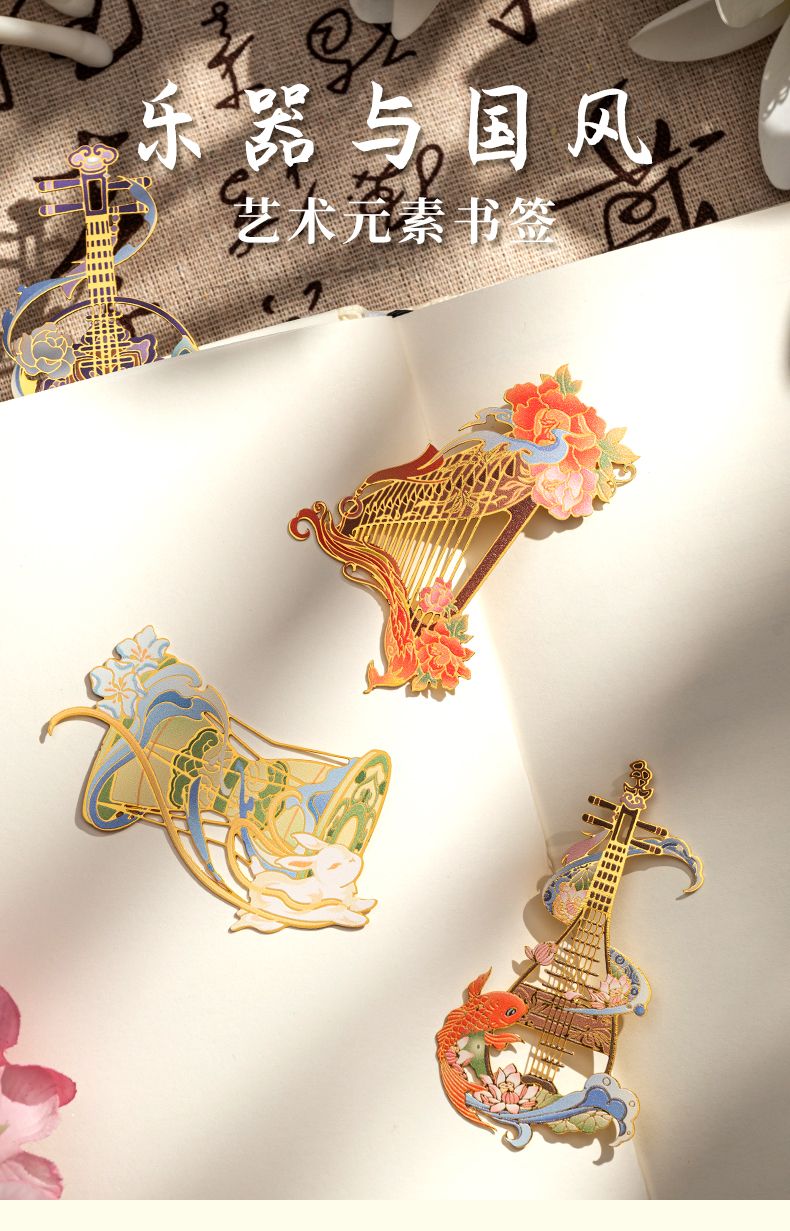 教师节礼物送老师古风乐器书签古典中国风金属书签毕业礼物可定制