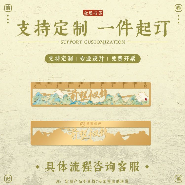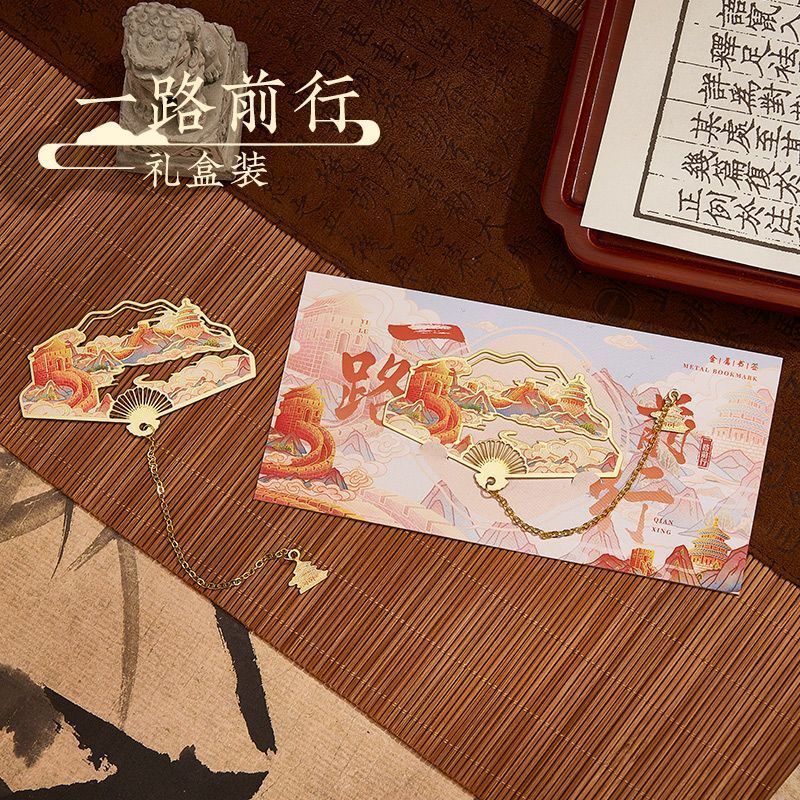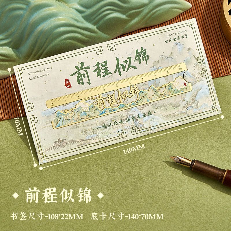前程似锦书签创意黄铜金属书签中国风礼盒学生毕业奖励古风书签