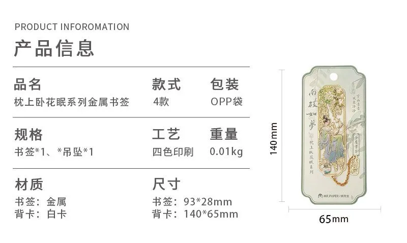 | 1款【枕上卧花眠金属书签】盈盈春水 | USD $1.11 | 999999 piece available |