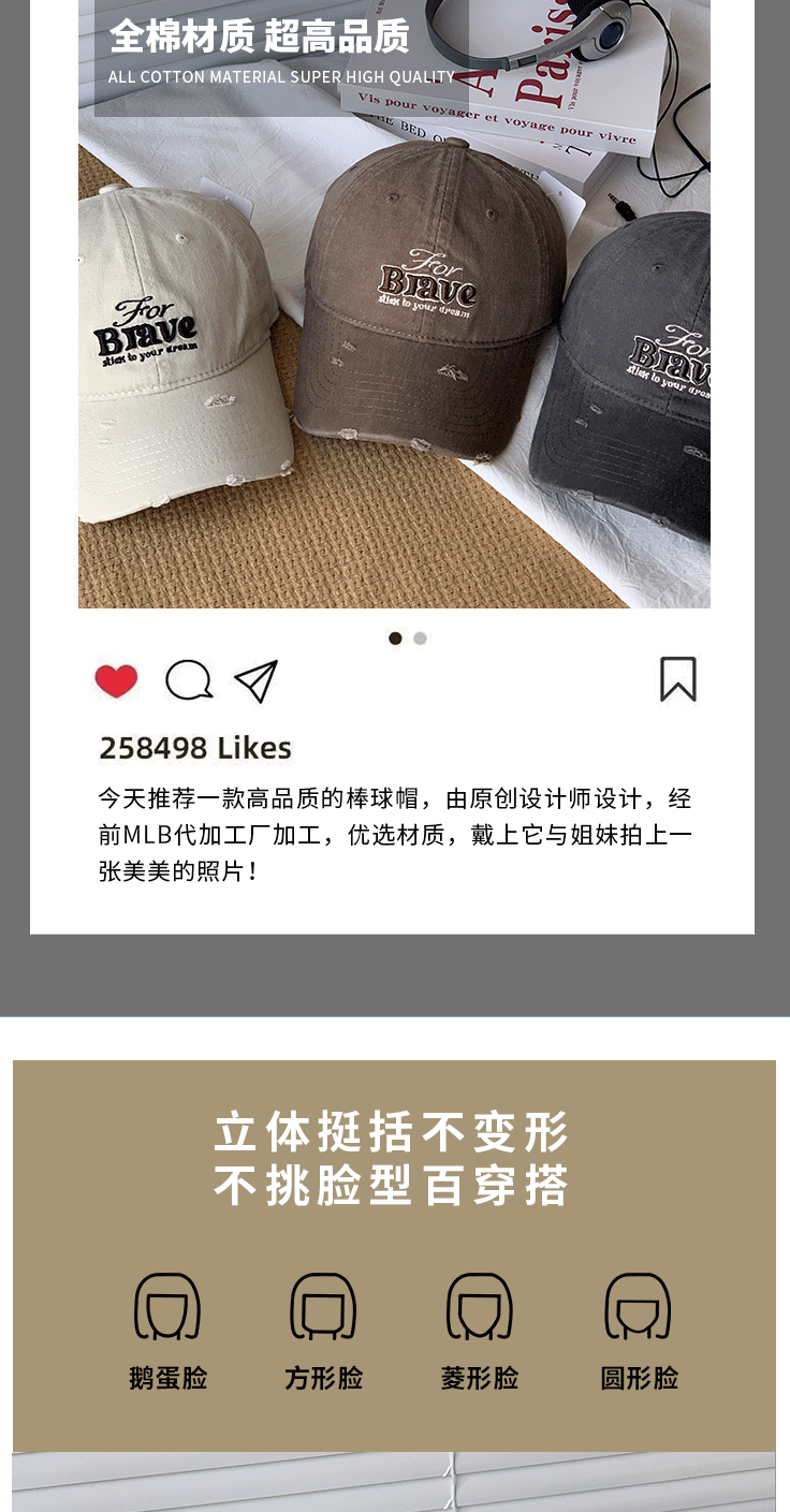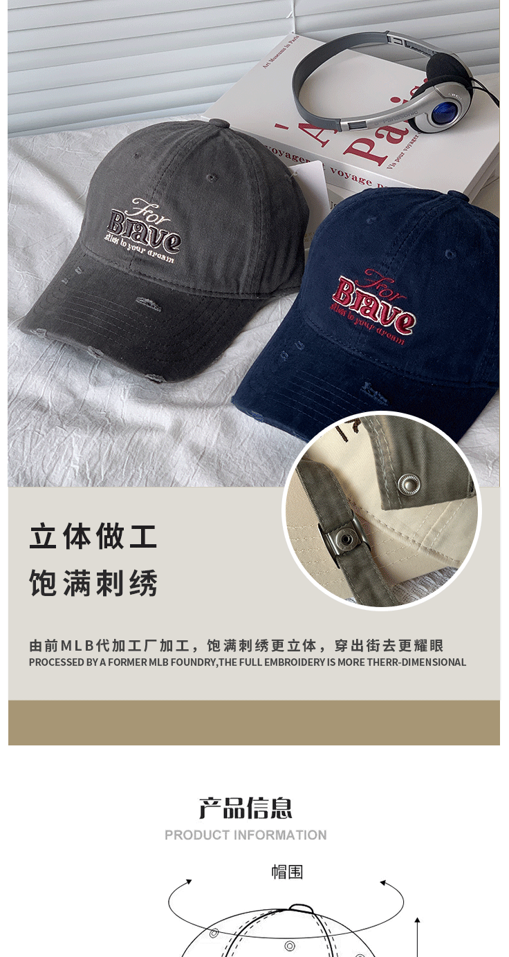 2024秋季大头围鸭舌帽字母刺绣大帽檐帽子男女同款百搭软顶棒球帽