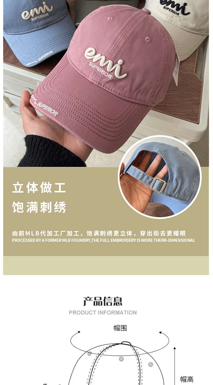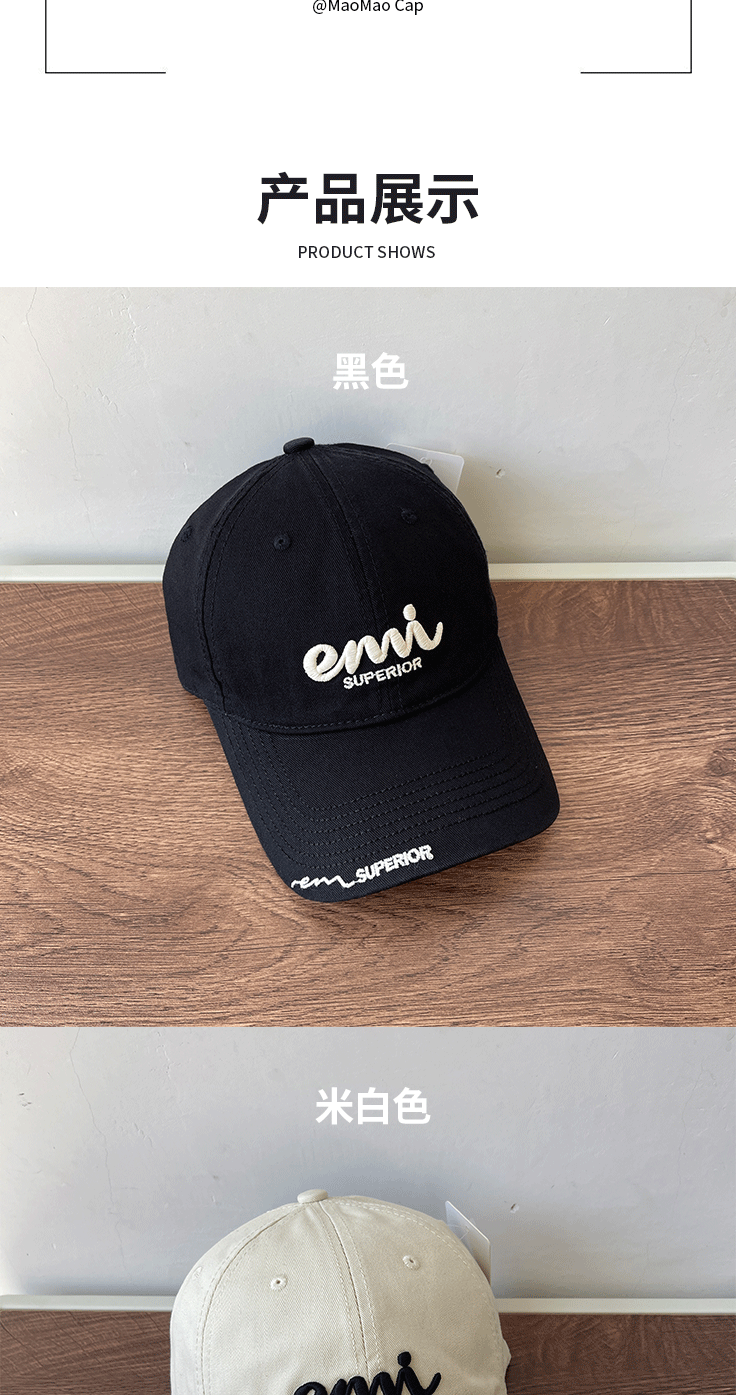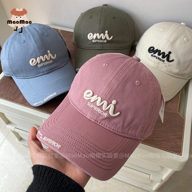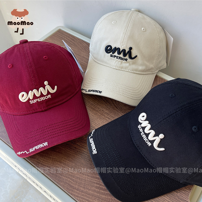 新原创emi韩版棒球帽百搭字母刺绣男女同款鸭舌帽字显脸小ins帽子