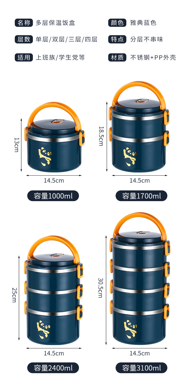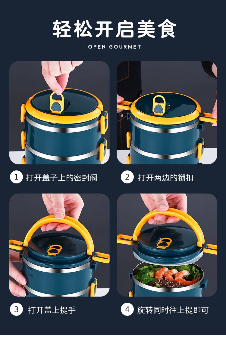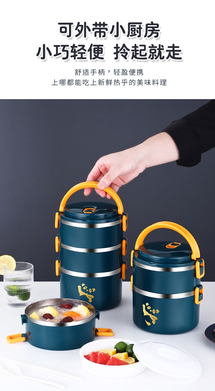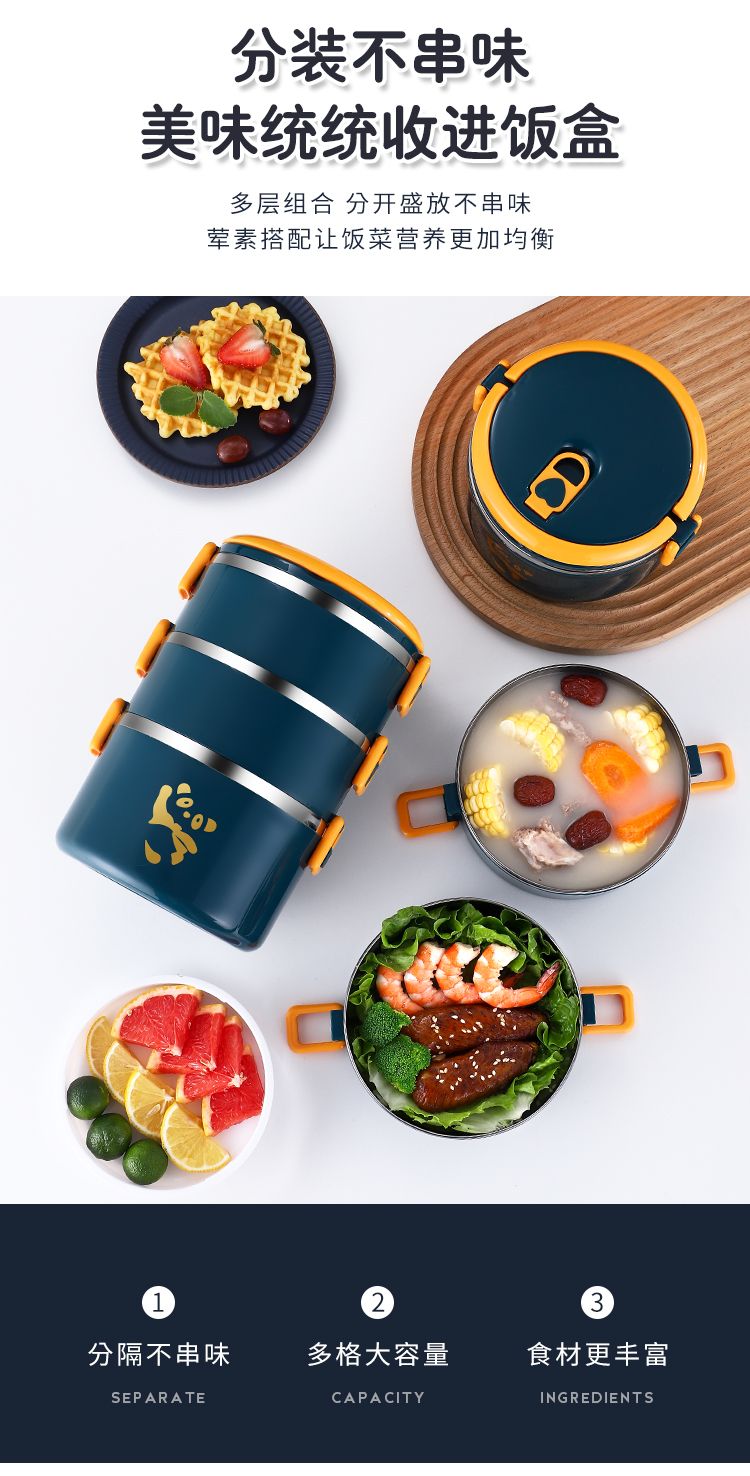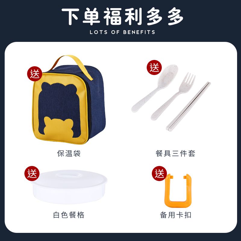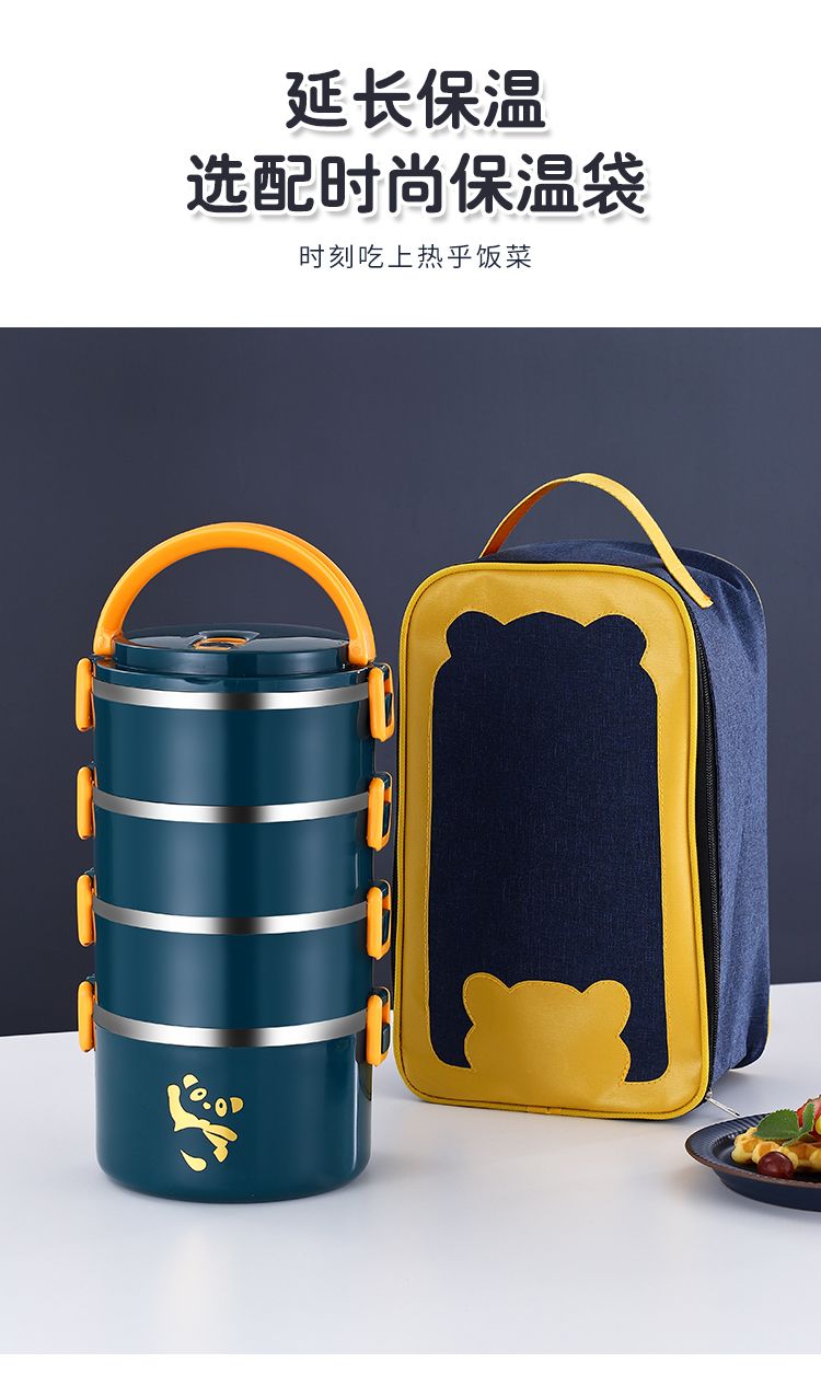 | [contrast color yellow blue-4 layers] + tableware + customized thermal bag(【撞色黄蓝-4层】+餐具+定制保温袋) | USD $5.9 | 999999 piece available |