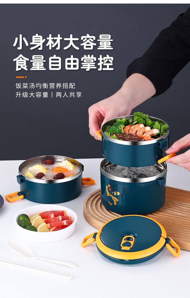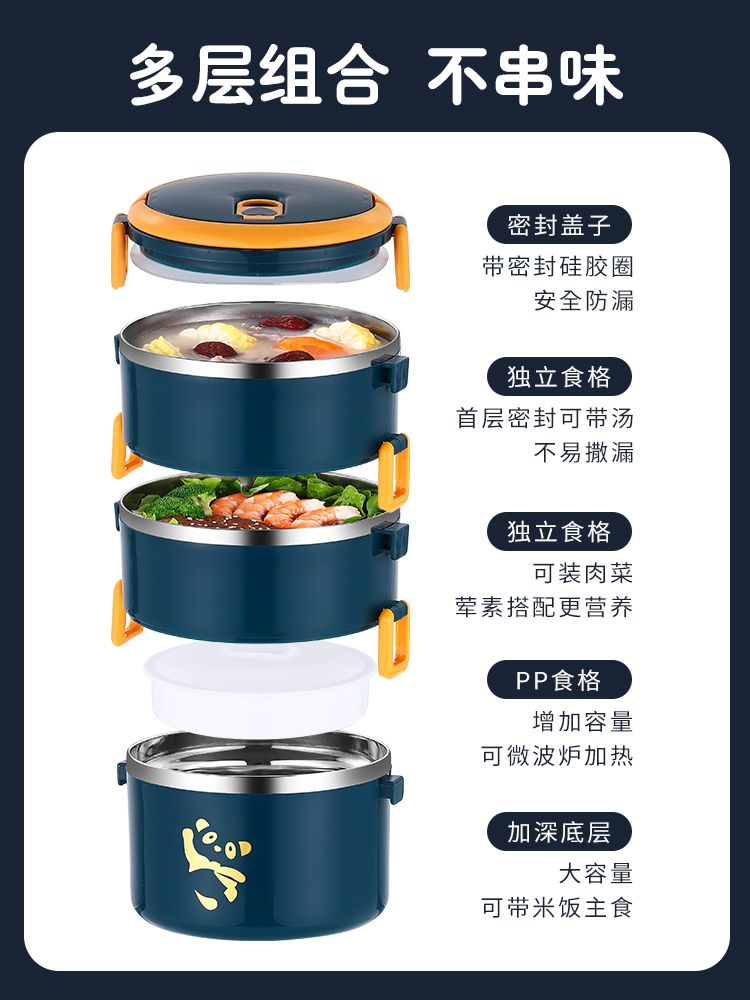 | [contrast color yellow blue-3 layers] + tableware + customized thermal bag(【撞色黄蓝-3层】+餐具+定制保温袋) | USD $5.11 | 999999 piece available |