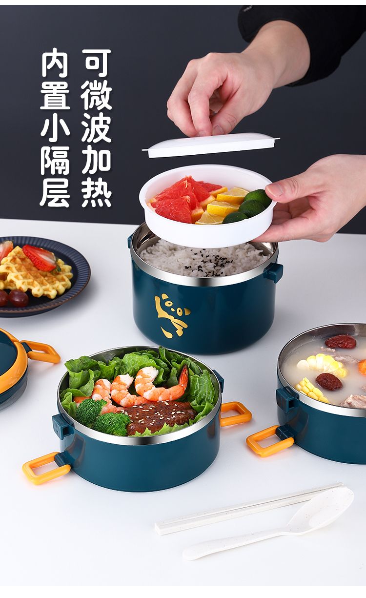 学生饭盒带盖上班族成人保温桶网红餐盒不锈钢女便当盒微波炉加热