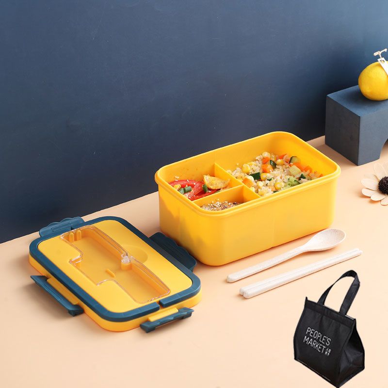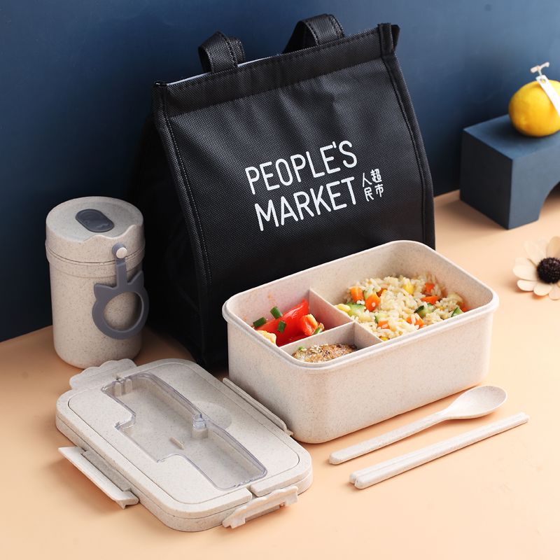 小麦便携保温饭盒学生三格便当盒女手提大容量加热密封上班族餐盒