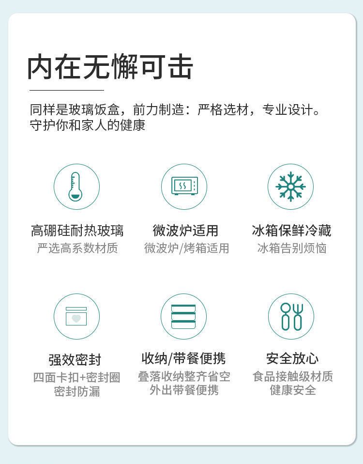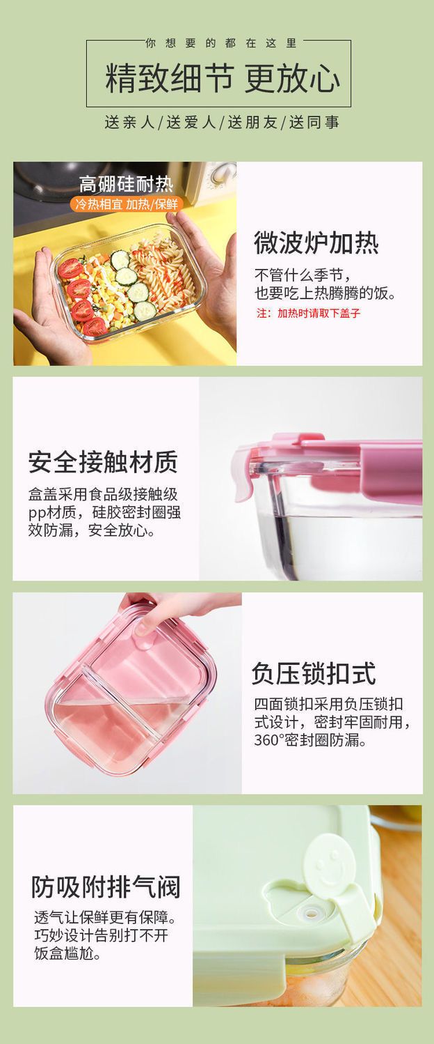 玻璃饭盒上班族微波炉加热专用饭盒带盖保鲜盒保温便当盒玻璃