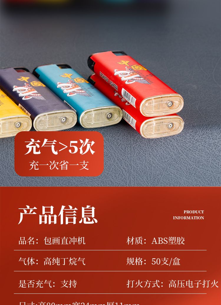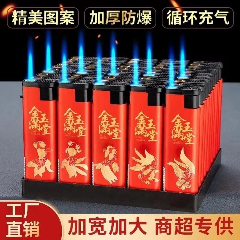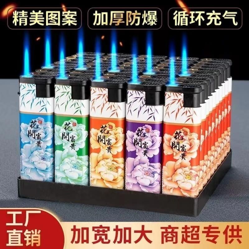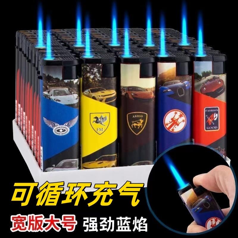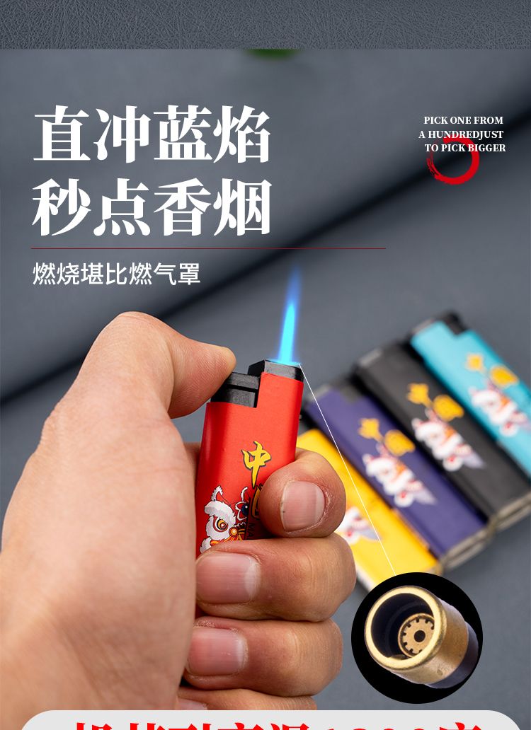 高档蓝焰直冲充气打火机升级铜芯气化炉加厚耐用一次性防风打火机