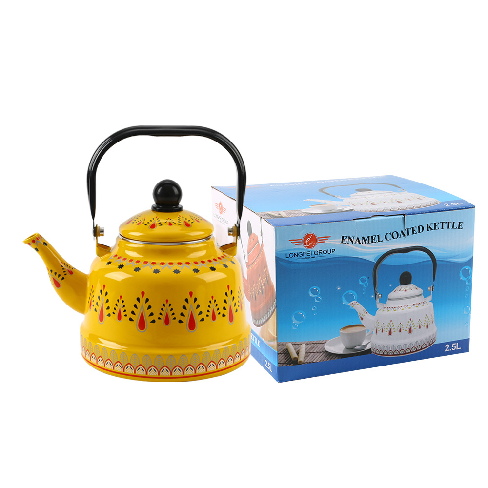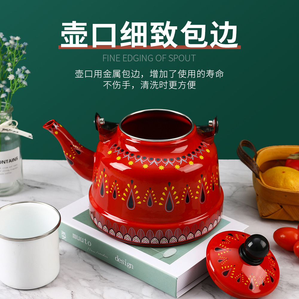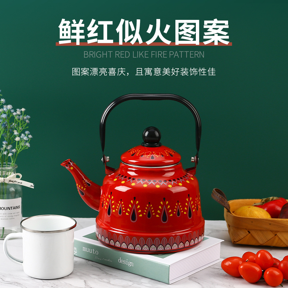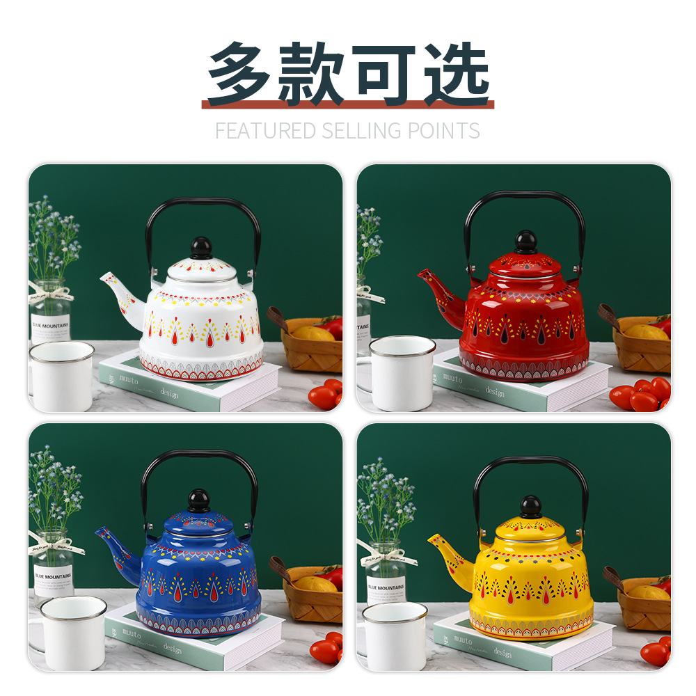 搪瓷鲜红似火钢柄古钟壶 2.5L搪瓷白蓝红黄色珐琅礼品壶 内销外贸