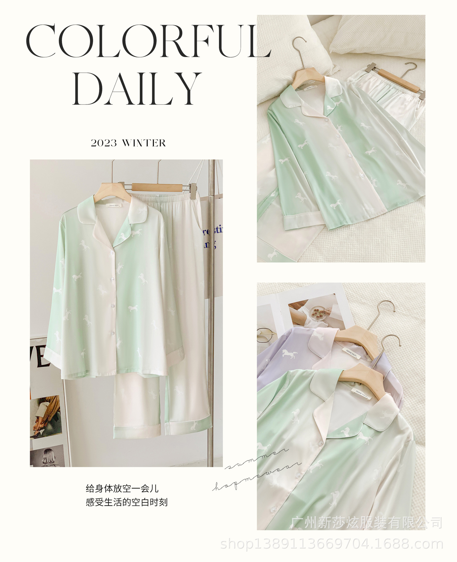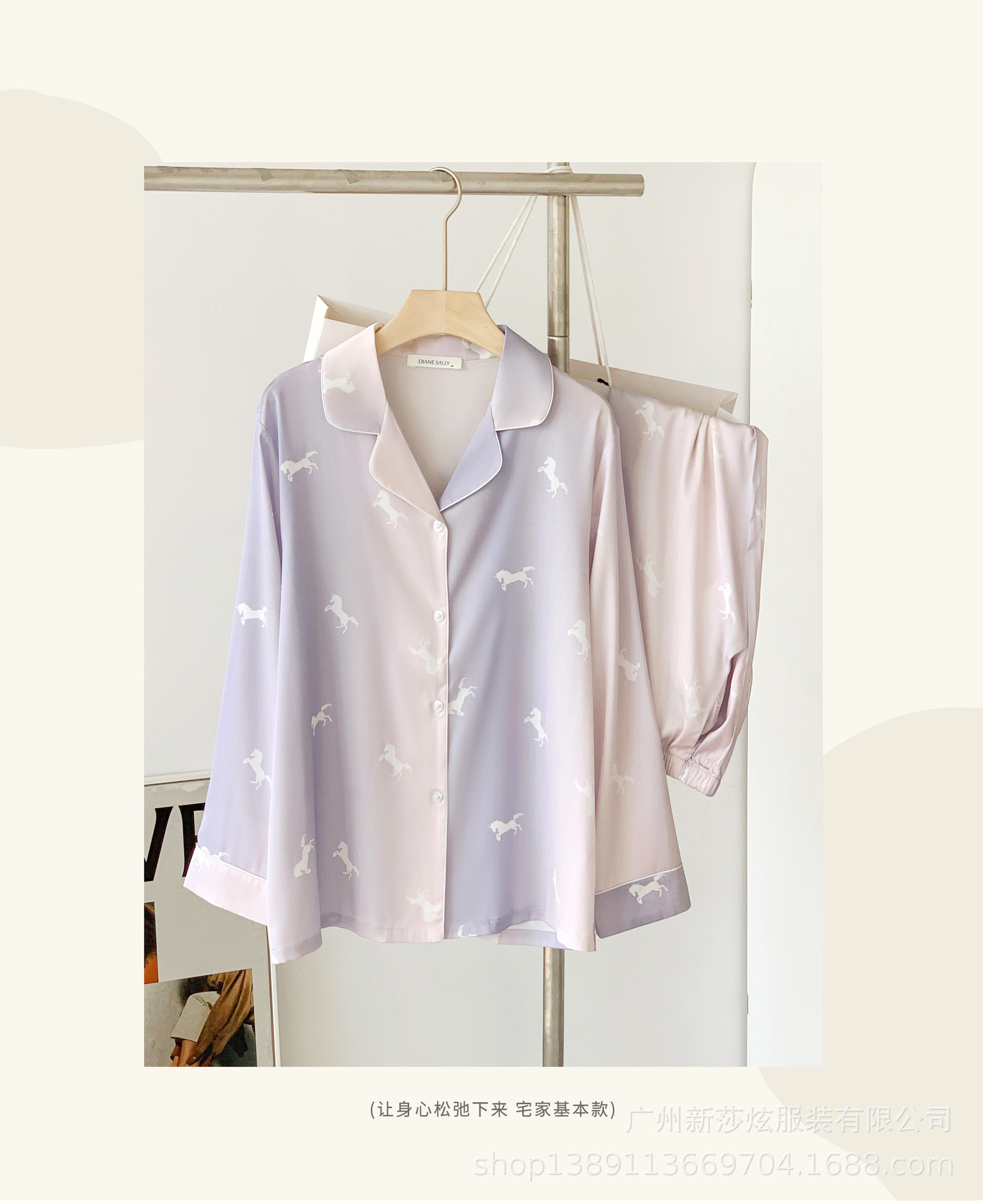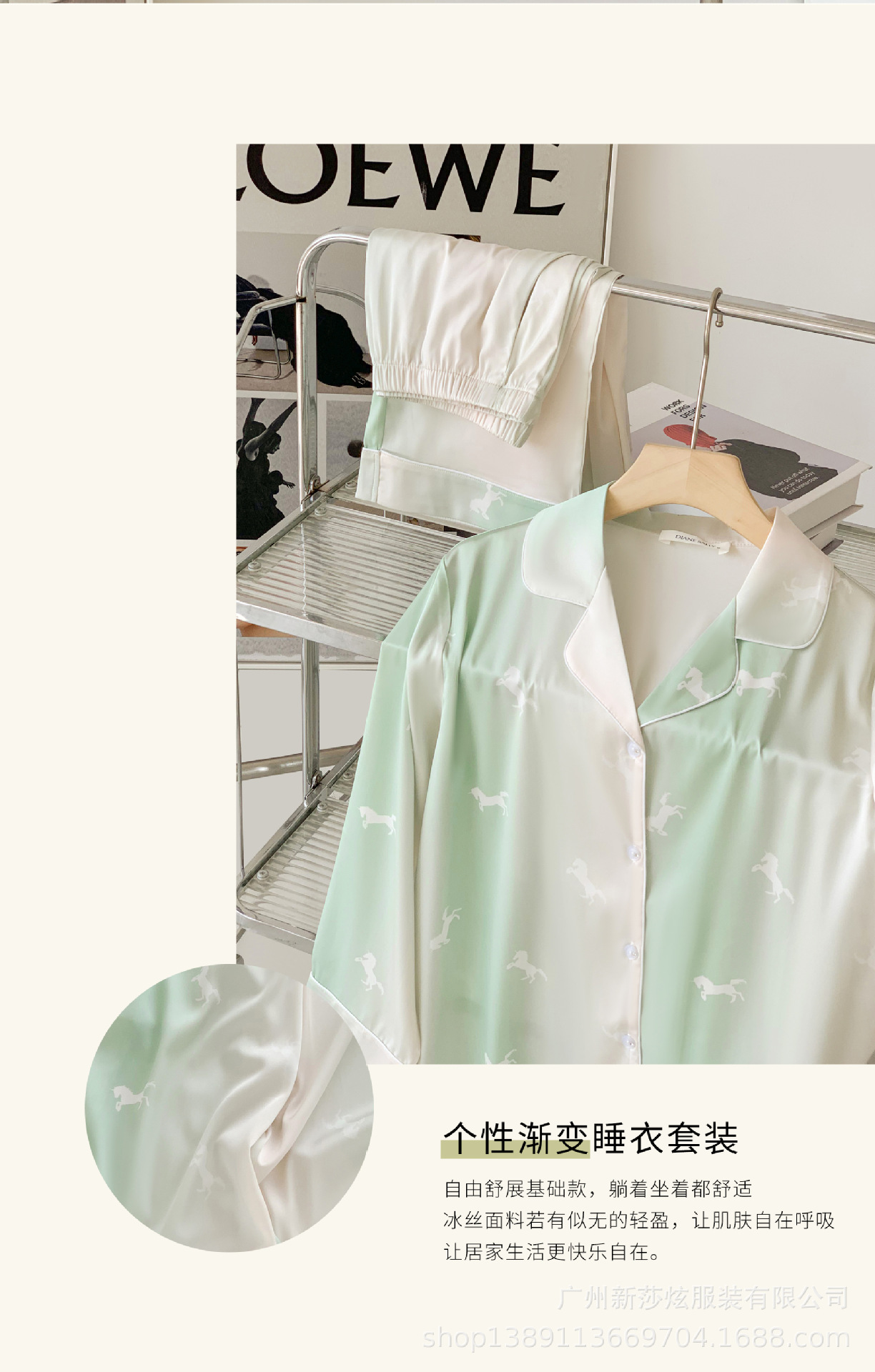 DianeSally2024年新款睡衣女春秋季冰丝长袖渐变高级感家居服套装