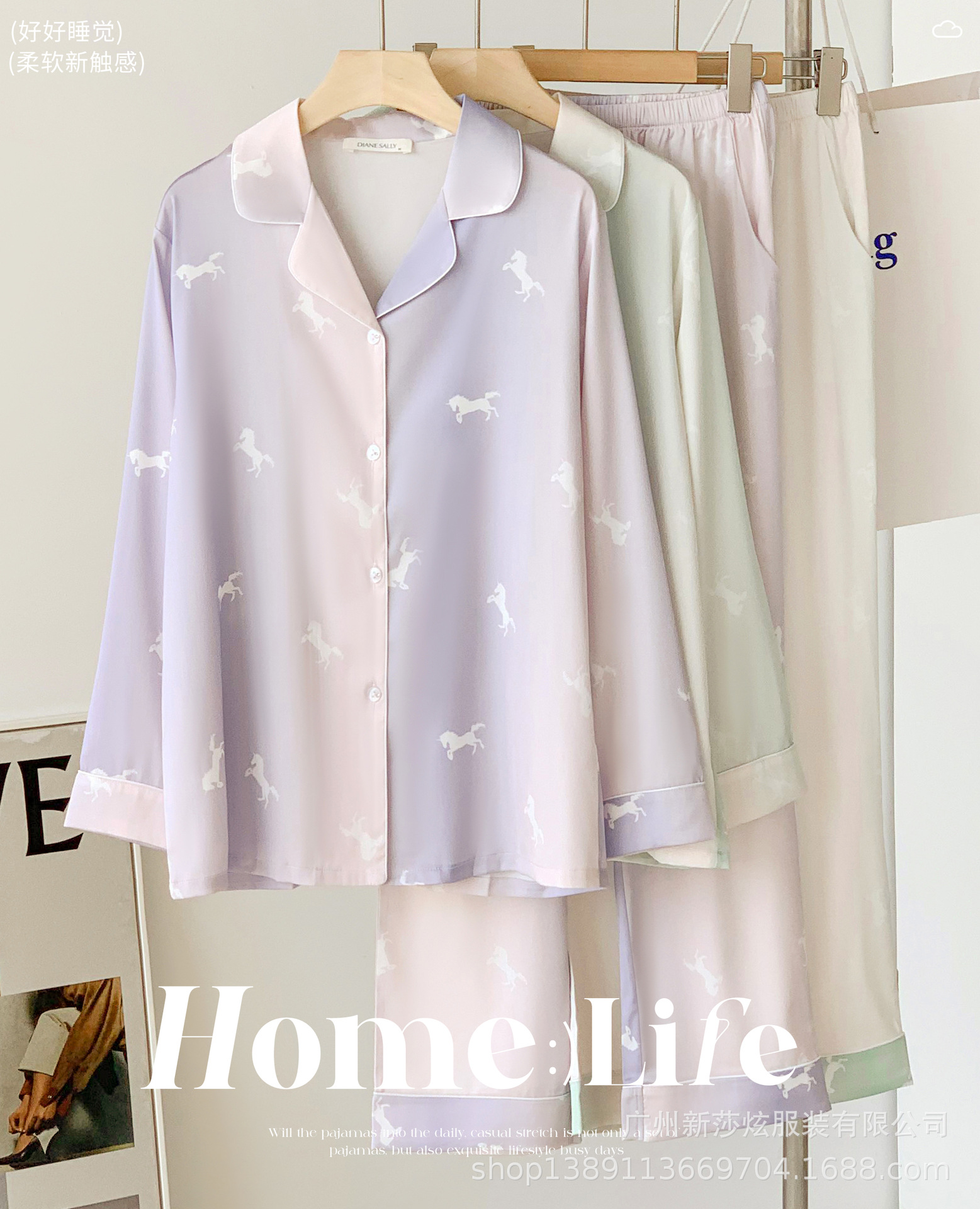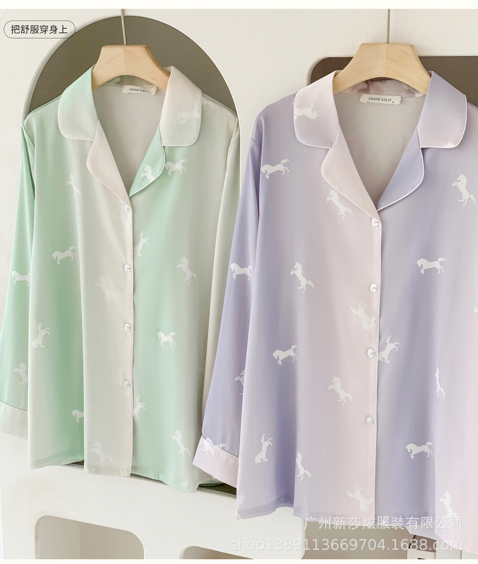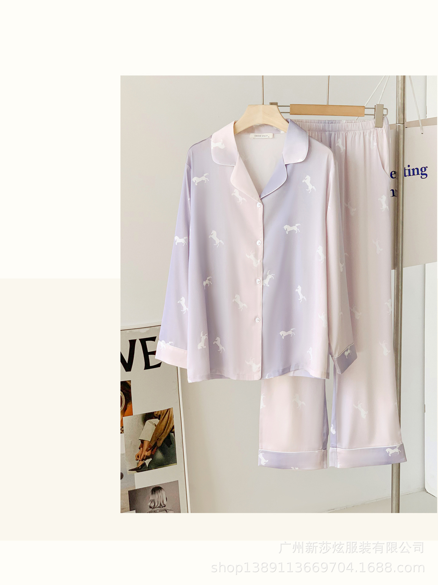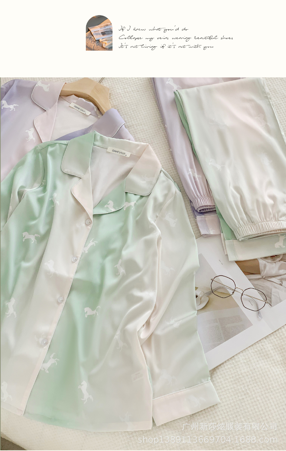 DianeSally2024年新款睡衣女春秋季冰丝长袖渐变高级感家居服套装
