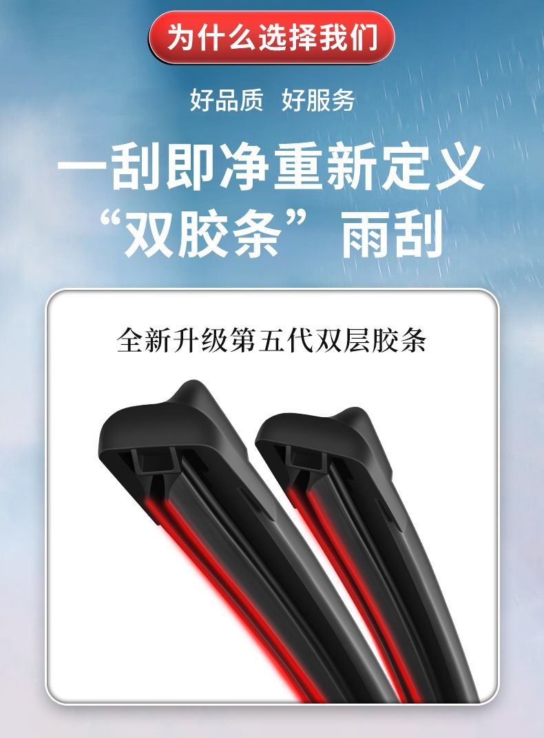 【双胶条】适用大众雨刮器比亚迪现代别克本田长安无骨双层雨刷器