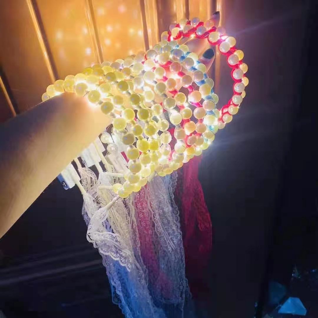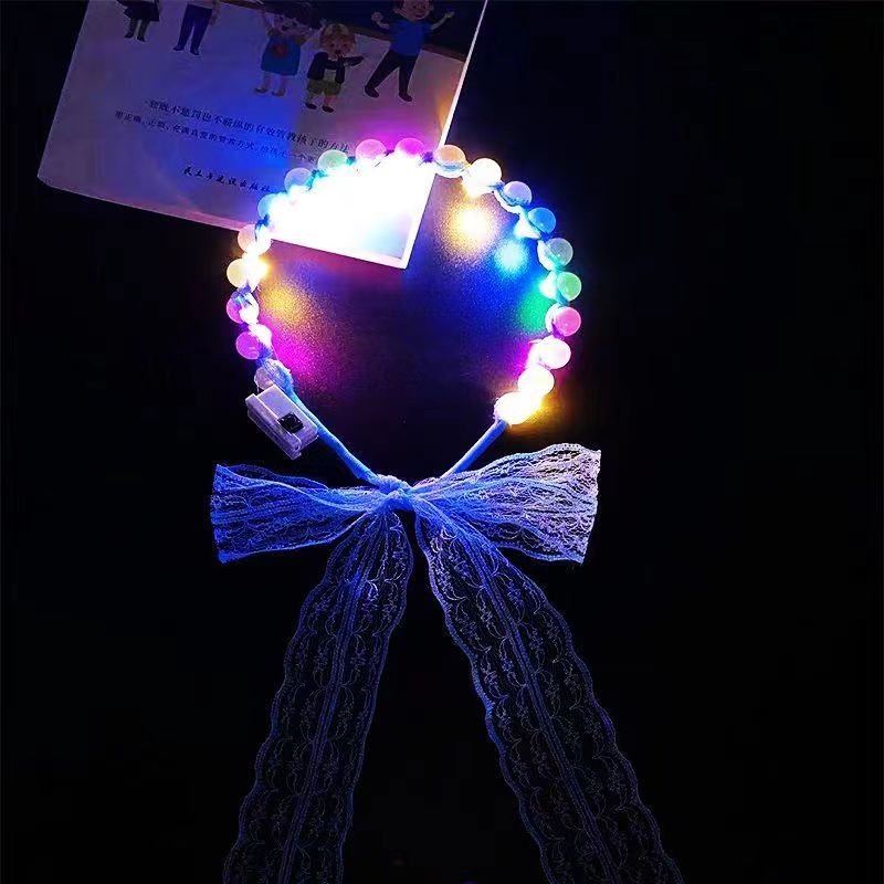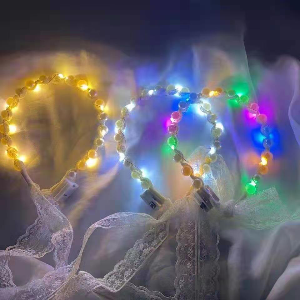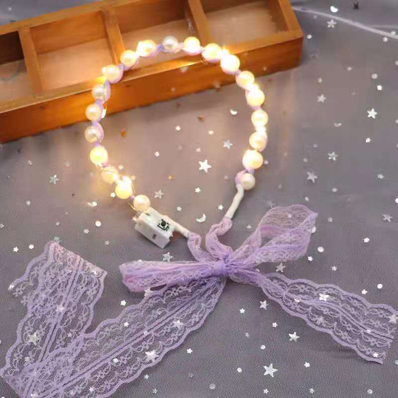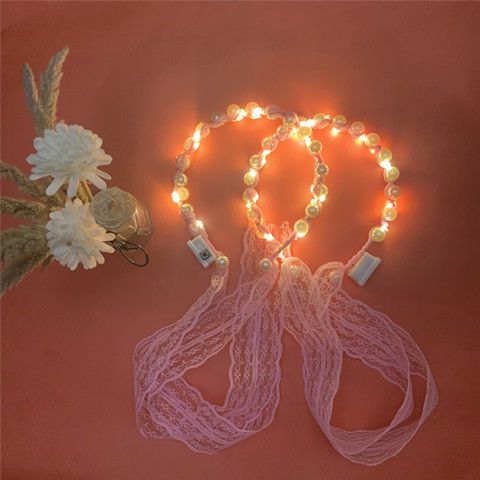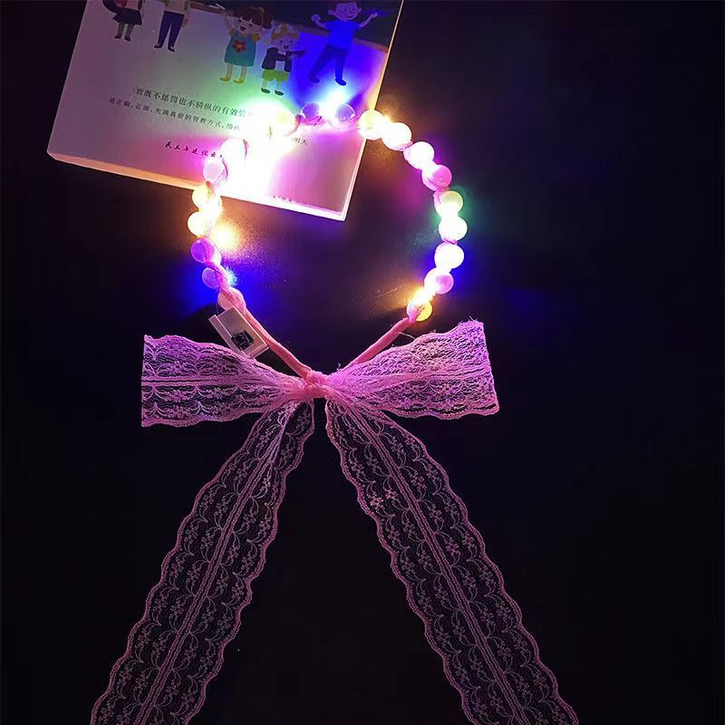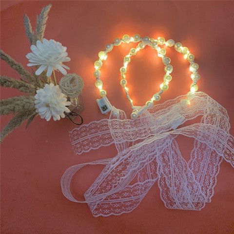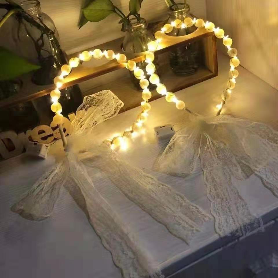 网红新款发光复古蕾丝珍珠发箍系带蝴蝶结小仙女发带地摊夜市爆款