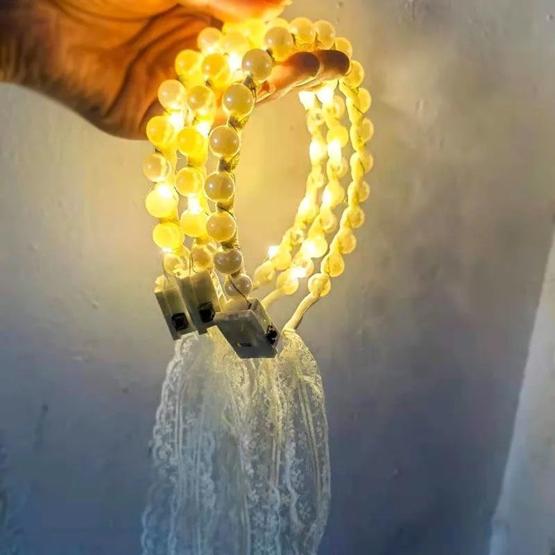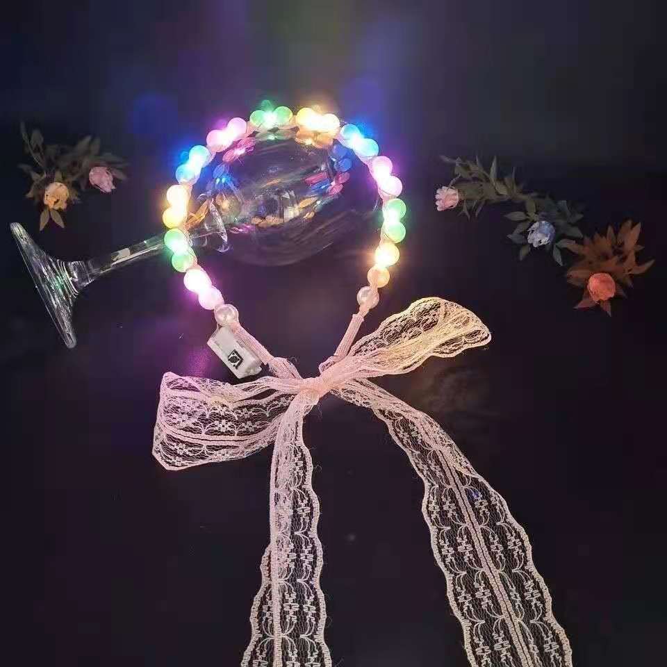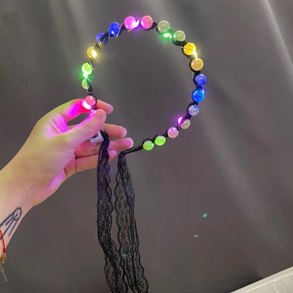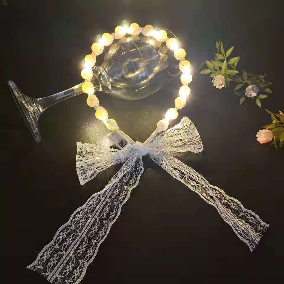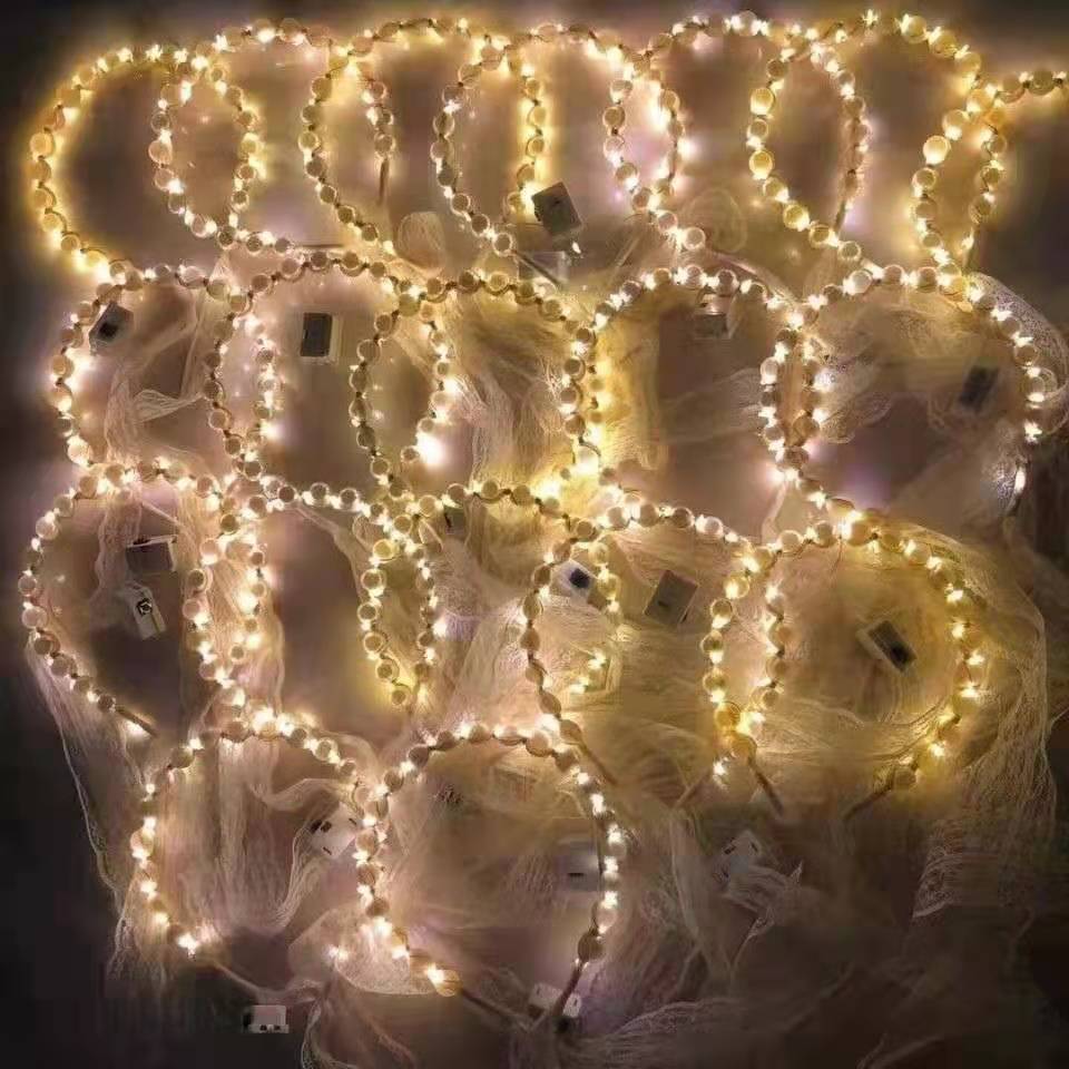 网红新款发光复古蕾丝珍珠发箍系带蝴蝶结小仙女发带地摊夜市爆款