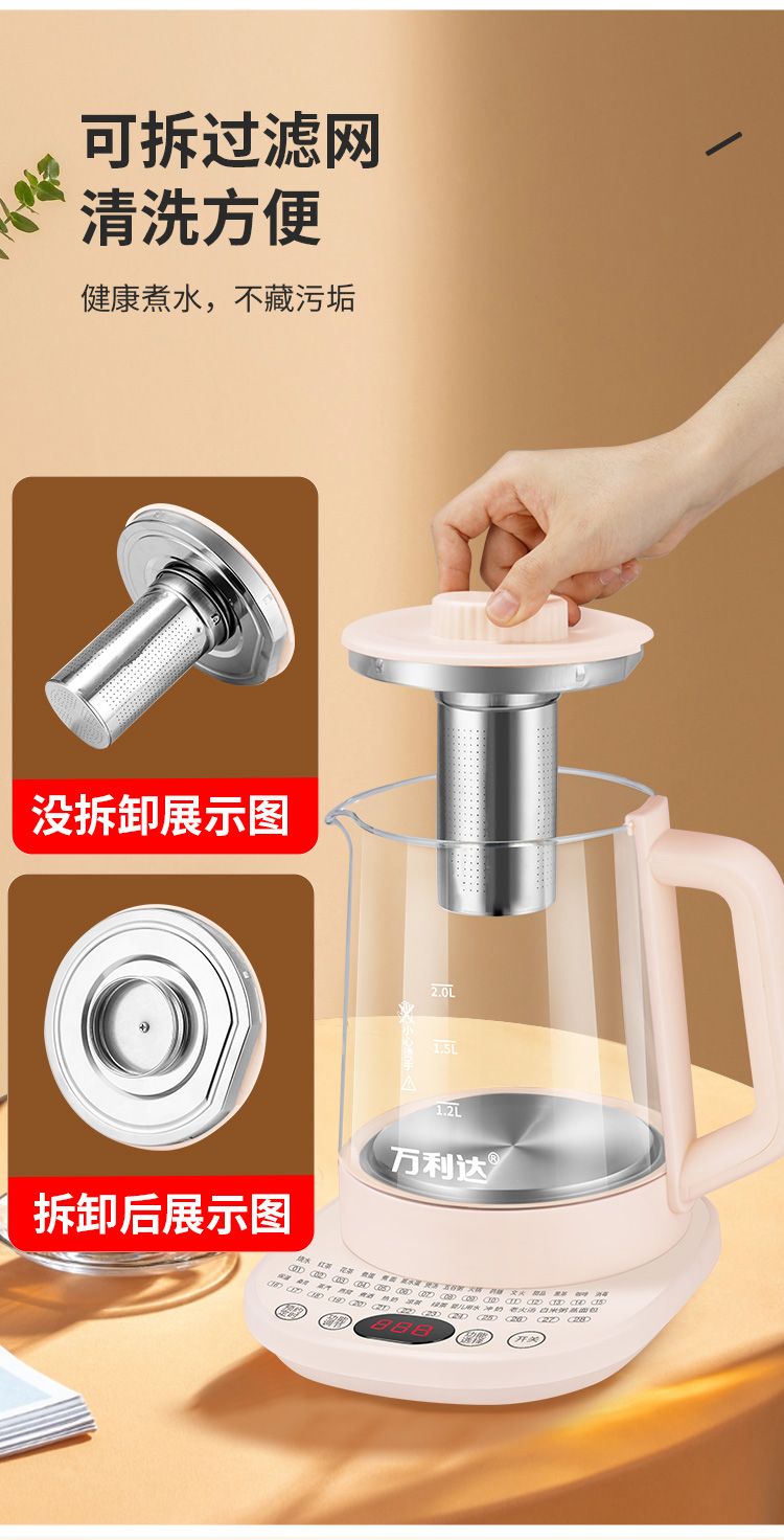 正品万利达养生壶家用玻璃壶蒸蛋煮花茶熬药智能保温烧水壶热水壶
