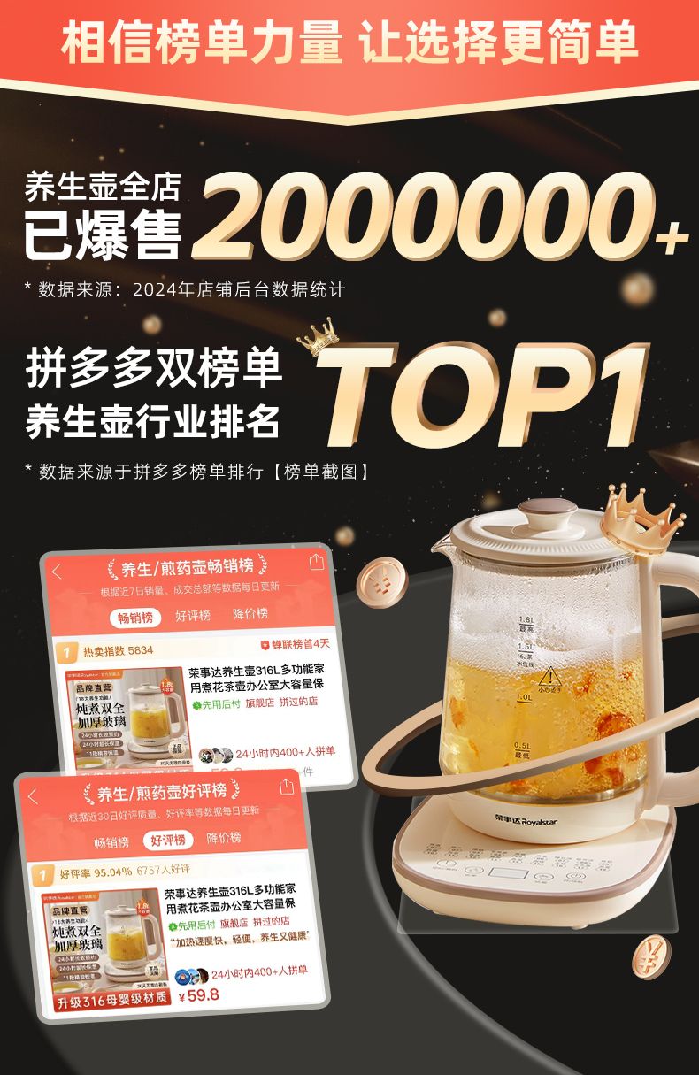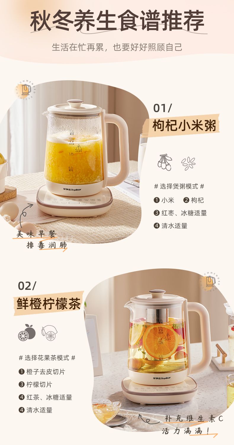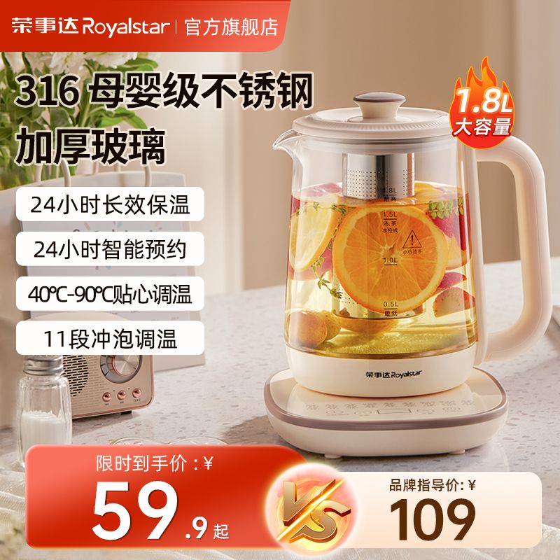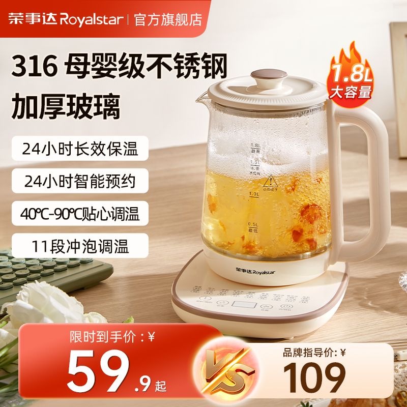 荣事达养生壶316L多功能家用煮花茶壶办公室大容量保温电热水壶