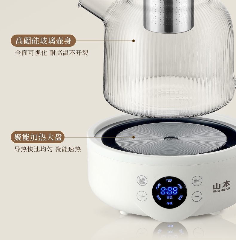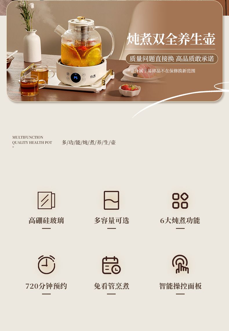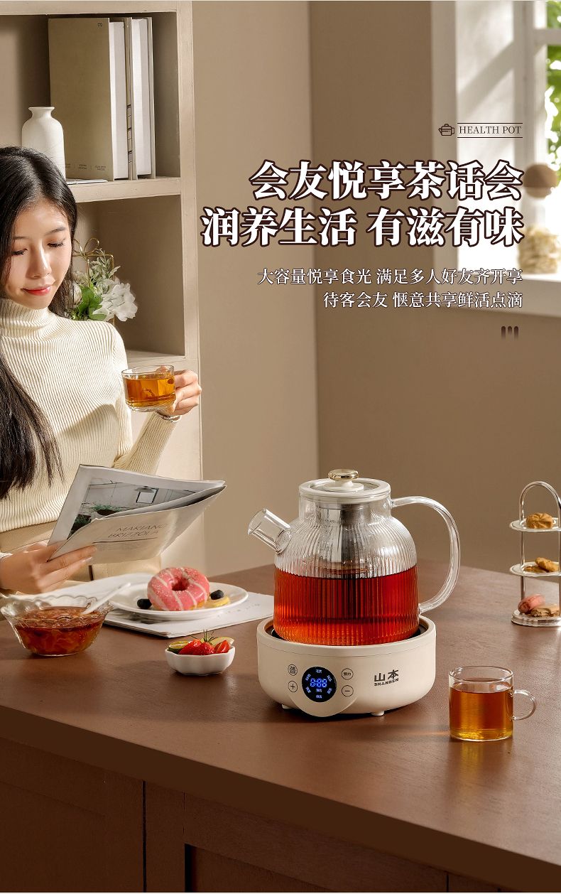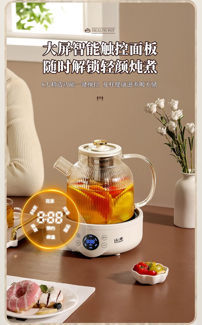 山本养生壶多功能家用全自动玻璃煮茶器办公室烧水壶养生杯花茶壶