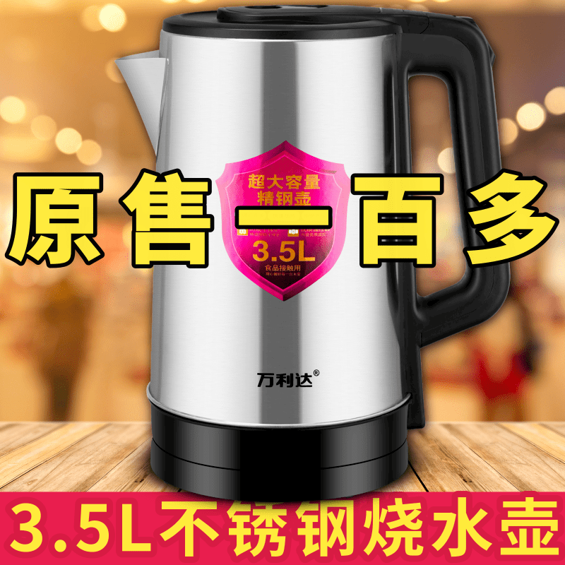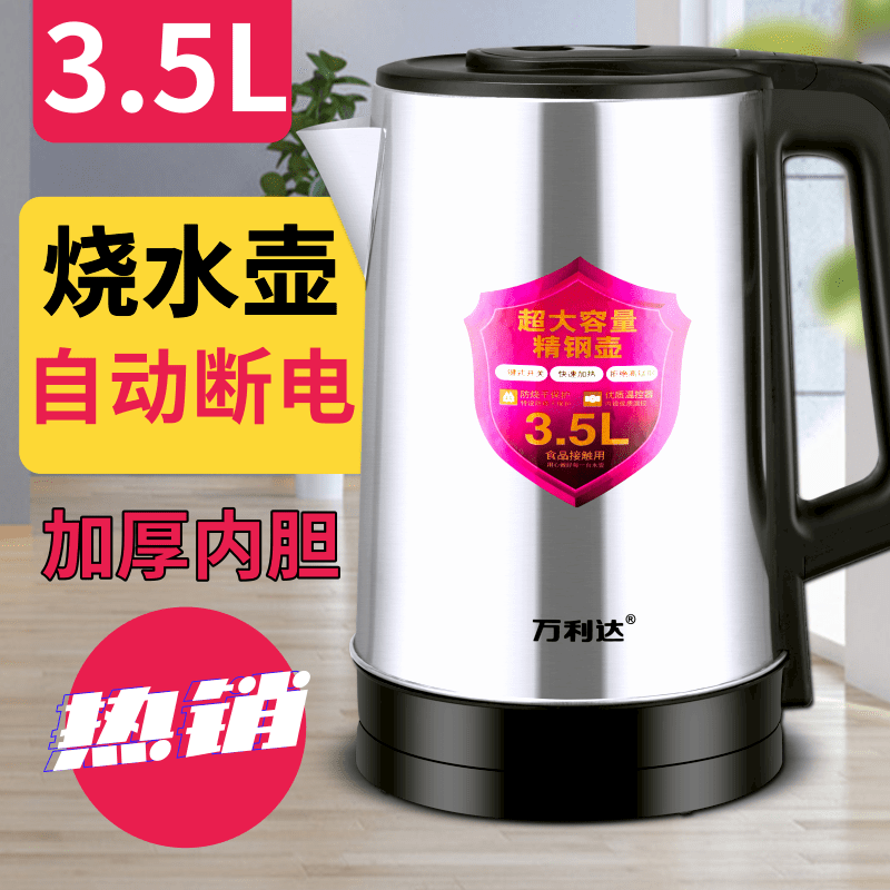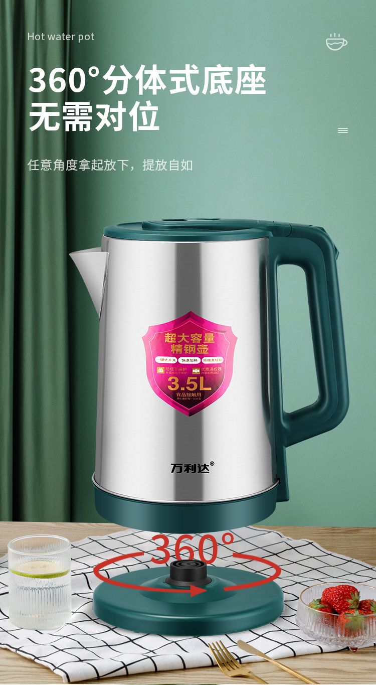 正品万利达3.5L电热水壶保温烧水壶家用耐用304开水壶全自动断电