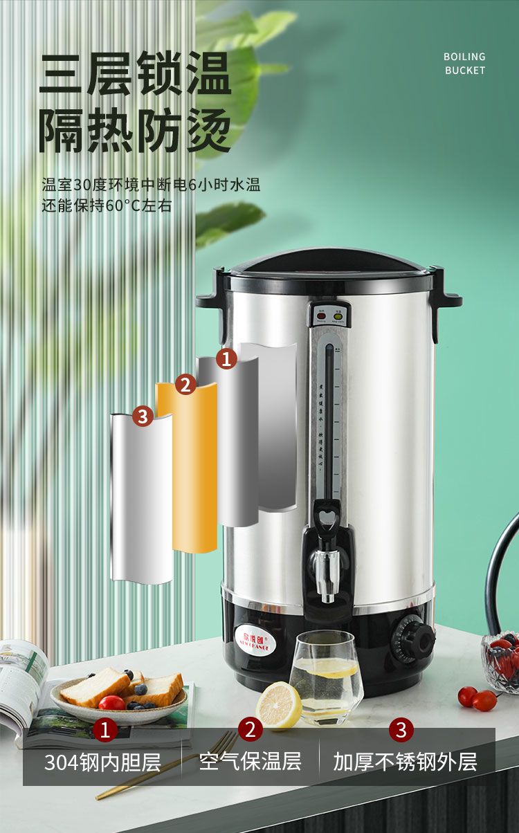 伟纳斯304不锈钢电热烧水桶商用餐厅饭堂大容量开水桶热水桶保温