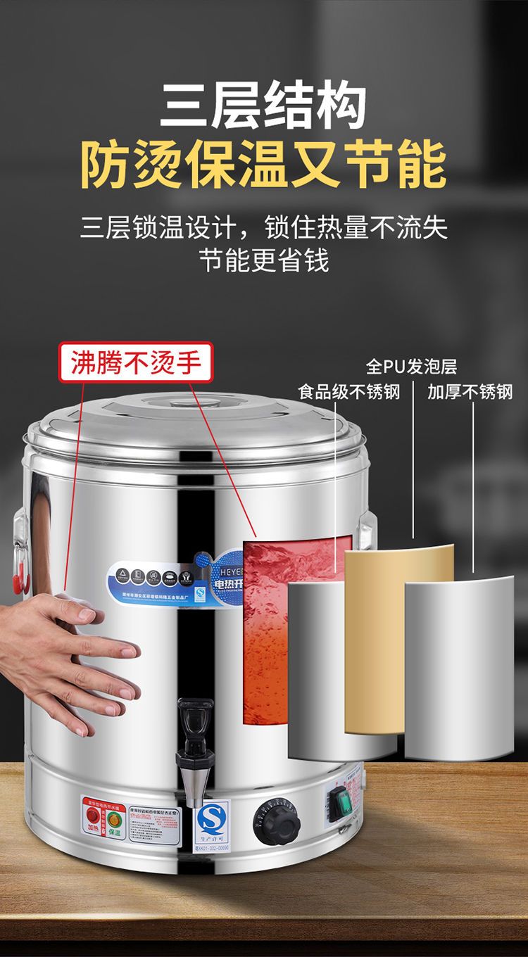 电热烧水桶商用熬汤桶304不锈钢开水桶大容量电加热保温桶煮粥桶