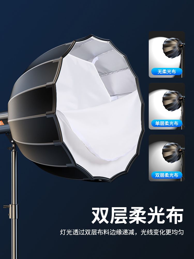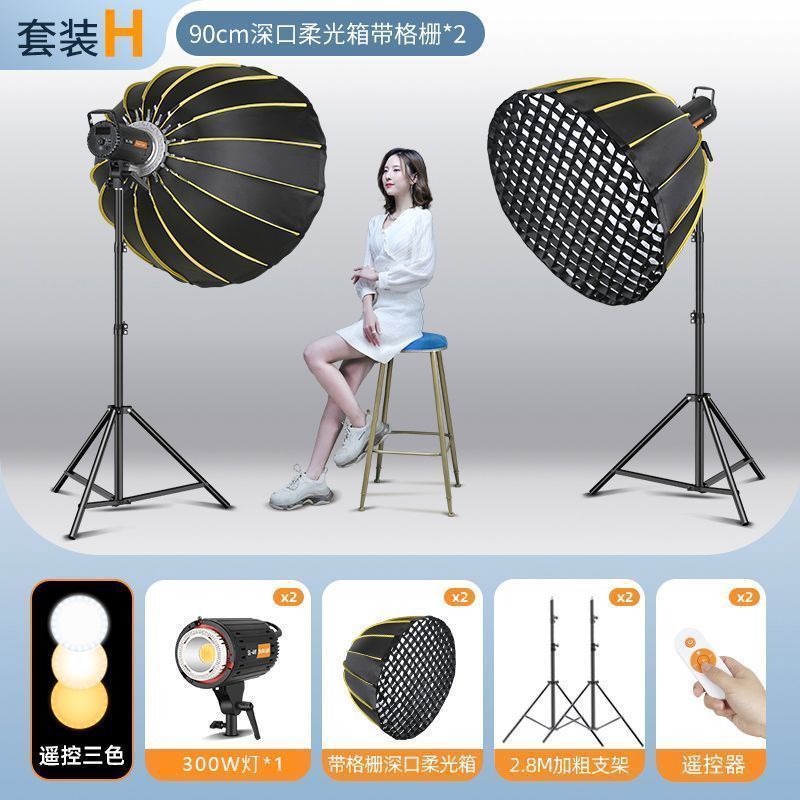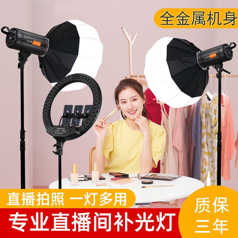 300瓦专业直播补光灯摄影室内拍照打光灯深口八角柔光箱球形主播