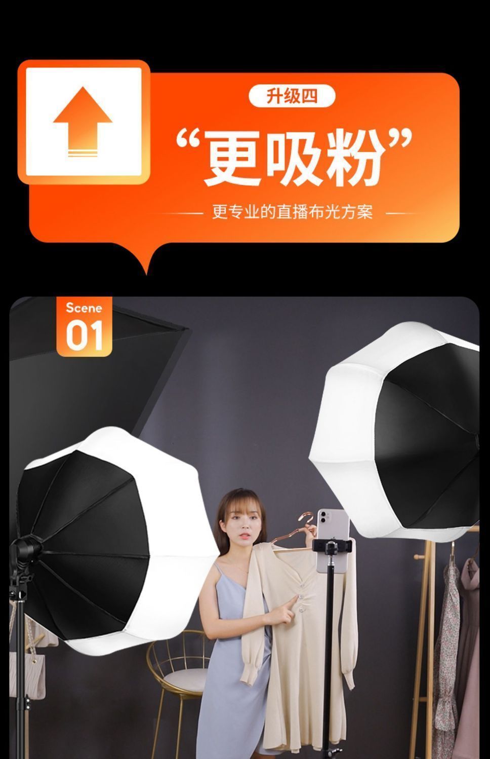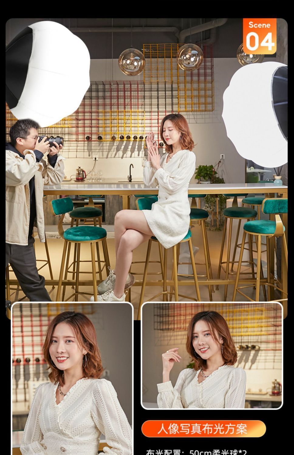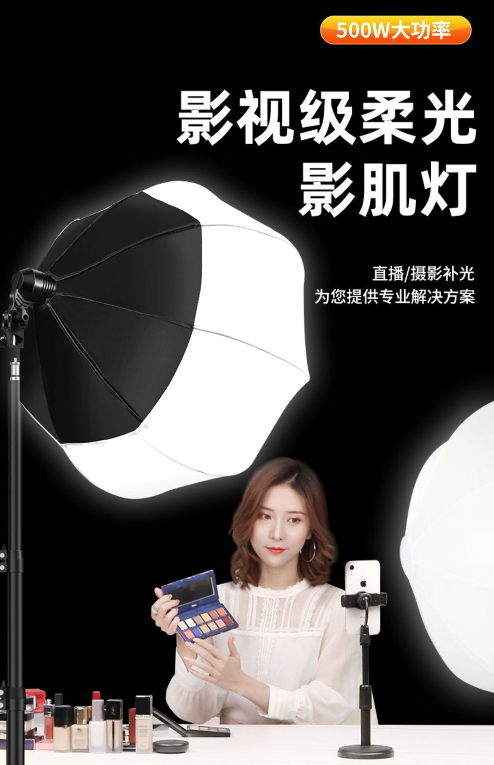 2200WS超亮球形补光灯直播专业带货美颜主播摄影灯室内拍照服装摄