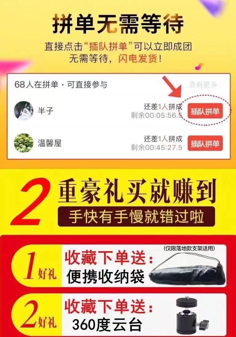 | 2.1m floor stand + stand-alone position + bluetooth(2.1m落地支架+单机位+蓝牙) | USD $6.9 | 999999 piece available |