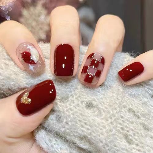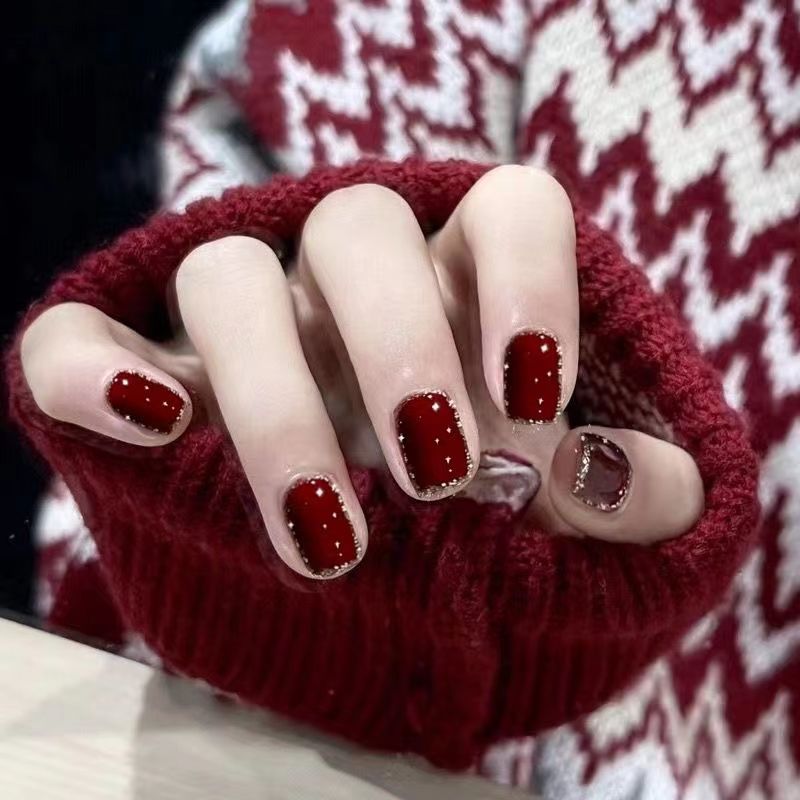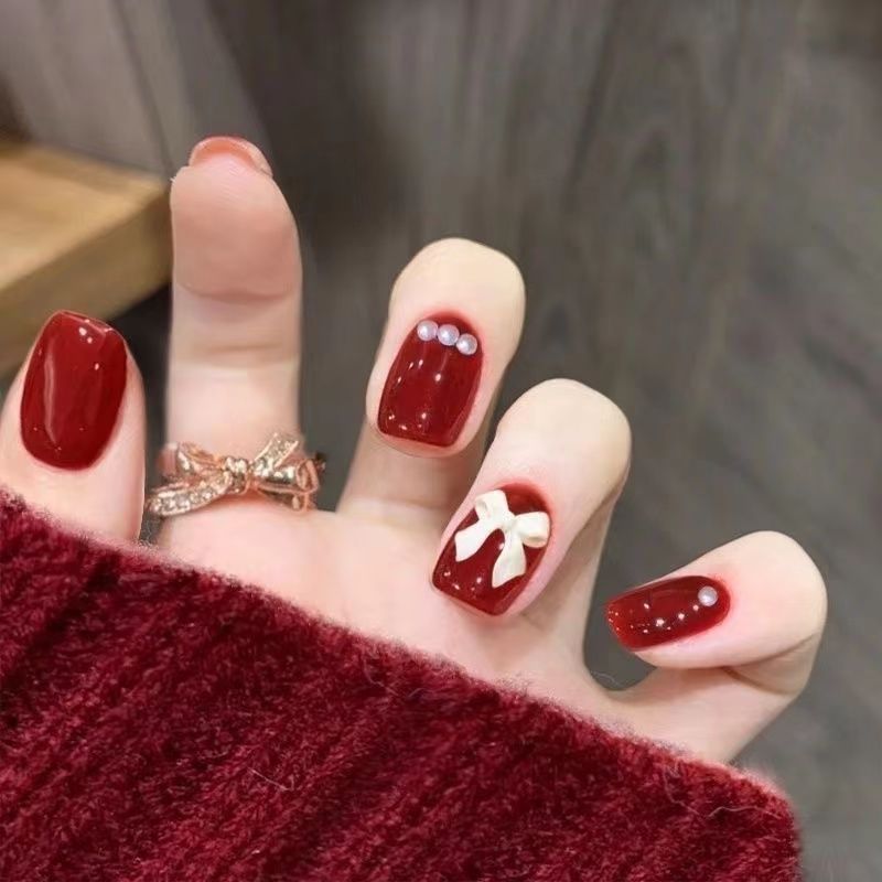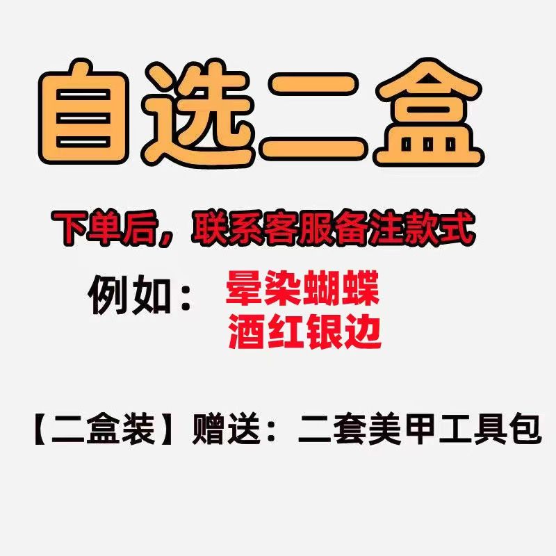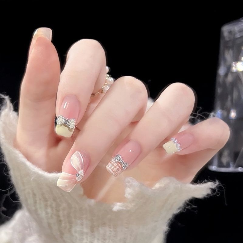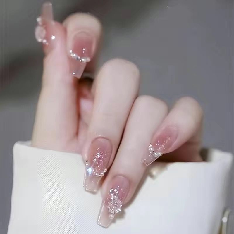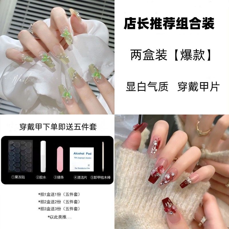 小清新浅绿渐变美甲甲片珍珠蝴蝶指甲贴片长款穿戴甲ins风甲片